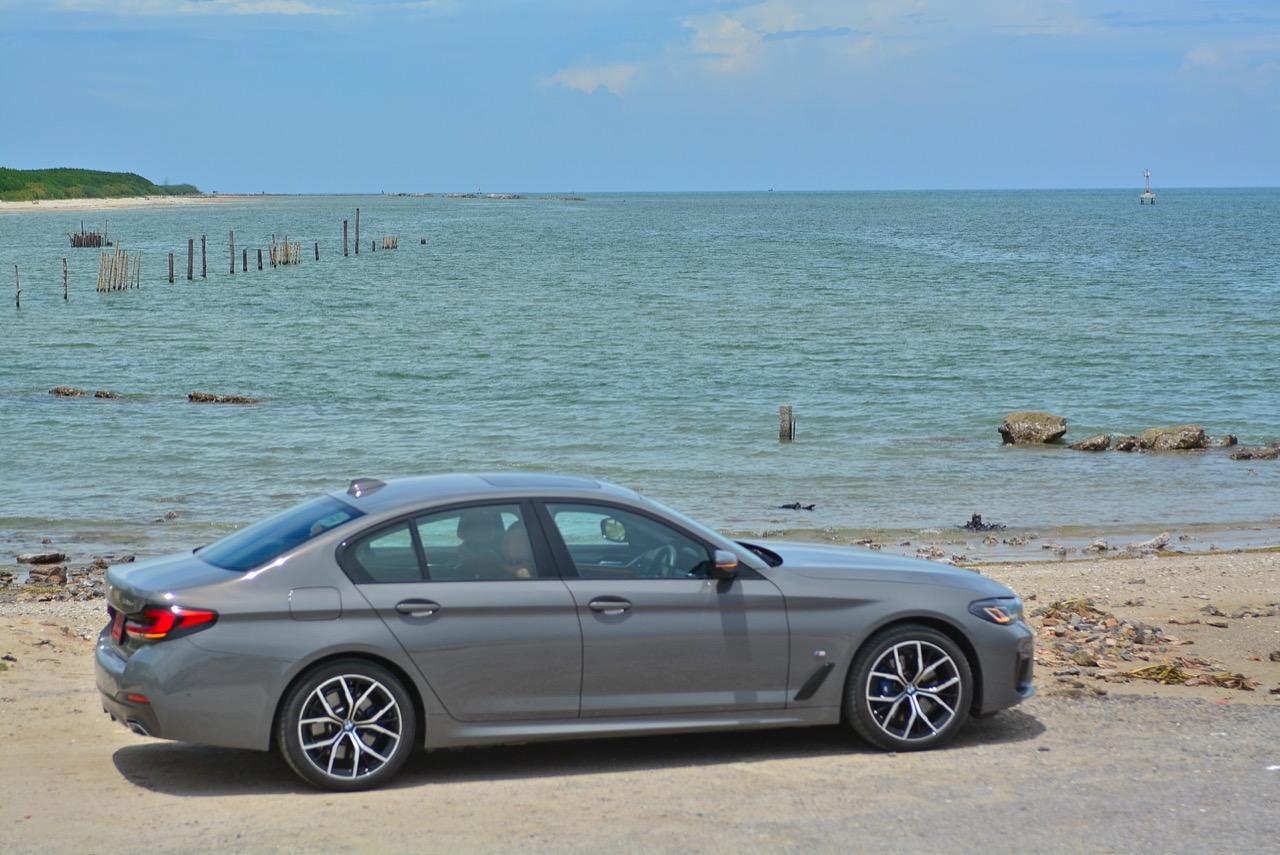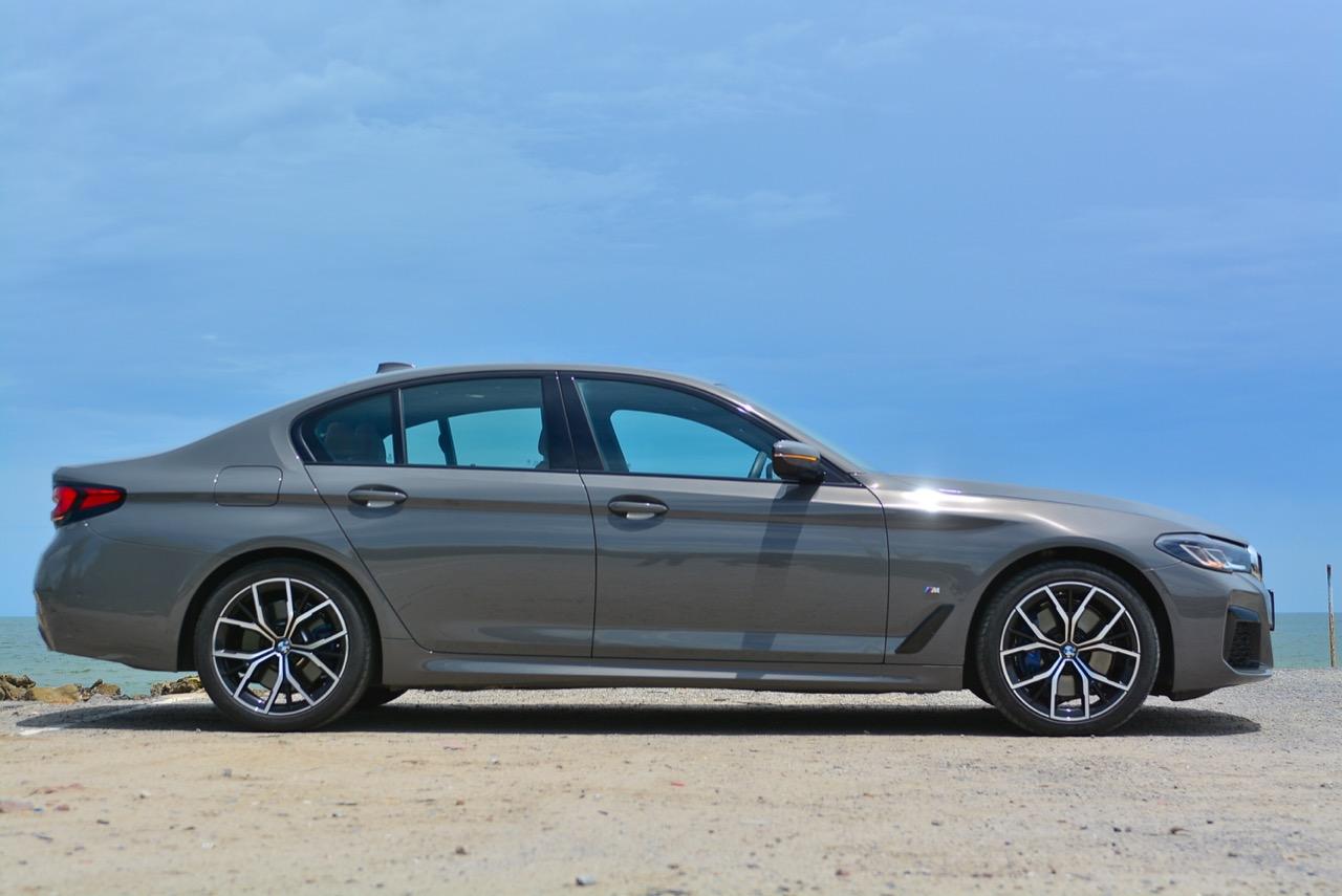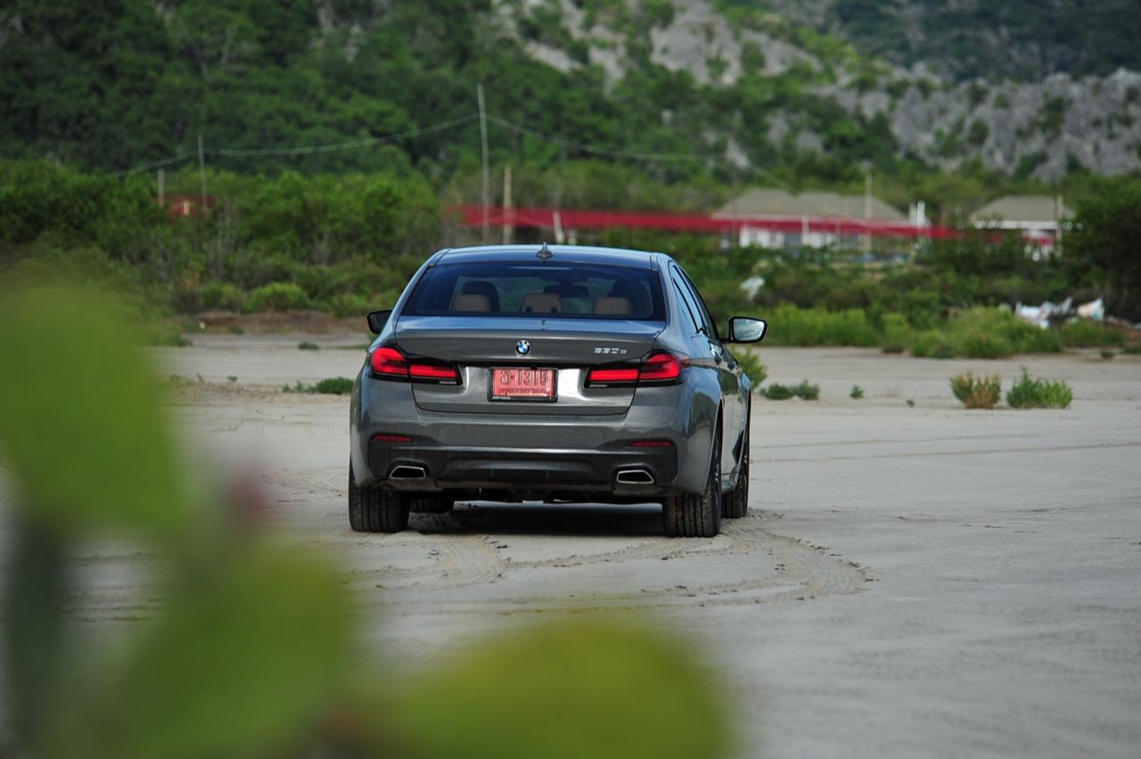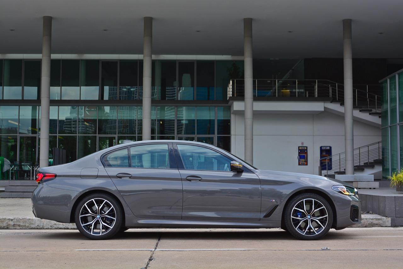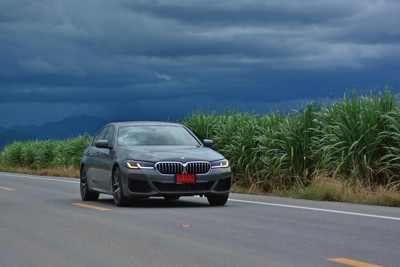 BMW 530e M-Sport LCI สิ่งที่เปลี่ยนไปก็คือ หน้าตาที่ลงตัว โดยเฉพาะสีเทาที่กำลังฮิต เป็นรถที่เงียบ เมื่อวิ่งในโหมด Hybrid หรือ Electric การสตาร์ทเครื่องยนต์เริ่มต้นจากการทำงานของมอเตอร์ไฟฟ้าทำให้เครื่องยนต์ยังคงหลับใหลหากขับในย่านความเร็วต่ำหลังจากชาร์จไฟมาทั้งคืนคุณจะวิ่งด้วยมอเตอร์เพียวๆ โดยไม่ใช้น้ำมันไกล 30 กิโลเมตร เป็นระยะทาง 30 กิโลเมตรที่ไม่มีมลพิษใดๆ ทั้งสิ้น มันทั้งเงียบและแน่น แถมยังนุ่มนวลสุดๆ เมื่อเคลื่อนตัวผ่านผิวถนนที่ขรุขระจากการก่อสร้างทางยกระดับแถบพระรามสอง ราคาเฉียดๆ 4 ล้านบาทของ 530e M-Sport รุ่นปรับโฉม คุณจะได้ซาลูนที่มีความยาวเฉียดๆ 5 เมตร พร้อมการขับที่เน้นความนุ่มมากเป็นพิเศษ โช้คอัพไฟฟ้า Adaptive แปรผันความหนืดไปตามสภาพทางและโหมดของการขับเคลื่อน นักเลง BMW ที่ชอบขับเร็วๆ อาจรู้สึกย้วยนิดๆ เมื่อลองขับรถรุ่นก่อนปรับโฉม พอมาถึงตัว LCI มีการล้วงเข้าไปแก้ใขระบบรองรับ เปลี่ยนมาใช้โช้คอัพไฟฟ้าที่ตอบสนองและผ่อนสั้นผ่อนยาวได้เร็วกว่าเดิม ในจุดนี้ ถือว่าระบบรองรับที่ถูกปรับจูนมาใหม่ ทำออกมาได้ดีเลยทีเดียว เมื่อใช้โหมดประหยัด ช่วงล่างของมันโอนอ่อนผ่อนคลาย แม้จะขับบนผิวถนนที่เป็นปูนซีเมนต์ก็ยังนุ่มกว่ารถคู่แข่ง ความรู้สึกดังกล่าวถูกส่งถ่ายออกมาจากช่วงล่างอัลลอยที่มีการเซ็ตอัพมาเป็นอย่างดี พอเปลี่ยนมาใช้โหมด Sport โช้คอัพไฟฟ้าก็มีการปรับการทำงานเพื่อสอดรับกับการใช้ความเร็ว นี่ดีขึ้นอย่างชัดเจนเลยทีเดียว