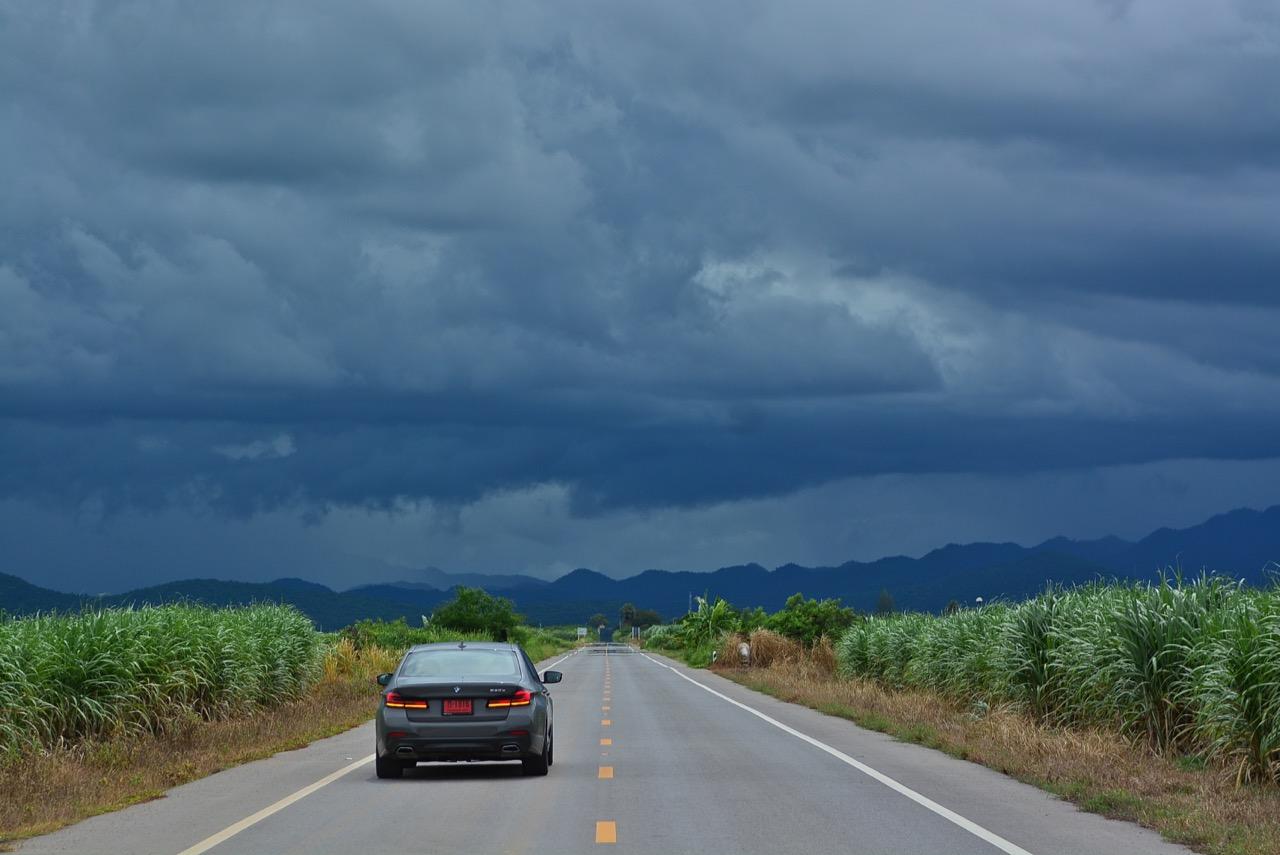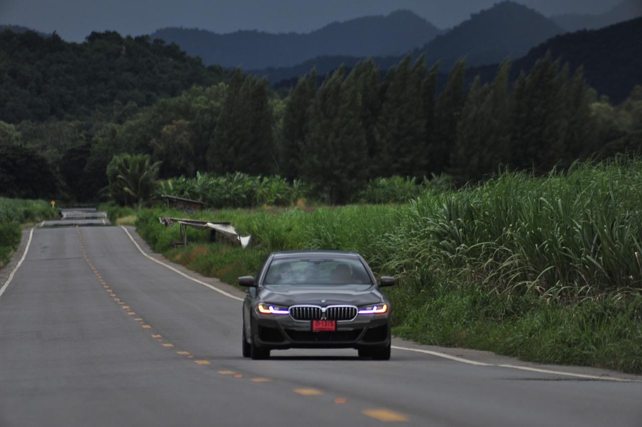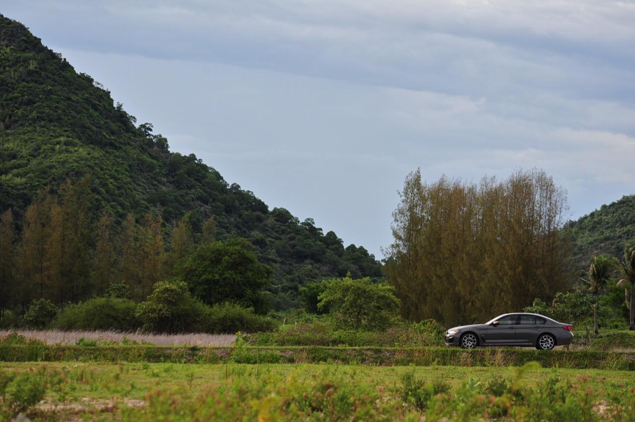 บนเส้นทางในแถบปากน้ำปรานไปจนถึงสามร้อยยอด BMW 530e LCI ขับได้อย่างคล่องแคล่ว ราวกับรถรุ่นน้องที่เล็กกว่าอย่าง Series-3 f30 จุดเด่นดังกล่าวเกิดจากน้ำหนักตัวเบาแค่ 1.7 ตัน กับชุดบังคับเลี้ยวไฟฟ้า BMW Servotronic ที่มาดมั่น การบังคับทิศทางของรถ ให้ความรู้สึกถึงขนาดที่เล็กเกินความเป็นจริง จากการเซตค่าแปรผันของพวงมาลัยที่ BMW มีความเชี่ยวชาญ พวงมาลัยไฟฟ้าที่ใช้มอเตอร์และวาล์วควบคุมแรงดันน้ำมันคอยปรับน้ำหนักของพวงมาลัยไปตามความเร็วและสภาพเส้นทาง ขับช้าพวงมาลัยจะเบาสบายมือแต่ยังคงความแม่นยำในระดับสูงสุด ขับเร็วขึ้นในโหมด Sport พวงมาลัยแสนรู้ของ 530e จะปรับน้ำหนักให้สอดคล้องกับความเร็วทำให้ควบคุมได้ง่ายขึ้นมาก การขับทางตรงบนไฮเวย์ด้วยความเร็วสูงไม่ต้องคอยมานั่งประคองพวงมาลัยให้เสียอารมณ์ ความมั่นคงของพวงมาลัยที่เริ่มกระชับรัดกุมขึ้นเรื่อยๆ จนรู้สึกได้เมื่อตัวเลขความเร็วเพิ่มขึ้นช่วยทำให้เกิดความมั่นใจ เจ้าของ Series-5 ทุกคนชอบขับรถเร็วอยู่แล้ว พอมาเจอเข้ากับการทรงตัวในย่านความเร็วสูงที่ดีเยี่ยม รวมถึงพวงมาลัยที่มีน้ำหนักมั่นคงในย่านความเร็วสูง ก็ลืมความประหยัดและจัดกันแบบเต็มสูบ จ่ายเงินเกือบๆ 4 ล้านบาทจะให้มาขับหยอดๆ ย่องๆ คงไม่ใช่เรื่องที่ถูกต้องนัก