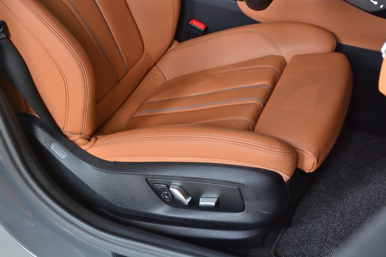 ภายในแบบทูโทน แดชบอร์ด คอนโซล สีดำสลับสีน้ำตาล แผงประตูก็ยังเล่นโทนสลับระหว่างไวนิลเกรดสูงสีดำสลับสีน้ำตาล เบาะหนังแท้สีน้ำตาล เบาะคู่หน้าปรับไฟฟ้าพร้อมหน่วยความจำ 3 ระดับ เป็นเบาะแบบสปอร์ตที่มีการออกแบบเพื่อทำให้นั่งได้สบายสามารถขับได้ทั้งวัน เบาะหลังแบบ 3 ที่นั่ง แต่นั่งจริงๆ แค่ 2 ก็น่าจะดีกว่านั่งกันถึง 3 คนซึ่งทำให้รู้สึกคับแคบเกินไป เบาะหลังออกแบบให้มีพนักเท้าแขนบริเวณกึ่งกลางของเบาะ รวมถึงช่องแอร์ด้านหลังที่สามารถปรับระดับความแรงและทิศทางของลมเพื่อเพิ่มความเย็นฉ่ำ