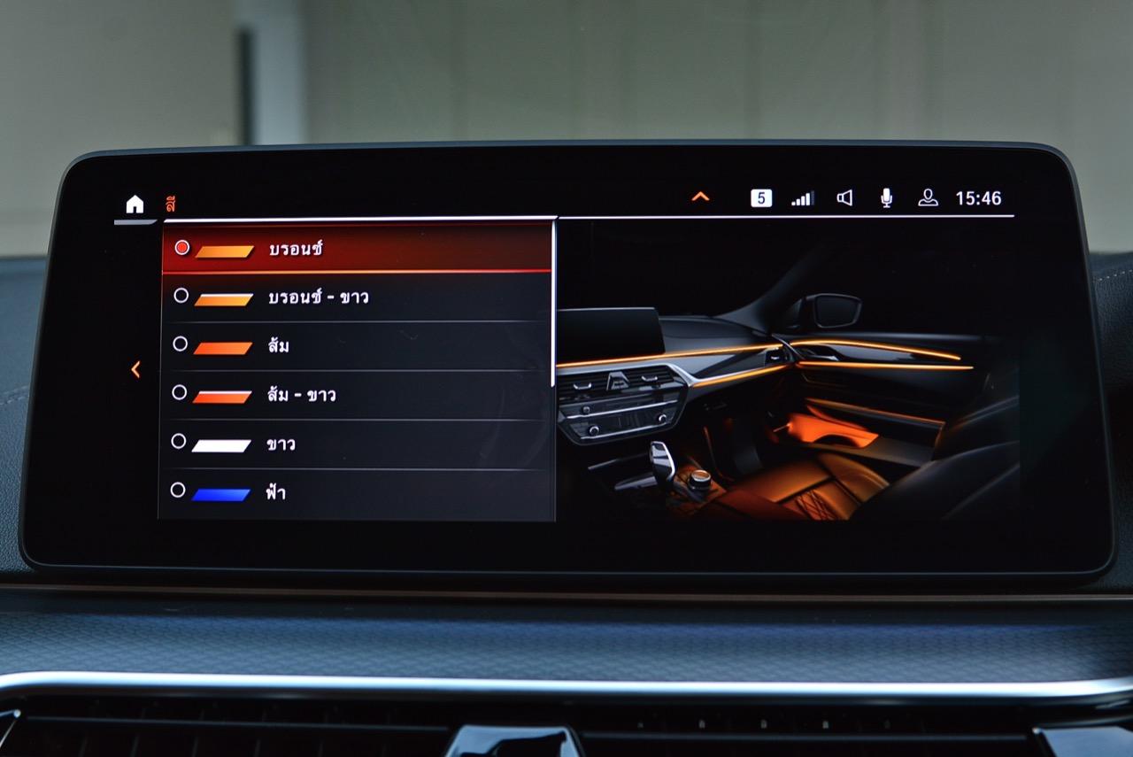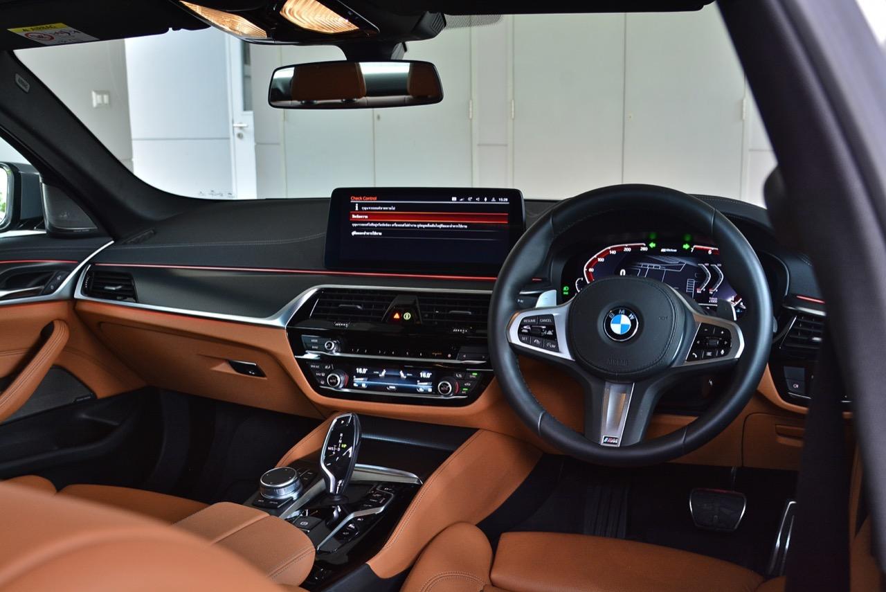 งานตกแต่งภายในสไตล์ BMW ของ Series-5 LCI ออกแบบให้ภายในของมัน มีเอกลักษณ์แบบรถผู้บริหาร มากกว่า Series-3 ภายในของ G30 LCI หรูหรา เน้นบรรยากาศแบบสปอร์ตด้วยเทคโนโลยีใหม่ ไล่เรียงจาก พวงมาลัย M กาบบันไดของ M ระบบปฏิบัติการ ios 7.0 ปุ่มควบคุมระบบแอร์แบบใหม่ หน้าปัดมาตรวัดแบบจอภาพ TFT ปรับเปลี่ยนหน้าจอมาตรวัดไปตามโหมดการขับเคลื่อน 3 รูปแบบ นอกเหนือจากพื้นที่วางขาสำหรับผู้โดยสารในห้องโดยสารที่เพิ่มขึ้น เทคโนโลยี SYNTAK (Special Synergy Thermoacoustic Capsule) ยังช่วยเสริมการเก็บเสียงเพื่อความผ่อนคลาย โดยใช้วัสดุซับเสียงแบบใหม่ทำหน้าที่ป้องกันเสียงแปลกปลอมจากภายนอกได้ดีขึ้น กล้องมองภาพรอบคันพร้อมสัญญาณเสียงเซนเซอร์เมื่อขับเข้าไปใกล้วัตถุกีดขวาง รวมถึงฟังก์ชันเข้าจอดแบบอัตโนมัติ