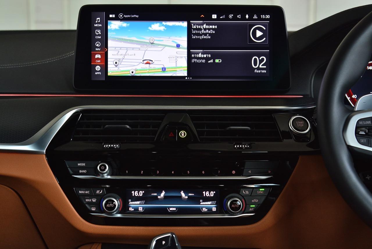 BMW 530e LCI รุ่นปี 2021 มาพร้อมห้องโดยสารที่ติดตั้งอุปกรณ์แบบใหม่ในระบบ BMW Live cockpit professional แตกต่างจากรถ 530e รุ่นแรก จากการเปลี่ยนหน้าจอภาพมาตรวัดและจอมอนิเตอร์แสดงผลส่วนกลาง เพื่อความทันสมัยเทียบเคียงกับรถรุ่นใหม่ของค่ายตราใบพัด ที่หันมาใช้ระบบมัลติมีเดียและการแสดงผลมาตรวัดรวมถึง iDRIVE แบบใหม่ ระบบปฏิบัติการ BMW iDrive 7.0 และฮาร์ดแวร์ BMW Live Cockpit Professional ถูกติดตั้งอยู่ในรถ BMW รุ่นใหม่ ปี 2020 เช่น Series-3, Series-5, Series-7 และ Series 8 Gran Coupe รวมถึง SUV X3/ X5 / X6 / X7 ใช้ระบบ Android Auto ไร้สาย จุดเด่นก็คือ จอมอนิเตอร์กลางใหญ่ราวกับ Series-7 รุ่นก่อนปรับโฉมมีขนาด 10.25 นิ้ว พอเปลี่ยนโฉมมาเป็นรุ่น LCI จอกลางถูกขยายให้มีขนาด 12.3 นิ้ว
