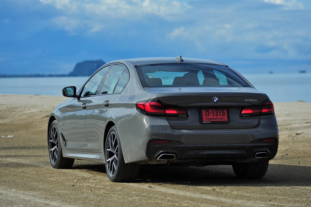 BMW Thailand ส่งรถปลั๊กอินรุ่นปรับโฉม LCI นั่นก็คือ ชายกลางสุดหล่อ BMW 530e พร้อมชุดแต่ง M Sport มาให้ลองขับทดสอบนานหนึ่งอาทิตย์ เป็นสัปดาห์ที่ค่อนข้างวุ่นวายกับงานที่ค้างอยู่ ฝนที่ตกกระหน่ำในช่วงต้นเดือนกันยายน ทำให้การทดสอบทางไกลต้องเลื่อนออกไป จนเกือบจะถึงกำหนดส่งคืนรถทดสอบ สำหรับระบบเสียบปลั๊กชาร์จไฟ พร้อมมอเตอร์ไฟฟ้า ถูกนำมาใช้ในรถตราใบพัดหลากหลายรุ่น ไม่ว่ารถรุ่นนั้นจะมีขนาดที่ใหญ่โตอย่าง BMW X5 xDRIVE 45e Plug in Hybrid / BMW 745Le Plug in Hybrid ทั้งสองรุ่นมาพร้อมเครื่องยนต์เบนซินที่มีความจุมากขึ้น ( จาก 4 สูบ เป็น 6 สูบ) รวมถึงรถที่มีขนาดย่อมลงมาอย่าง BMW 330e จนมาถึงรถยนต์พลังงานไฟฟ้า 100% อย่าง iX3 จากแนวคิด iPerformance ที่ BMW พยายามพัฒนายานยนต์เพื่อรักษาสภาพแวดล้อมให้ดีขึ้น การทำตัวเป็นยานพาหนะที่ประหยัด ปล่อยมลพิษต่ำและมีประสิทธิภาพเหมาะสมกับการใช้งานในชีวิตประจำวัน คือความจำเป็นเร่งด่วนของค่ายรถยนต์ฝั่งยุโรป มาตรการที่เข้มงวดของทางการซึ่งกำหนดให้รถรุ่นใหม่ต้องมีค่าการปล่อย CO2 ต่ำสุดๆ ทำให้บรรดาบริษัทรถยนต์ยักษ์ใหญ่ในแดนไส้กรอกต้องคิดค้นระบบเสียบปลั๊กชาร์จไฟพ่วงมอเตอร์ไฟฟ้าเพื่อลดมลภาวะ ก่อนที่จะกลายเป็นรถไฟฟ้า 100% ในอีกไม่กี่ปีนับต่อจากนี้ รถที่นำมารีวิวซำ้อีกรอบหลังจากผ่านไป 1 ปี ก็คือ ซาลูนหรูไซส์กลางโมเดล Series-5 รหัส G30 รุ่นปรับโฉม LCI ที่ถูกนำมาใส่ระบบเสริมพลังงานแบบ Plug in Hybrid ในรุ่น 530e M-Sport ราคา 3,739,000 บาท ถูกลงสองแสนบาท ชายกลาง 530e ยังถือเป็นรถคู่แข่งกับ Mercedes Benz E300e AMG DYNAMIC Plug in Hybrid ราคา 3,770,000 บาท