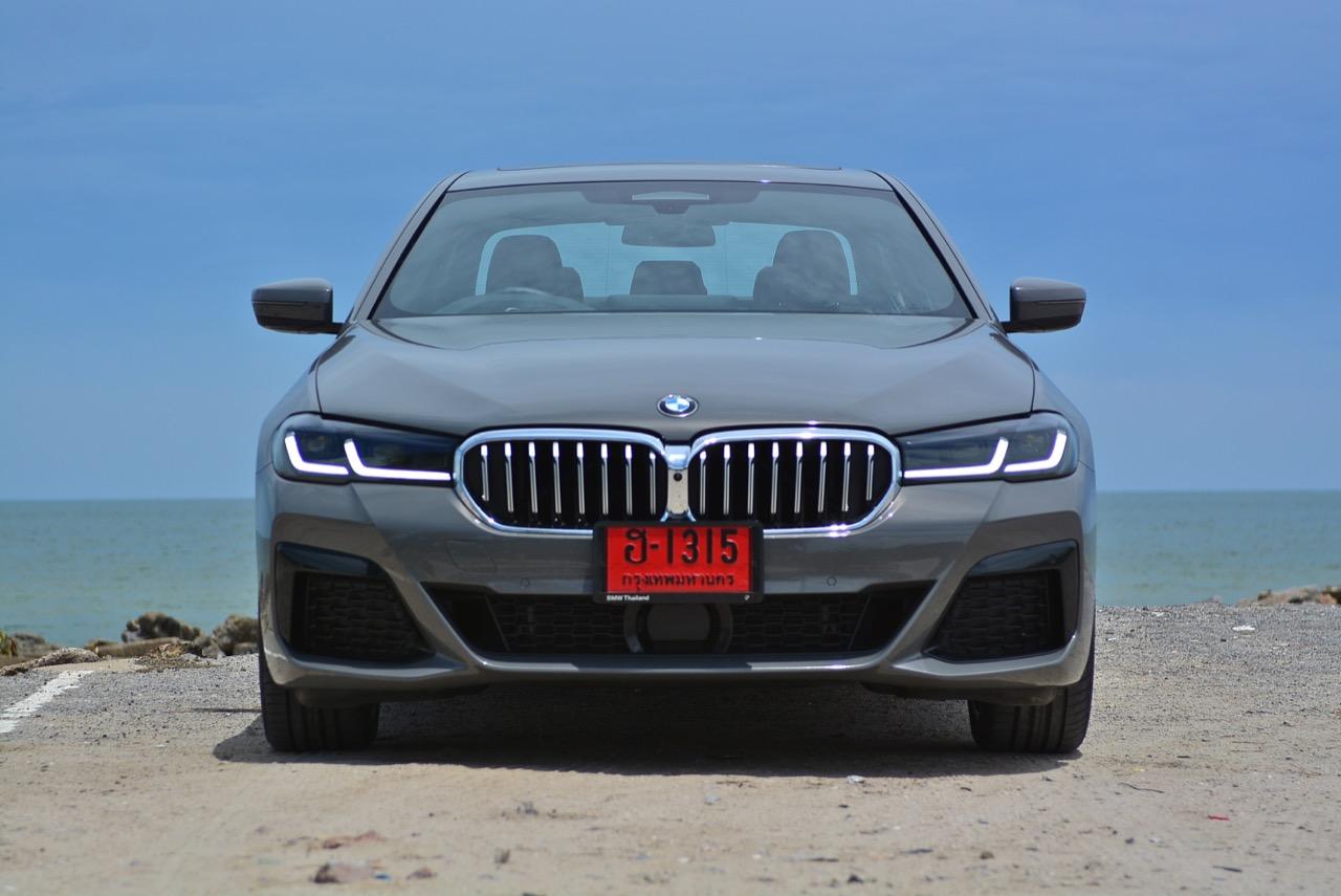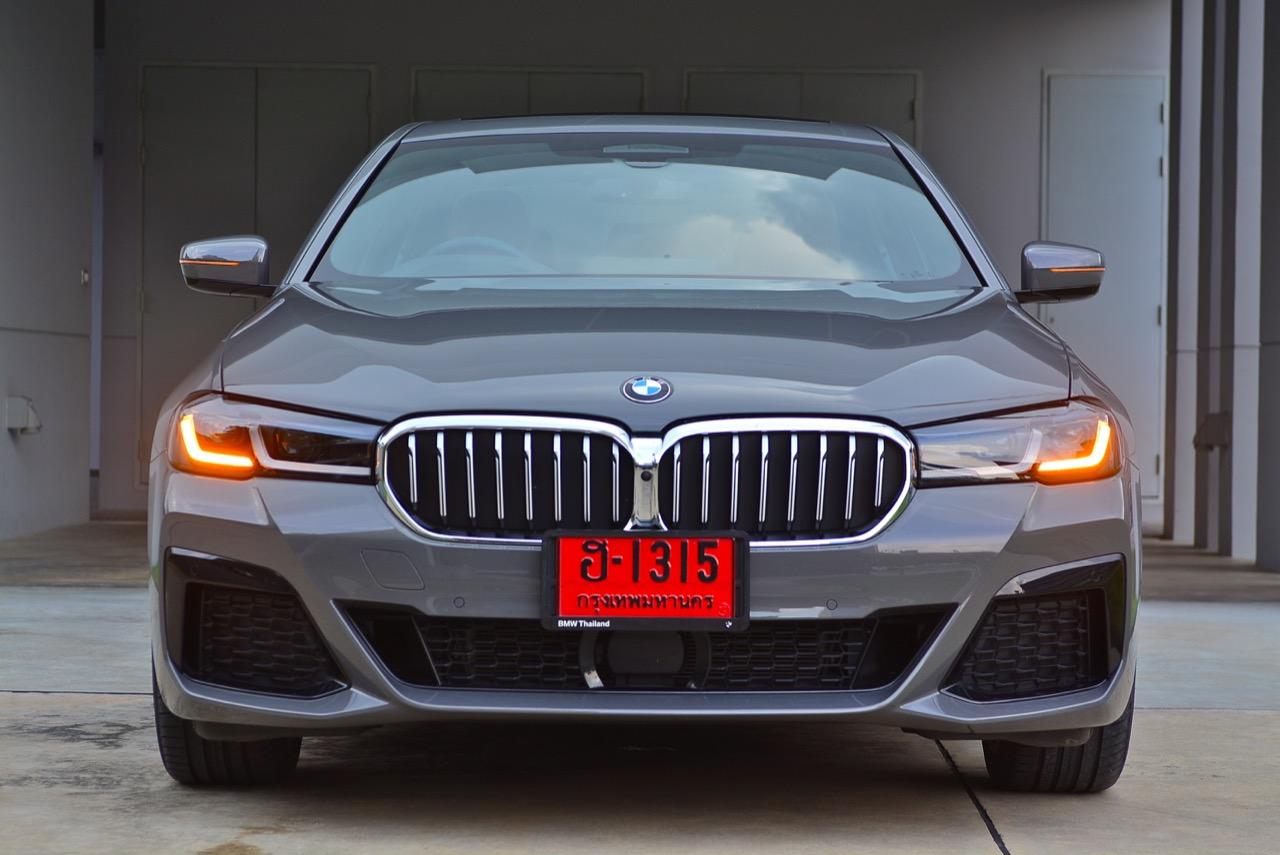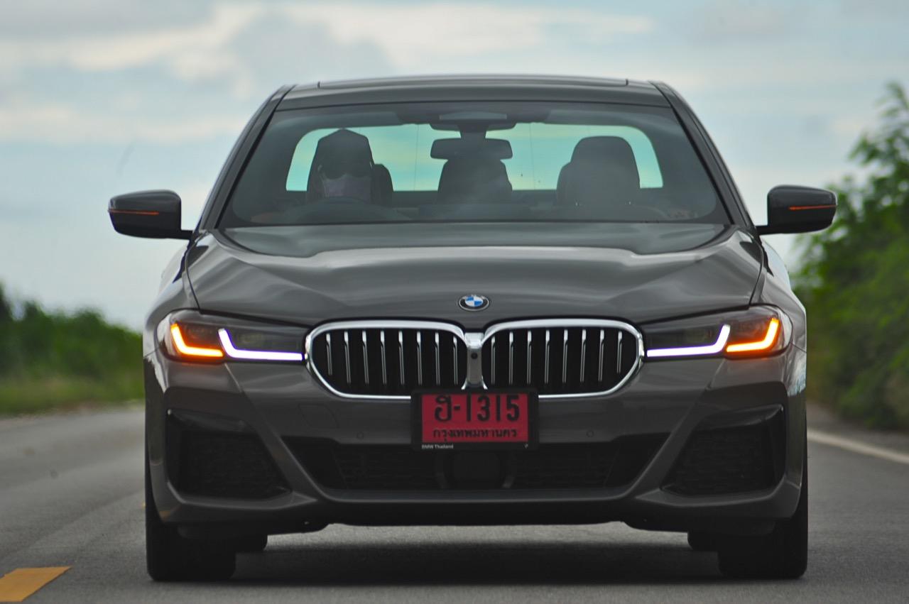 อุปกรณ์ตกแต่งภายนอกและภายในของ M-Sport ไล่เรียงจากสปอยเลอร์หน้า M ล้ออัลลอยขอบ 19 นิ้วของ M กาบบันได M สปอยเลอร์หลัง M แก้มข้างแปะตราสัญลักษณ์ M ชิ้นเล็กๆ ชุดเบรก BMW M Performance Brakes คาร์ลิปเปอร์หน้าแบบ 4พอต หลังซิงเกิลพอต พ่นสีน้ำเงินแปะตราสัญลักษณ์ M เพื่อบ่งบอกว่ามันไม่ใช่ M5 แท้ๆ แค่ Series-5 ที่ประดับประดาชุดแต่งและชุดเพิ่มสมรรถนะเพื่อความน่าใช้งาน ไฟหน้าแบบ Adaptive LED เวอร์ชั่นใหม่ล่าสุด ปรับทิศทางตามการหมุนของพวงมาลัย ทำงานแบบอัตโนมัติ ทั้งยกหรือลดไฟสูง ส่องไฟไปยังพื้นที่มืดด้านหน้าและด้านข้าง โดยเบี่ยงเบนไม่ให้ลำแสงไปรบกวนรถรอบข้างหรือรถที่แล่นสวนมา Adaptive LED แบบใหม่ ของ 5 LCI มีการปรับจูนซอฟต์แวร์ เพื่อทำให้ระบบตอบสนองได้เร็วขึ้นและมีกำลังในการส่องสว่างมากกว่าเดิม ไฟหน้า LED แบบใหม่ ถือเป็นเอกลักษณ์ที่ได้รับการออกแบบมาสำหรับ Series-5 รุ่นใหม่ โดยเฉพาะไฟหน้าแบบ Adaptive LED มีระบบปรับการกระจายแสงให้เหมาะสมกับเส้นทางที่ขับขี่ ไม่ว่าจะเป็นการเพิ่มแสงสว่างในมุมอับในขณะเข้าโค้ง ระบบปรับการทำงานไฟสูงอัตโนมัติในระยะไกลสุด เกือบๆ 600 เมตร
