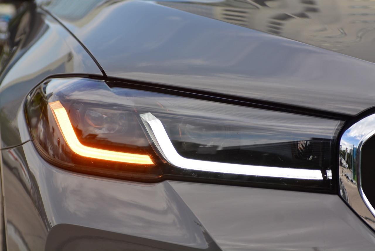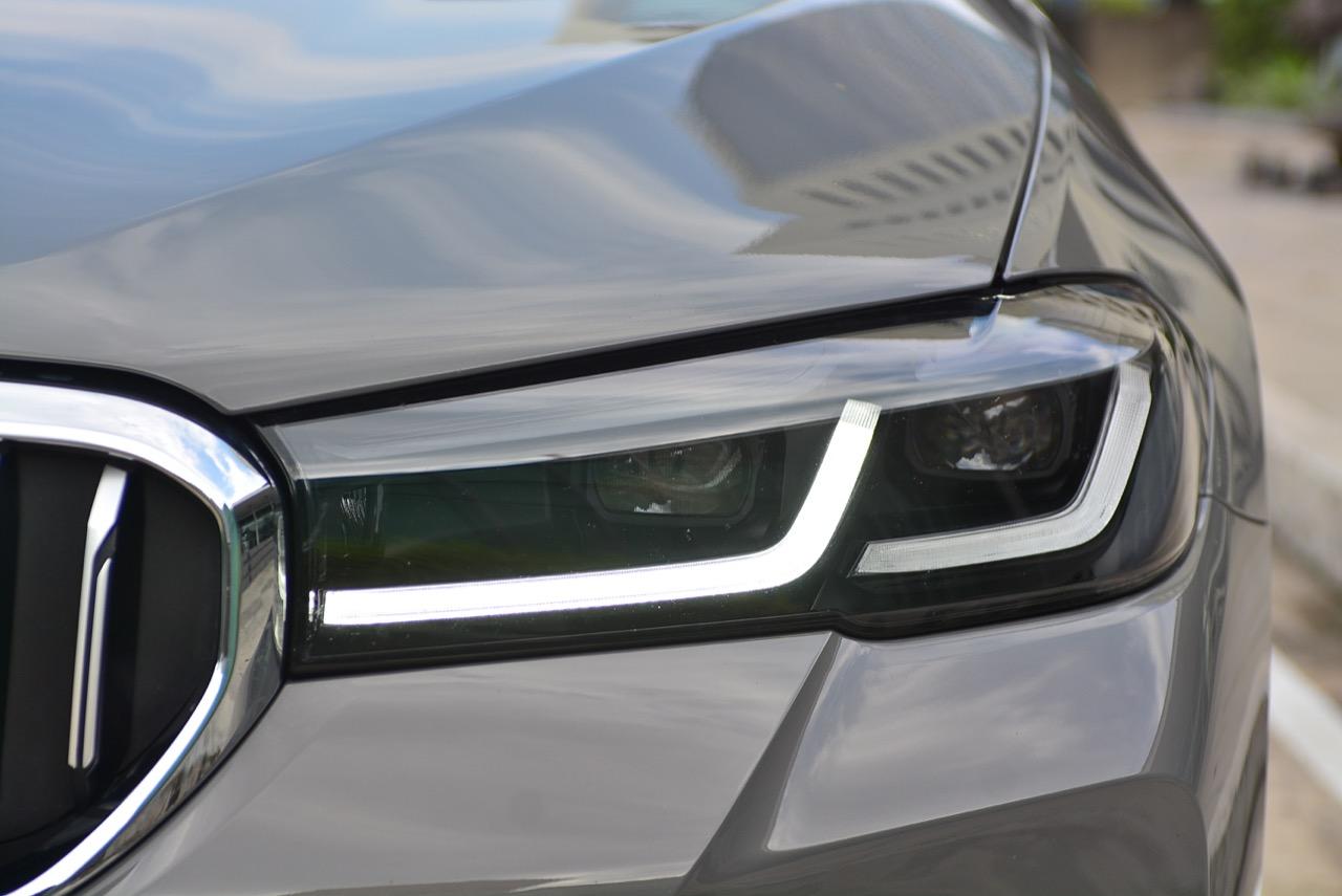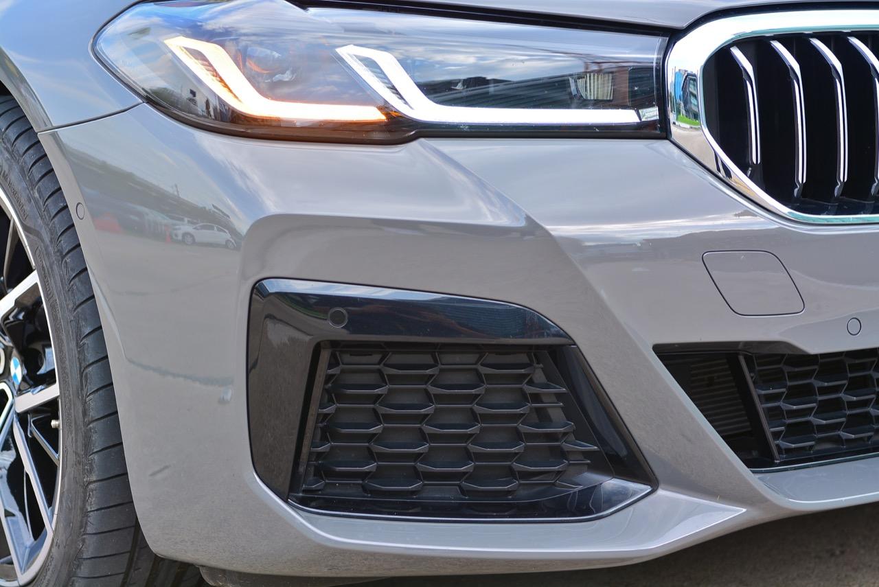อุปกรณ์ตกแต่งภายนอกและภายในของ M-Sport ไล่เรียงจากสปอยเลอร์หน้า M ล้ออัลลอยขอบ 19 นิ้วของ M กาบบันได M สปอยเลอร์หลัง M แก้มข้างแปะตราสัญลักษณ์ M ชิ้นเล็กๆ ชุดเบรก BMW M Performance Brakes คาร์ลิปเปอร์หน้าแบบ 4พอต หลังซิงเกิลพอต พ่นสีน้ำเงินแปะตราสัญลักษณ์ M เพื่อบ่งบอกว่ามันไม่ใช่ M5 แท้ๆ แค่ Series-5 ที่ประดับประดาชุดแต่งและชุดเพิ่มสมรรถนะเพื่อความน่าใช้งาน ไฟหน้าแบบ Adaptive LED เวอร์ชั่นใหม่ล่าสุด ปรับทิศทางตามการหมุนของพวงมาลัย ทำงานแบบอัตโนมัติ ทั้งยกหรือลดไฟสูง ส่องไฟไปยังพื้นที่มืดด้านหน้าและด้านข้าง โดยเบี่ยงเบนไม่ให้ลำแสงไปรบกวนรถรอบข้างหรือรถที่แล่นสวนมา Adaptive LED แบบใหม่ ของ 5 LCI มีการปรับจูนซอฟต์แวร์ เพื่อทำให้ระบบตอบสนองได้เร็วขึ้นและมีกำลังในการส่องสว่างมากกว่าเดิม ไฟหน้า LED แบบใหม่ ถือเป็นเอกลักษณ์ที่ได้รับการออกแบบมาสำหรับ Series-5 รุ่นใหม่ โดยเฉพาะไฟหน้าแบบ Adaptive LED มีระบบปรับการกระจายแสงให้เหมาะสมกับเส้นทางที่ขับขี่ ไม่ว่าจะเป็นการเพิ่มแสงสว่างในมุมอับในขณะเข้าโค้ง ระบบปรับการทำงานไฟสูงอัตโนมัติในระยะไกลสุด เกือบๆ 600 เมตร