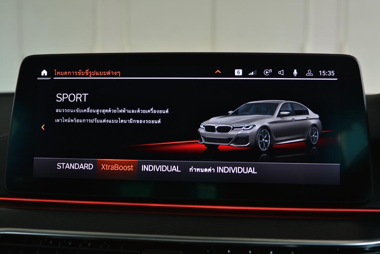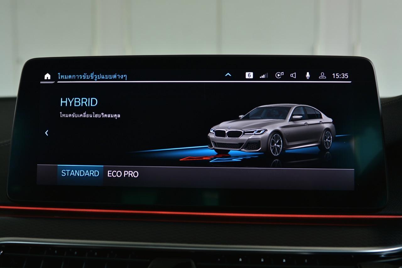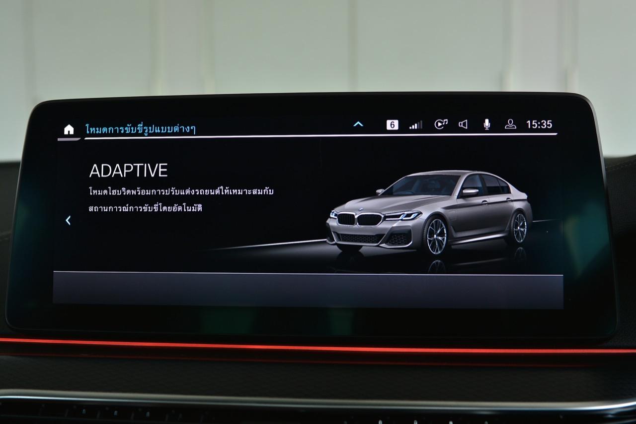 โหมดการขับเคลื่อนที่หลากหลายของ BMW 530e M-Sport LCI มี 4 โหมดให้เลือกใช้ตามสไตล์ของการขับก็คือ Hybrid, Electric, Sport และ Adaptive ทุกโหมด จะปรับการทำงานของเครื่องยนต์และระบบไฮบริด เมื่อเลือกใช้โหมด Hybrid ระบบจะปรับการใช้พลังงานให้มีความเหมาะสม เพื่อเน้นความประหยัดและลดมลพิษ สำหรับโหมด Electric หรือ EV ด้วยการใช้แรงขับเคลื่อนจากมอเตอร์ไฟฟ้า BMW เคลมมาว่า 530e จะวิ่งด้วยพลังไฟแต่เพียงอย่างเดียวไกล 50 กิโลเมตร เมื่อลองวิ่งจริงหลังจากชาร์จไฟจนเต็มแบตฯ ทำได้ 32 กิโลเมตร ที่ความเร็ว 100-110 กิโลเมตรต่อชั่วโมง เมื่อมีประจุไฟอยู่ในแบตเตอรี่มากพอ 530e LCI สามารถวิ่งด้วยความเร็ว 140 กิโลเมตรต่อชั่วโมง โดยที่เครื่องยนต์ยังคงหลับไหลอยู่ แต่การวิ่งในย่านความเร็วสูงด้วยพลังไฟจากแบตฯ จะทำให้กระแสไฟฟ้าที่เก็บอยู่ในแบตเตอรี่ถูกรัปประทานด้วยมอเตอร์ขับเคลื่อนแล้วหมดลงอย่างรวดเร็ว!