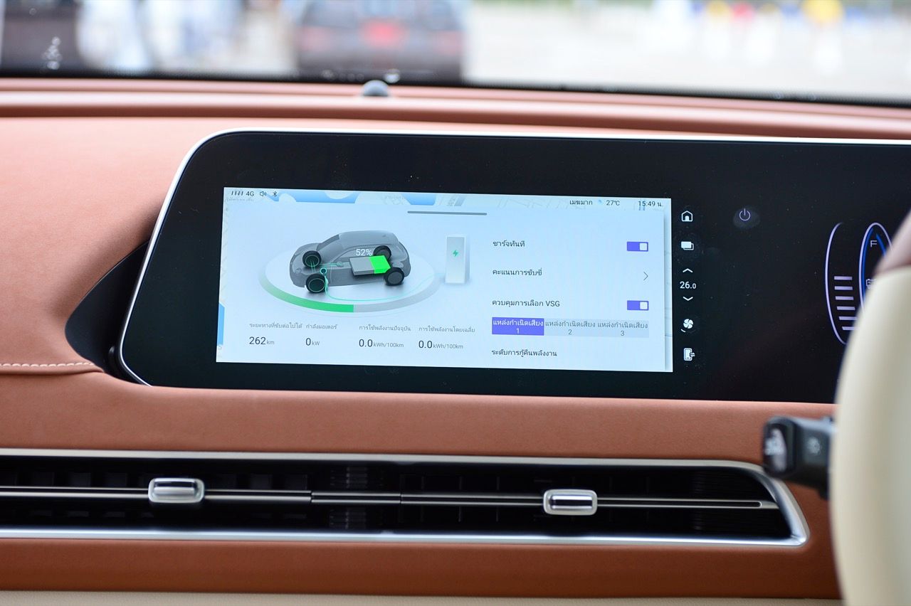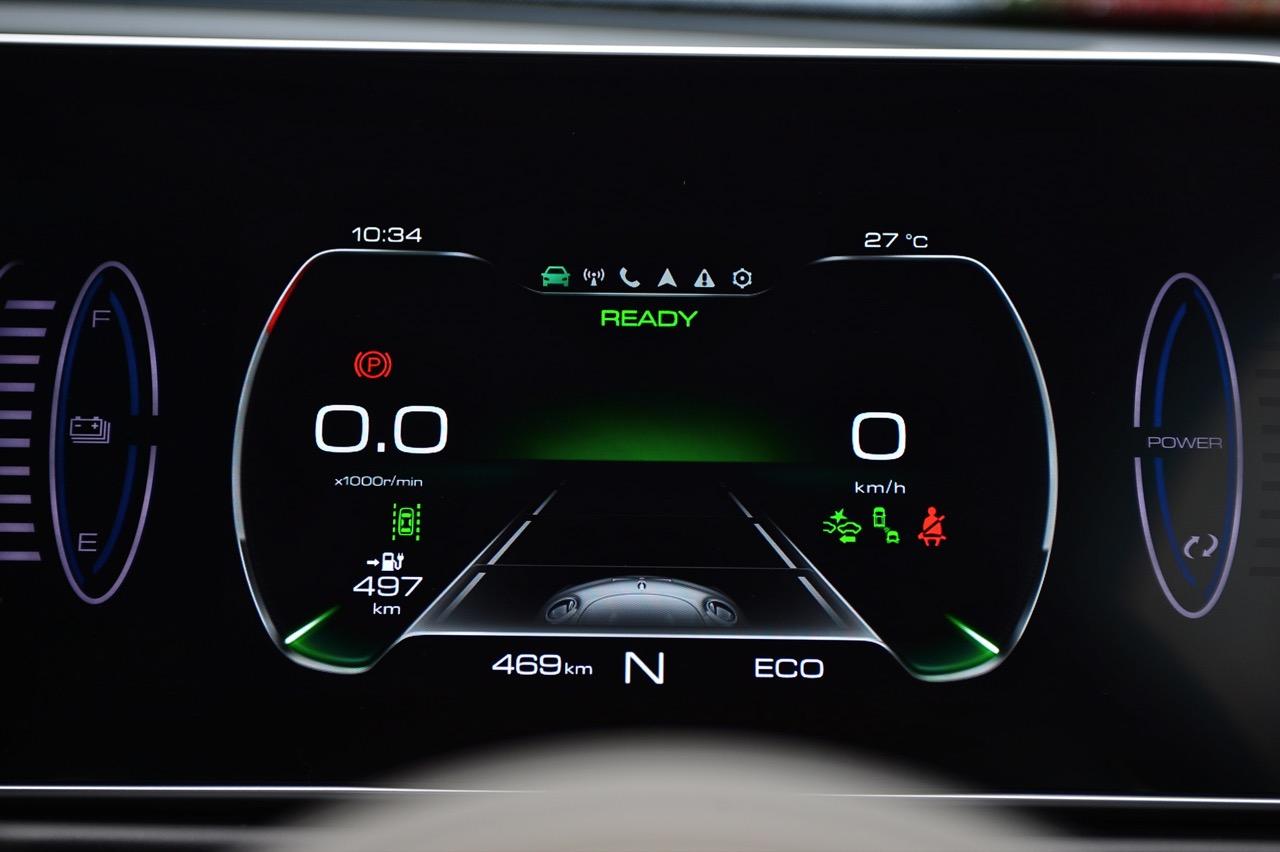 ระบบขับขี่ทั้งหมด 5 แบบ ได้แก่ 1) มาตรฐาน 2) Sport 3) ECO 4) ECO+ และ Auto อัตโนมัติ ปรับได้เองตามปริมาณแบตเตอรี่ที่เหลือ ผมใช้โหมด Sport ขับทดสอบด้วยความเร็วสูงตลอดเส้นทาง เพื่อจับอาการเมื่อขับเร็ว รวมถึงสังเกตการรับประทานไฟของเจ้าเหมียว ที่ความเร็ว 140-150 กิโลเมตรต่อชั่วโมง พลังไฟในแบตเตอรี่ลดลงทีละน้อยแบบค่อยเป็นค่อยไป ระยะทางไปกลับจากกรุงเทพฯ-ฉะเชิงเทรา ประมาณ 200 กิโลเมตร เมื่อขับกลับมาถึงจุดสตาร์ทที่เมืองทองธานี เจ้าแมวยังมีไฟเหลือให้วิ่งอีก 240 กิโลเมตร จุดนี้ ถือว่าทำออกมาได้ดี ถ้าขับแบบเรื่อยๆ มันจะวิ่งได้ระยะทางเกือบเท่ากับที่เคลมมาก็คือเฉียดๆ 500 กิโลเมตรเลยทีเดียว สำหรับซอฟต์แวร์ด้านความสามารถการกู้คืนพลังงาน (Energy Recovery) ปรับตั้งได้สามระดับ ได้แก่ น้อย, มาตรฐาน และมาก เพื่อประหยัดพลังงาน เมื่อยกคันเร่งหรือเบรก ระบบสะสมพลังงานไฟฟ้าจะทำหน้าที่เปลี่ยนแปลงพลังงานจลน์ให้กลายเป็นพลังงานไฟฟ้าเพื่อส่งไปเก็บในแบตเตอรี่ เป็นการใช้และคืนพลังงานไฟที่มีประสิทธิภาพใช้ได้ สำหรับฟังก์ชันระบบตรวจสอบพฤติกรรมการขับขี่ เพื่อให้คะแนนพร้อมให้คำแนะนำในการขับขี่ ไม่ได้ลองใช้งาน