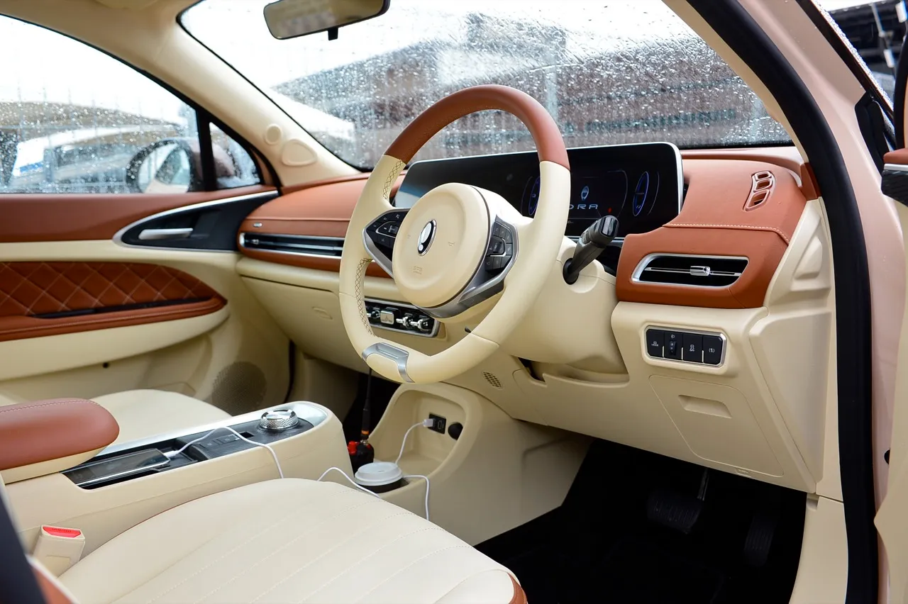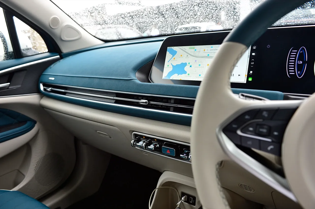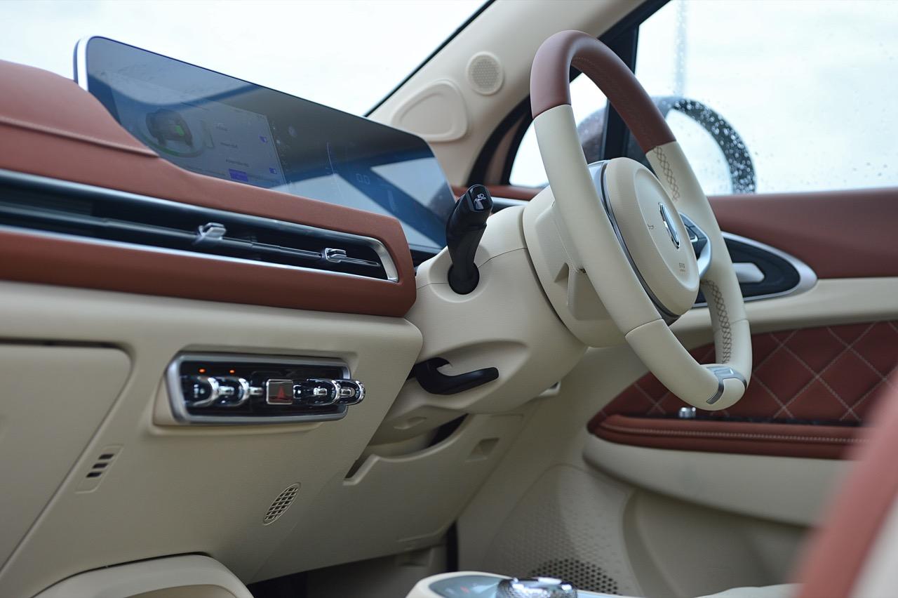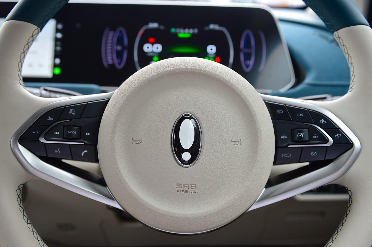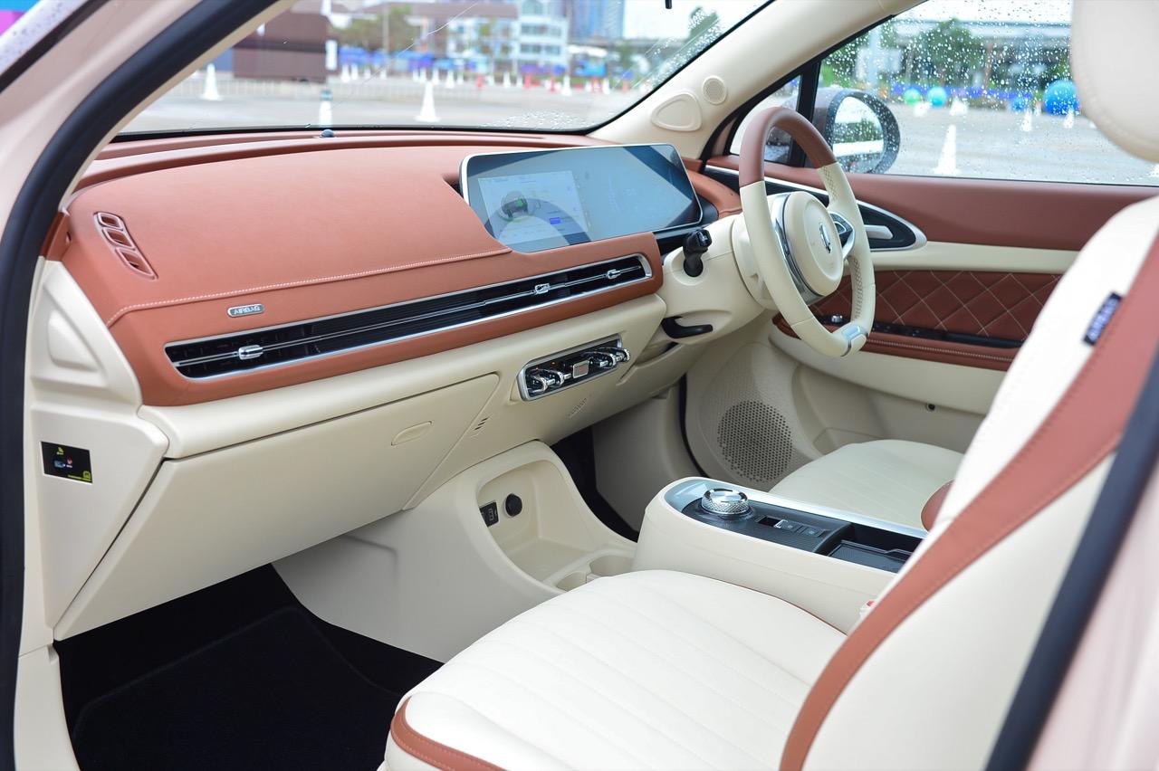 การออกแบบภายในของ ORA Good Cat รุ่น 500 Ultra คันทดสอบสีเขียว ต้องยอมรับว่าทำออกมาได้อย่างโดดเด่น จุดที่ทำได้ดีก็คือ วัสดุพวกหนังสังเคราะห์ที่ใช้ห่อหุ้มชิ้นงานต่างๆ ไม่ว่าจะเป็นแดชบอร์ด คอนโซล เบาะ แผงประตู ผ้าบุหลังคา พรมปูพื้น และพลาสติกภายใน เป็นของที่มีคุณภาพ ถูกนำมาจัดวางผ่านงานดีไซน์จากนักตกแต่งภายในของ GWM ด้วยความต้องการที่จะสร้างความแตกต่างด้านความหรูหราให้มากกว่ารถญี่ปุ่น การทำตัวคล้ายกับภายในของ MG HS ที่ทำให้ลูกค้าหลายคนติดใจ ด้วยการออกแบบที่ทันสมัย งานประกอบภายในประณีตใช้ได้ โดยเฉพาะรอยต่อต่างๆ งานตัดเย็บ และโทนสีที่เลือกเฉดมาให้ตัดกันอย่างจงใจ โทนสีภายในของ ORA Goodcat รุ่น 500 Ultra มีให้เลือกสองโทนและขึ้นอยู่กับสีของตัวถังภายนอก ถ้าเลือกแมวเขียวหลังคาขาว คุณจะได้ภายในสีเขียวสลับเทา พร้อมงานออกแบบและตัดเย็บแนว Luxury ส่วนคนที่ชอบเจ้าเหมียวสีครีมหลังคาโทนสีเข้ม จะได้ภายในสีเบสผสมกับเฉดสีน้ำตาล เย็บเดินตะเข็บด้วยด้ายสีขาว เฉดสีกับวัสดุที่ดูดี โดยเฉพาะเกรดของพลาสติกนั้นดีกว่ารถญี่ปุ่นบางยี่ห้อ อาจยากต่อการดูแลรักษาให้ใหม่อยู่เสมอแต่สวยงามโดนใจ บ่งบอกถึงความตั้งใจในการผลิต เพื่อทำให้ภายในของเจ้าแมวมีความน่าใช้งาน ร่วมสมัย และสร้างแรงจูงใจของคนที่กำลังเล็งรถไฟฟ้าให้หลงรักแมวแสนดีตัวนี้อย่างโงหัวไม่ขึ้น! จุดที่ชอบก็คือ หนังสังเคราะห์ที่ใช้หุ้มแดชบอร์ดและคอนโซลซึ่งให้ผิวสัมผัสคล้ายๆ กับผ้าไมโครไฟเบอร์หรือหนังกลับ Alcantara เบาะคนขับปรับไฟฟ้า แต่ไม่มีฟังก์ชันยกเบาะส่วนหน้าเพื่อรองต้นขา ส่วนเบาะคนนั่งหน้าในรุ่นสูงสุดยังใช้การปรับมือเพื่อลดต้นทุน