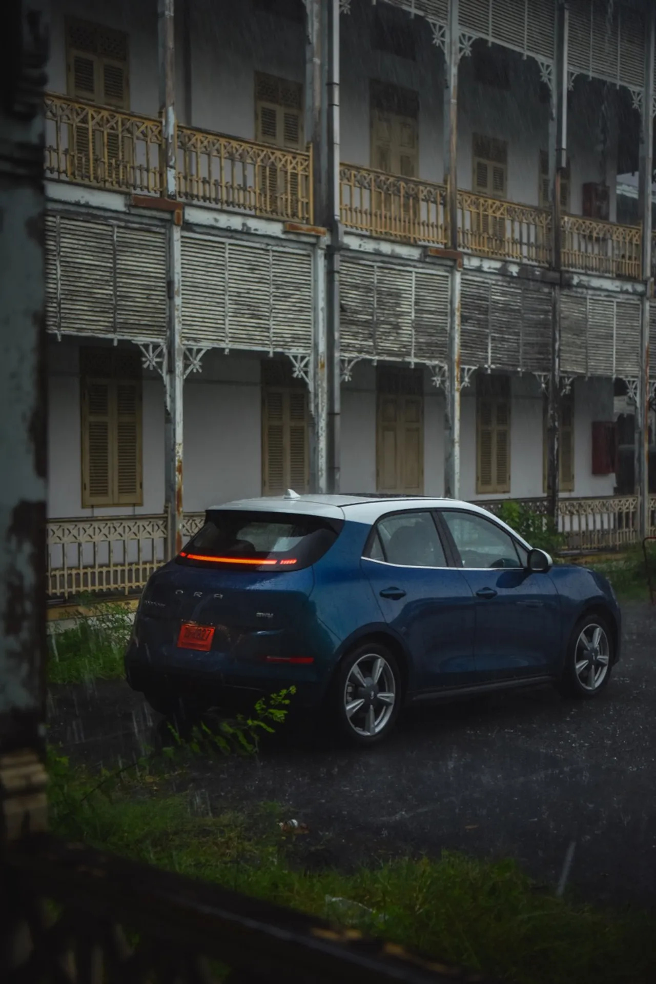 แมวดีมีทรงที่กะทัดรัด ขนาดตัวถังไม่ใหญ่ แต่มีความกว้างและสัดส่วนความสูงที่เอื้ออำนวยต่อการนั่ง โดยเน้นไปที่เน้นความโปร่งโล่ง พื้นที่วางขาของเบาะหลังมีมาให้พอเพียง ส่วนพื้นที่เหนือกระบาลทั้งคนนั่งหน้าและหลังก็มากพอที่จะไม่ทำให้รู้สึกอึดอัด ไฟหน้ากลมโตแบบลูกกะตาแมวดูไปแล้วก็น่ารักดี ทรงด้านข้างป้อมๆ อ้วนๆ เสาท้ายดูขัดแย้งกับแนวตัวถังแต่ฝาท้ายและการออกแบบในส่วนของบั้นท้ายช่วยทำให้เจ้าแมวมีด้านหลังที่ลงตัวแบบรถ Hatchback กระจกบานฝาท้ายไม่ได้มีพื้นที่มากนัก สำหรับไฟท้ายที่อยู่ภายในกระจกบานฝาท้ายออกแบบได้ดี รวมไปถึงไฟเบรกดวงที่สามซึ่งอยู่ด้านบนบริเวณกึ่งกลางของสปอยเลอร์หลัง กันชนหลังสอดรับกับขอบของฝาท้าย การออกแบบที่แหวกแนว มีการผสมระหว่างความทันสมัยและสไตล์แบบย้อนยุค ทำให้ ORA Goodcat มีส่วนผสมอันหลากหลายของรถหลายรุ่น ฝาท้ายไม่มีระบบเปิด-ปิดด้วยไฟฟ้า ต้องออกแรงยกขึ้นกดลงเอาเอง