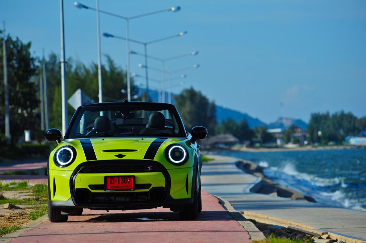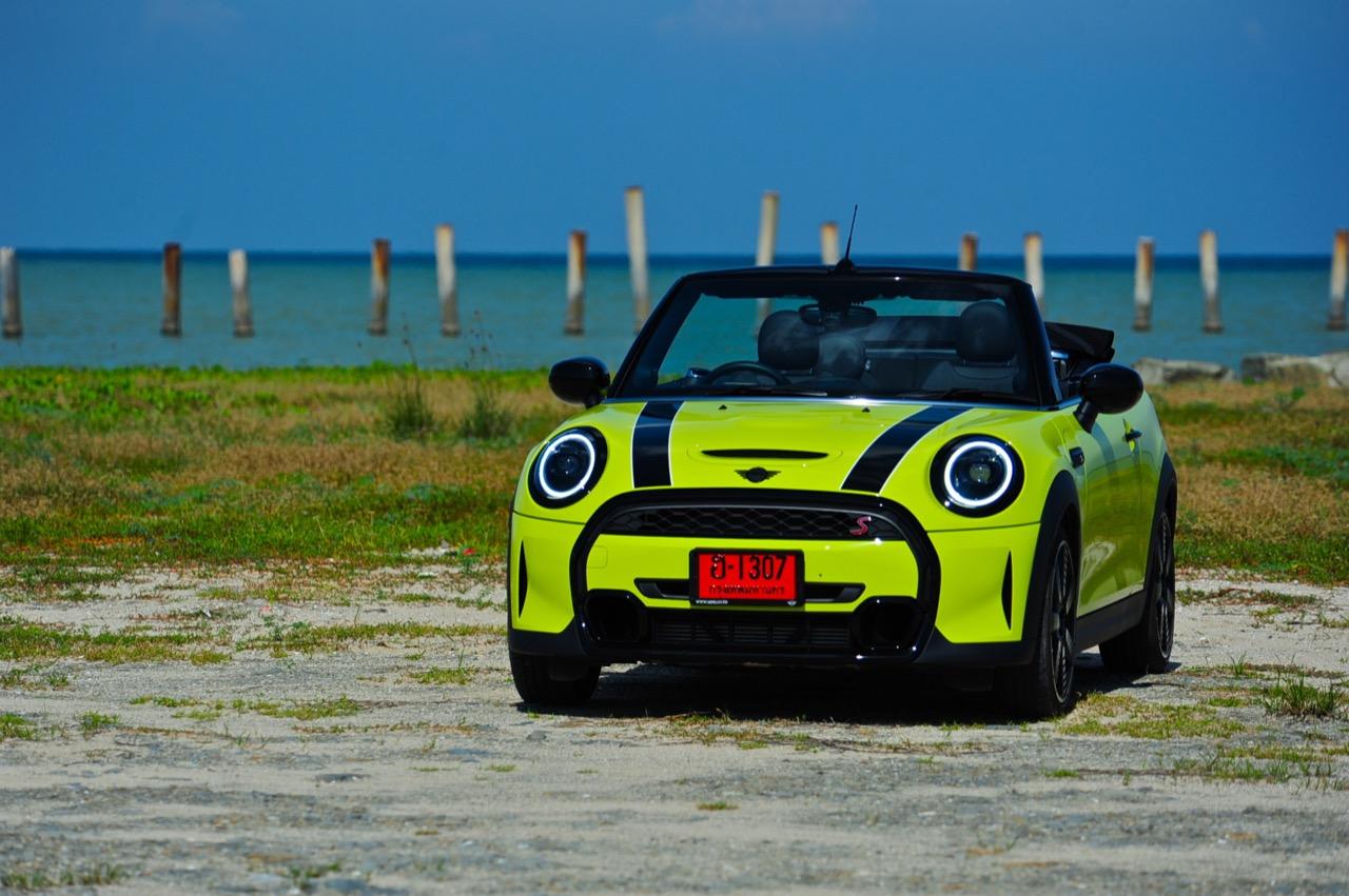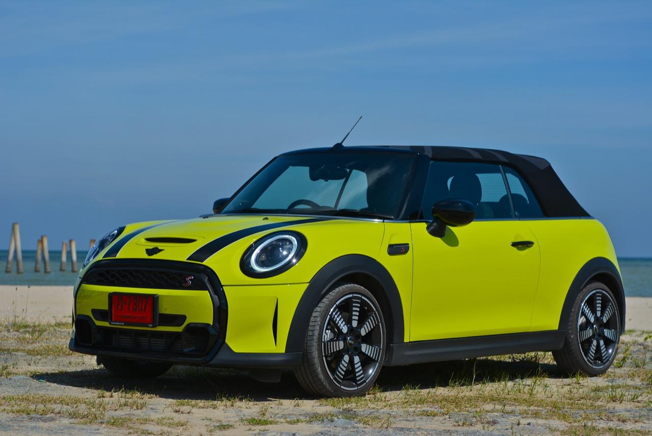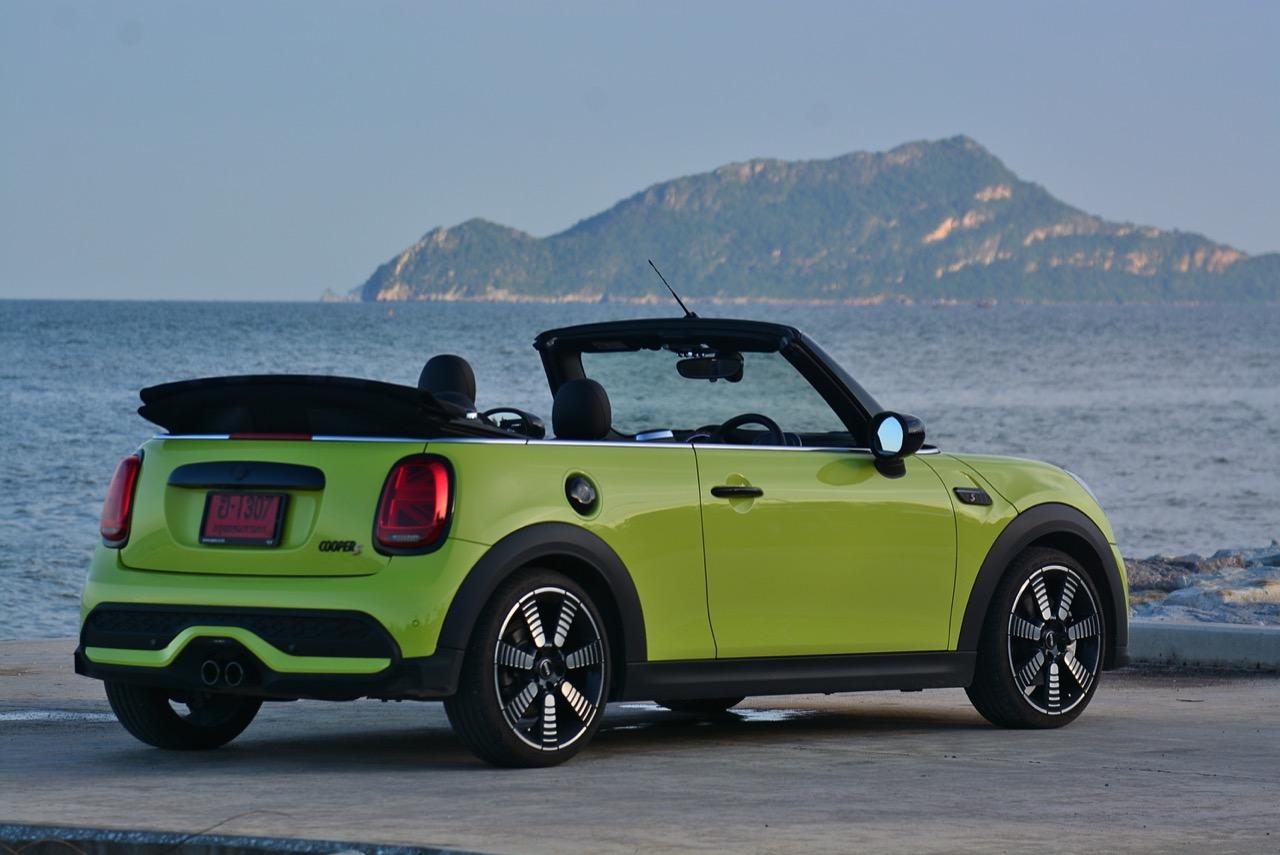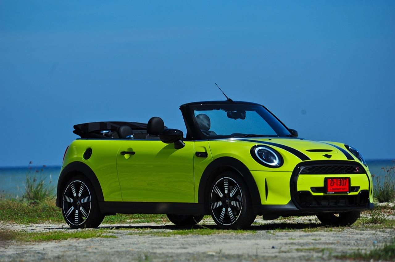 MINI Cooper S LCI Convertible เป็นรถเปิดหลังคาสำหรับคนที่ชอบการขับแบบกินลมชมวิว ซึ่งในบางครั้งไม่จำเป็นต้องใช้ความเร็ว แม้จะไม่ได้มีแรงบิดมากเหมือน MINI Cooper JCW รุ่นสูงสุดที่มีราคาแพงกว่า แต่เจ้าของรถสามารถอัดมันได้ทุกเมื่อเท่าที่ต้องการ ฐานล้อที่สั้นกว่ารถปกติทำให้ไม่ควรขับแบบกระชากพวงมาลัยเพื่อเปลี่ยนทิศทางเร็วๆ ในย่านความเร็วสูง ม้าทั้ง 192 ตัวที่ถูกปล่อยลงพื้นบนล้อคู่หน้ากลายเป็นเสน่ห์ของ MINI เกือบทุกรุ่น (ยกเว้น Countryman All4) แต่ไม่เหมาะกับคนที่ชอบขับแบบกระแทกกระทั้น ช่วงล่างเซตมานุ่มดี ทำให้วิ่งทางยาวๆ แบบสบายเนื้อสบายตัว เบาะหนังสีเทาดำ เย็บสลับกับหนังแท้และไมโครไฟเบอร์ นั่งสบายใช้ได้ การเดินผ่าน MINI Cooper S Convertible ตอนพับหลังคาเก็บริมชายหาดจะทำให้คุณจ้องมองมันนานเหมือนโดนสะกด เป็นรถที่ดึงดูดสายตาที่มาพร้อมกับรอยยิ้มของผู้คนที่ได้พบเห็น ยอมรับว่า MINI ภายใต้การดูแลของ BMW Group นั้นขับได้ดีขึ้นมาก เป็นเหมือนของดีที่ลองได้สัมผัสแล้ว น่าจะทำให้ติดอกติดใจกันแทบทุกคน คุณจะลืมพื้นที่อันคับแคบของเบาะหลังที่ออกแบบมาสำหรับหมาชิวาวา MINI ทุกรุ่นในปัจจุบันนั้นมีรูปลักษณ์ที่เปลี่ยนไปมาก เมื่อเทียบกับขนาดอันกะทัดรัดของ MINI คันต้นฉบับจากอังกฤษ เมื่อมาอยู่กับพวกเยอรมันอย่าง BMW รถ MINI ใหม่ จะมีสไตล์ที่แตกต่าง บวกกับความรู้สึกหลังพวงมาลัย และอานุภาพของแชสซี กับมนต์ขลังของฟีลลิ่งสไตล์โคคาร์ท ทำให้มันเป็นรถเล็กราคาแพงที่ยังคงขายได้เหมือนเดิม