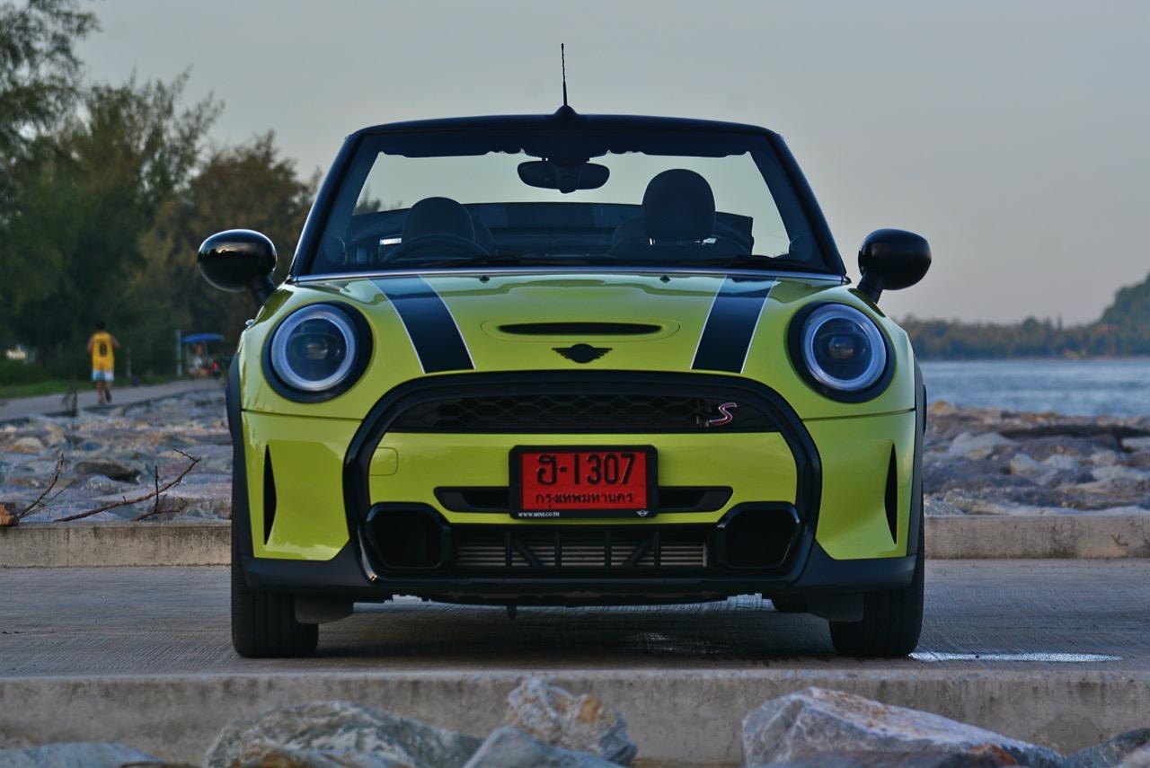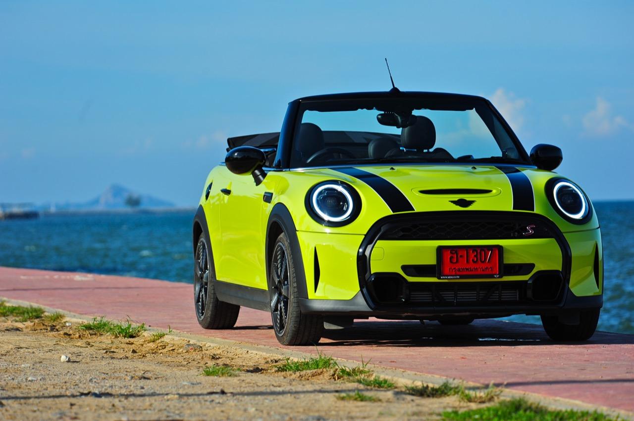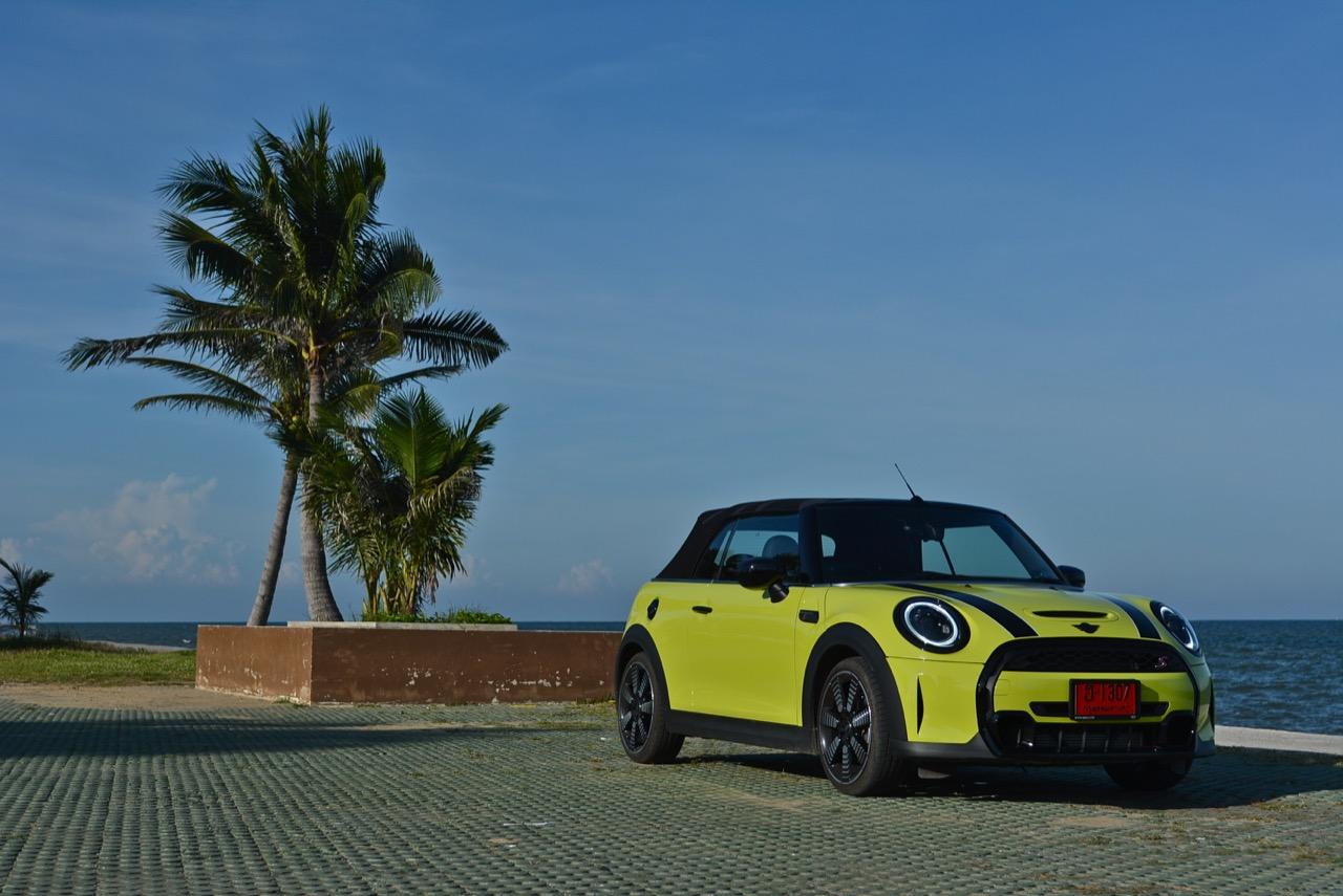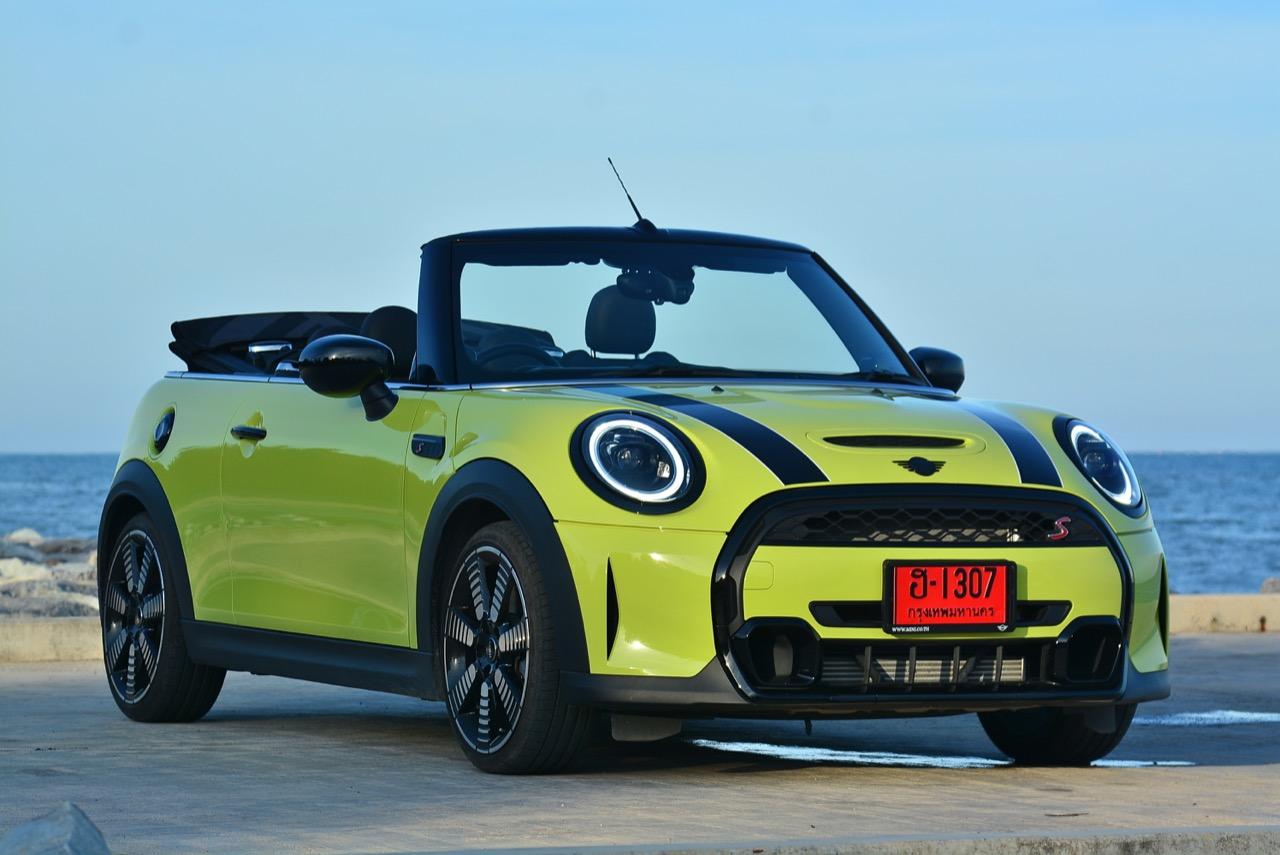 MINI Cooper S LCI Convertible เป็นรถเปิดหลังคาสำหรับคนที่ชอบการขับแบบกินลมชมวิว ซึ่งในบางครั้งไม่จำเป็นต้องใช้ความเร็ว แม้จะไม่ได้มีแรงบิดมากเหมือน MINI Cooper JCW รุ่นสูงสุดที่มีราคาแพงกว่า แต่เจ้าของรถสามารถอัดมันได้ทุกเมื่อเท่าที่ต้องการ ฐานล้อที่สั้นกว่ารถปกติทำให้ไม่ควรขับแบบกระชากพวงมาลัยเพื่อเปลี่ยนทิศทางเร็วๆ ในย่านความเร็วสูง ม้าทั้ง 192 ตัวที่ถูกปล่อยลงพื้นบนล้อคู่หน้ากลายเป็นเสน่ห์ของ MINI เกือบทุกรุ่น (ยกเว้น Countryman All4) แต่ไม่เหมาะกับคนที่ชอบขับแบบกระแทกกระทั้น ช่วงล่างเซตมานุ่มดี ทำให้วิ่งทางยาวๆ แบบสบายเนื้อสบายตัว เบาะหนังสีเทาดำ เย็บสลับกับหนังแท้และไมโครไฟเบอร์ นั่งสบายใช้ได้ การเดินผ่าน MINI Cooper S Convertible ตอนพับหลังคาเก็บริมชายหาดจะทำให้คุณจ้องมองมันนานเหมือนโดนสะกด เป็นรถที่ดึงดูดสายตาที่มาพร้อมกับรอยยิ้มของผู้คนที่ได้พบเห็น ยอมรับว่า MINI ภายใต้การดูแลของ BMW Group นั้นขับได้ดีขึ้นมาก เป็นเหมือนของดีที่ลองได้สัมผัสแล้ว น่าจะทำให้ติดอกติดใจกันแทบทุกคน คุณจะลืมพื้นที่อันคับแคบของเบาะหลังที่ออกแบบมาสำหรับหมาชิวาวา MINI ทุกรุ่นในปัจจุบันนั้นมีรูปลักษณ์ที่เปลี่ยนไปมาก เมื่อเทียบกับขนาดอันกะทัดรัดของ MINI คันต้นฉบับจากอังกฤษ เมื่อมาอยู่กับพวกเยอรมันอย่าง BMW รถ MINI ใหม่ จะมีสไตล์ที่แตกต่าง บวกกับความรู้สึกหลังพวงมาลัย และอานุภาพของแชสซี กับมนต์ขลังของฟีลลิ่งสไตล์โคคาร์ท ทำให้มันเป็นรถเล็กราคาแพงที่ยังคงขายได้เหมือนเดิม