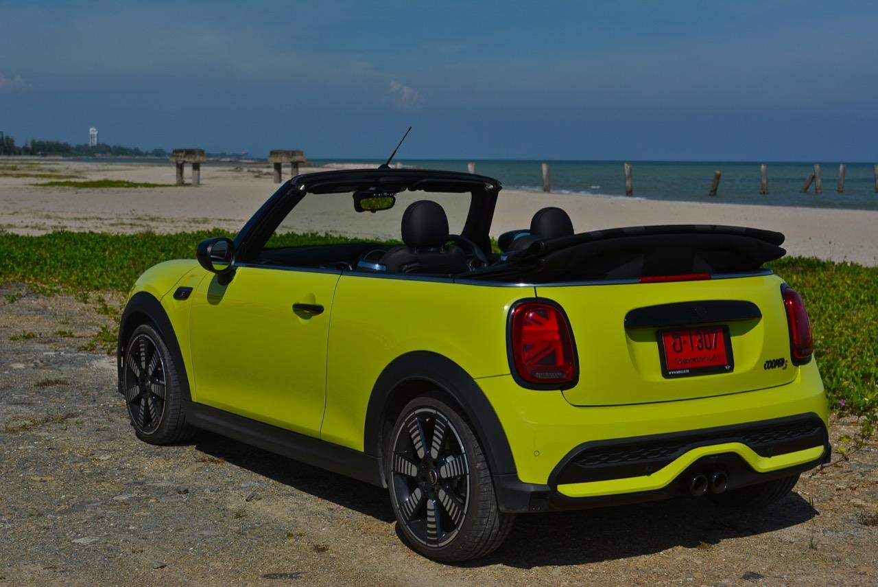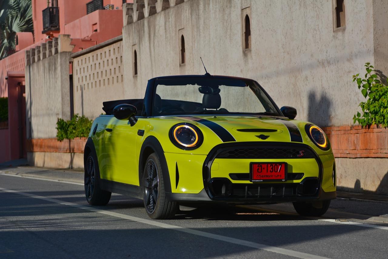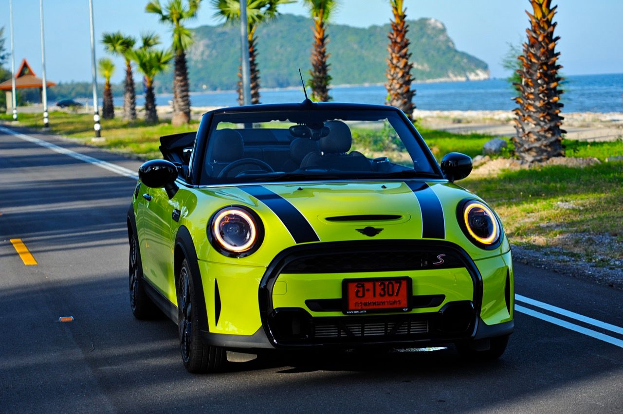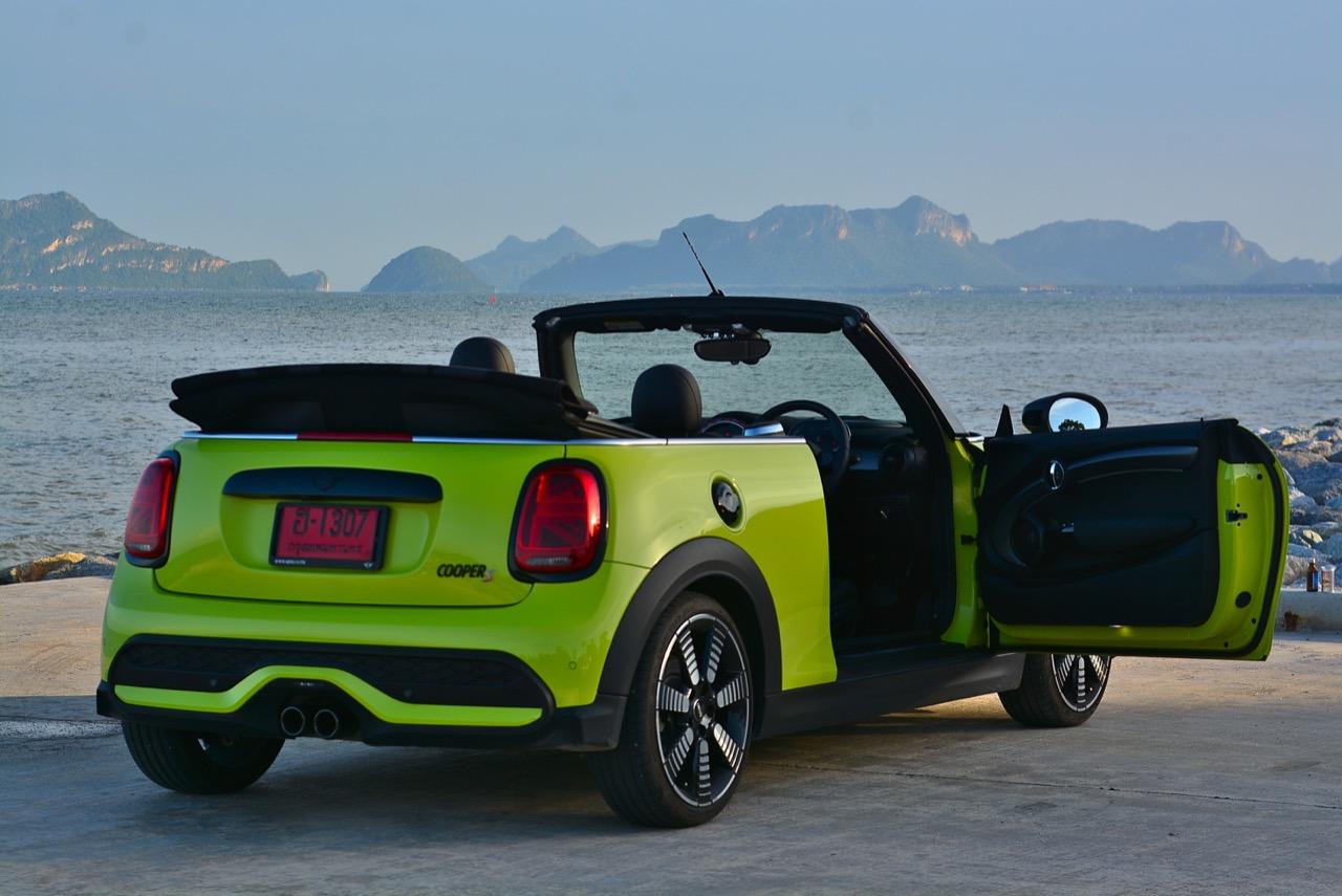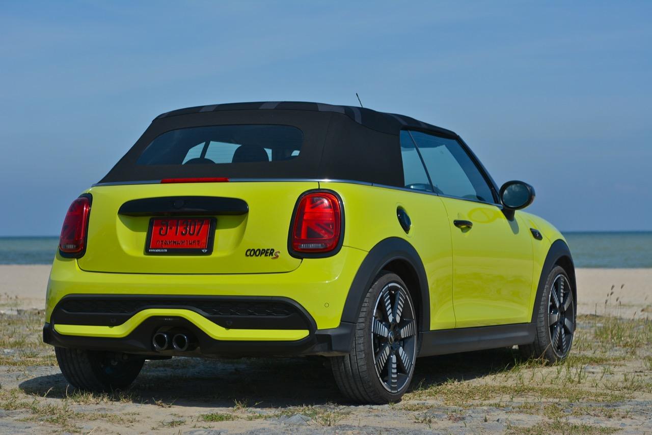 MINI Cooper S LCI Convertible เป็นรถเปิดหลังคาสำหรับคนที่ชอบการขับแบบกินลมชมวิว ซึ่งในบางครั้งไม่จำเป็นต้องใช้ความเร็ว แม้จะไม่ได้มีแรงบิดมากเหมือน MINI Cooper JCW รุ่นสูงสุดที่มีราคาแพงกว่า แต่เจ้าของรถสามารถอัดมันได้ทุกเมื่อเท่าที่ต้องการ ฐานล้อที่สั้นกว่ารถปกติทำให้ไม่ควรขับแบบกระชากพวงมาลัยเพื่อเปลี่ยนทิศทางเร็วๆ ในย่านความเร็วสูง ม้าทั้ง 192 ตัวที่ถูกปล่อยลงพื้นบนล้อคู่หน้ากลายเป็นเสน่ห์ของ MINI เกือบทุกรุ่น (ยกเว้น Countryman All4) แต่ไม่เหมาะกับคนที่ชอบขับแบบกระแทกกระทั้น ช่วงล่างเซตมานุ่มดี ทำให้วิ่งทางยาวๆ แบบสบายเนื้อสบายตัว เบาะหนังสีเทาดำ เย็บสลับกับหนังแท้และไมโครไฟเบอร์ นั่งสบายใช้ได้ การเดินผ่าน MINI Cooper S Convertible ตอนพับหลังคาเก็บริมชายหาดจะทำให้คุณจ้องมองมันนานเหมือนโดนสะกด เป็นรถที่ดึงดูดสายตาที่มาพร้อมกับรอยยิ้มของผู้คนที่ได้พบเห็น ยอมรับว่า MINI ภายใต้การดูแลของ BMW Group นั้นขับได้ดีขึ้นมาก เป็นเหมือนของดีที่ลองได้สัมผัสแล้ว น่าจะทำให้ติดอกติดใจกันแทบทุกคน คุณจะลืมพื้นที่อันคับแคบของเบาะหลังที่ออกแบบมาสำหรับหมาชิวาวา MINI ทุกรุ่นในปัจจุบันนั้นมีรูปลักษณ์ที่เปลี่ยนไปมาก เมื่อเทียบกับขนาดอันกะทัดรัดของ MINI คันต้นฉบับจากอังกฤษ เมื่อมาอยู่กับพวกเยอรมันอย่าง BMW รถ MINI ใหม่ จะมีสไตล์ที่แตกต่าง บวกกับความรู้สึกหลังพวงมาลัย และอานุภาพของแชสซี กับมนต์ขลังของฟีลลิ่งสไตล์โคคาร์ท ทำให้มันเป็นรถเล็กราคาแพงที่ยังคงขายได้เหมือนเดิม
