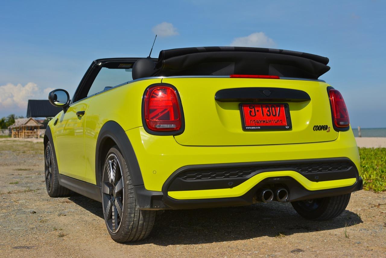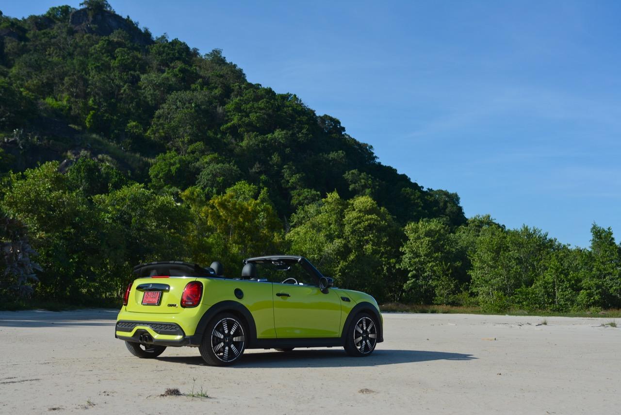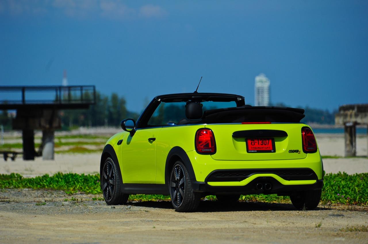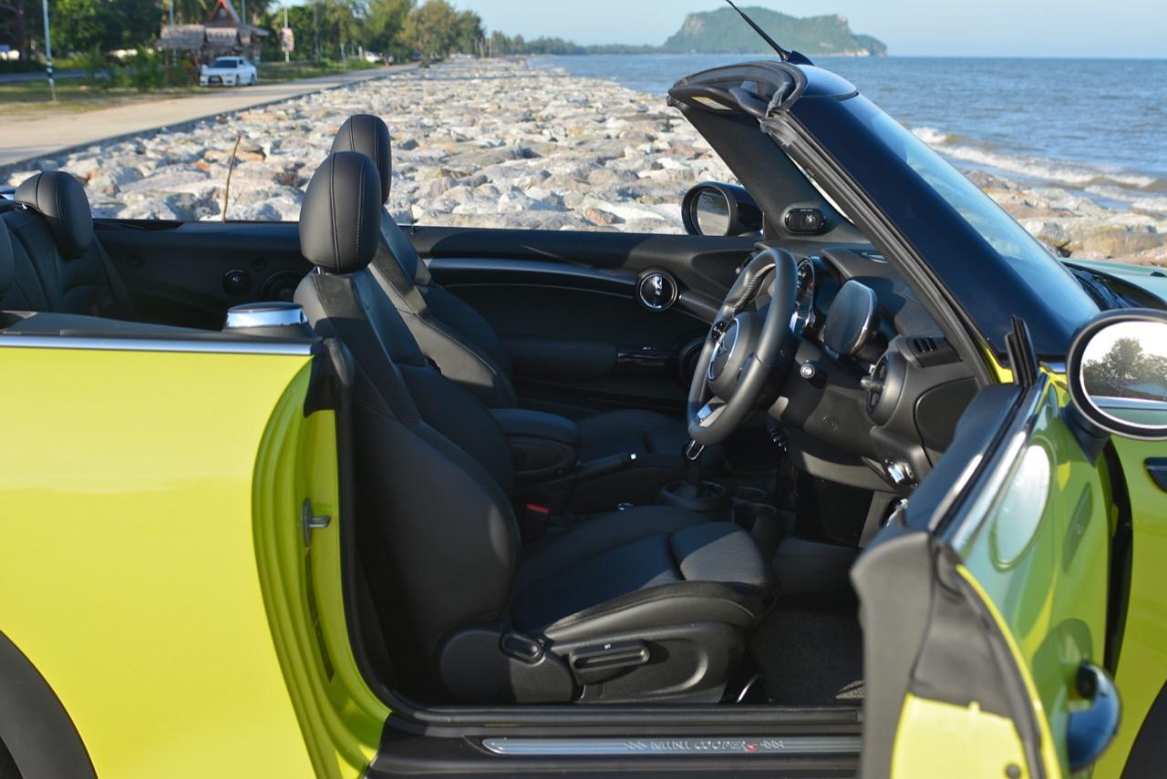 MINI Cooper S LCI Convertible เป็นรถเปิดหลังคาสำหรับคนที่ชอบการขับแบบกินลมชมวิว ซึ่งในบางครั้งไม่จำเป็นต้องใช้ความเร็ว แม้จะไม่ได้มีแรงบิดมากเหมือน MINI Cooper JCW รุ่นสูงสุดที่มีราคาแพงกว่า แต่เจ้าของรถสามารถอัดมันได้ทุกเมื่อเท่าที่ต้องการ ฐานล้อที่สั้นกว่ารถปกติทำให้ไม่ควรขับแบบกระชากพวงมาลัยเพื่อเปลี่ยนทิศทางเร็วๆ ในย่านความเร็วสูง ม้าทั้ง 192 ตัวที่ถูกปล่อยลงพื้นบนล้อคู่หน้ากลายเป็นเสน่ห์ของ MINI เกือบทุกรุ่น (ยกเว้น Countryman All4) แต่ไม่เหมาะกับคนที่ชอบขับแบบกระแทกกระทั้น ช่วงล่างเซตมานุ่มดี ทำให้วิ่งทางยาวๆ แบบสบายเนื้อสบายตัว เบาะหนังสีเทาดำ เย็บสลับกับหนังแท้และไมโครไฟเบอร์ นั่งสบายใช้ได้ การเดินผ่าน MINI Cooper S Convertible ตอนพับหลังคาเก็บริมชายหาดจะทำให้คุณจ้องมองมันนานเหมือนโดนสะกด เป็นรถที่ดึงดูดสายตาที่มาพร้อมกับรอยยิ้มของผู้คนที่ได้พบเห็น ยอมรับว่า MINI ภายใต้การดูแลของ BMW Group นั้นขับได้ดีขึ้นมาก เป็นเหมือนของดีที่ลองได้สัมผัสแล้ว น่าจะทำให้ติดอกติดใจกันแทบทุกคน คุณจะลืมพื้นที่อันคับแคบของเบาะหลังที่ออกแบบมาสำหรับหมาชิวาวา MINI ทุกรุ่นในปัจจุบันนั้นมีรูปลักษณ์ที่เปลี่ยนไปมาก เมื่อเทียบกับขนาดอันกะทัดรัดของ MINI คันต้นฉบับจากอังกฤษ เมื่อมาอยู่กับพวกเยอรมันอย่าง BMW รถ MINI ใหม่ จะมีสไตล์ที่แตกต่าง บวกกับความรู้สึกหลังพวงมาลัย และอานุภาพของแชสซี กับมนต์ขลังของฟีลลิ่งสไตล์โคคาร์ท ทำให้มันเป็นรถเล็กราคาแพงที่ยังคงขายได้เหมือนเดิม