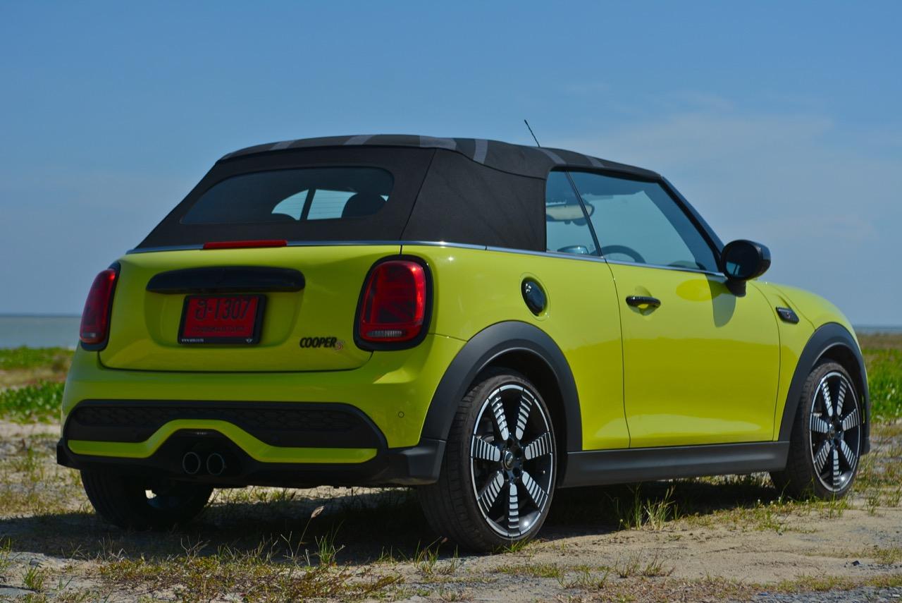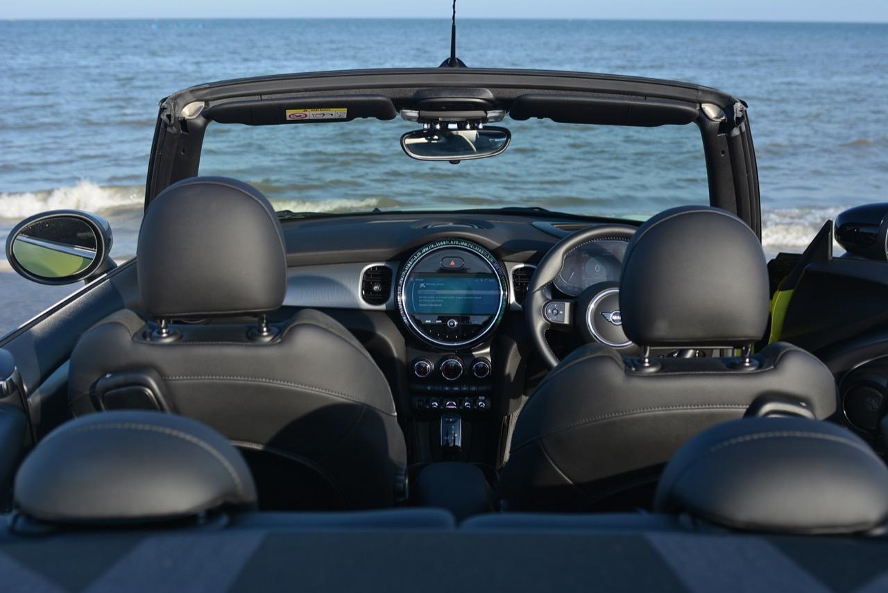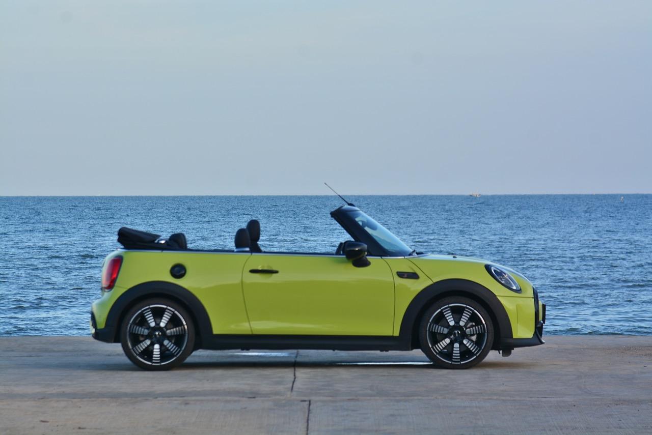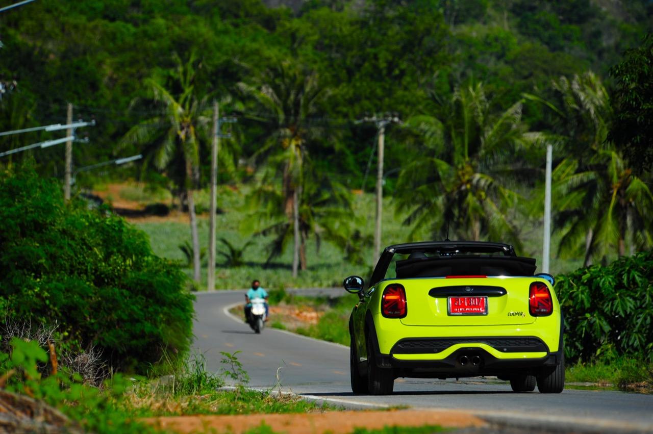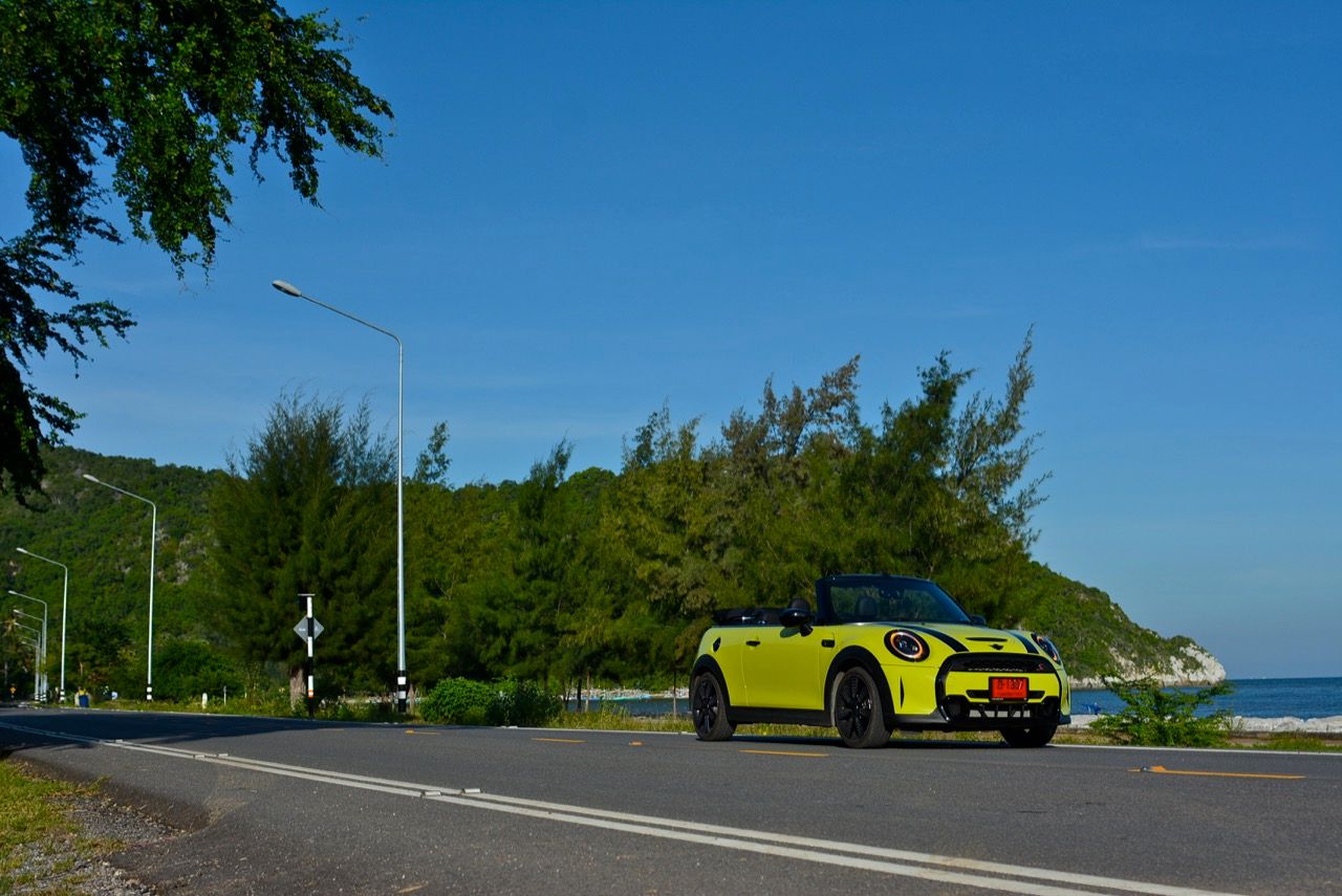 MINI Cooper S LCI Convertible เป็นรถเปิดหลังคาสำหรับคนที่ชอบการขับแบบกินลมชมวิว ซึ่งในบางครั้งไม่จำเป็นต้องใช้ความเร็ว แม้จะไม่ได้มีแรงบิดมากเหมือน MINI Cooper JCW รุ่นสูงสุดที่มีราคาแพงกว่า แต่เจ้าของรถสามารถอัดมันได้ทุกเมื่อเท่าที่ต้องการ ฐานล้อที่สั้นกว่ารถปกติทำให้ไม่ควรขับแบบกระชากพวงมาลัยเพื่อเปลี่ยนทิศทางเร็วๆ ในย่านความเร็วสูง ม้าทั้ง 192 ตัวที่ถูกปล่อยลงพื้นบนล้อคู่หน้ากลายเป็นเสน่ห์ของ MINI เกือบทุกรุ่น (ยกเว้น Countryman All4) แต่ไม่เหมาะกับคนที่ชอบขับแบบกระแทกกระทั้น ช่วงล่างเซตมานุ่มดี ทำให้วิ่งทางยาวๆ แบบสบายเนื้อสบายตัว เบาะหนังสีเทาดำ เย็บสลับกับหนังแท้และไมโครไฟเบอร์ นั่งสบายใช้ได้ การเดินผ่าน MINI Cooper S Convertible ตอนพับหลังคาเก็บริมชายหาดจะทำให้คุณจ้องมองมันนานเหมือนโดนสะกด เป็นรถที่ดึงดูดสายตาที่มาพร้อมกับรอยยิ้มของผู้คนที่ได้พบเห็น ยอมรับว่า MINI ภายใต้การดูแลของ BMW Group นั้นขับได้ดีขึ้นมาก เป็นเหมือนของดีที่ลองได้สัมผัสแล้ว น่าจะทำให้ติดอกติดใจกันแทบทุกคน คุณจะลืมพื้นที่อันคับแคบของเบาะหลังที่ออกแบบมาสำหรับหมาชิวาวา MINI ทุกรุ่นในปัจจุบันนั้นมีรูปลักษณ์ที่เปลี่ยนไปมาก เมื่อเทียบกับขนาดอันกะทัดรัดของ MINI คันต้นฉบับจากอังกฤษ เมื่อมาอยู่กับพวกเยอรมันอย่าง BMW รถ MINI ใหม่ จะมีสไตล์ที่แตกต่าง บวกกับความรู้สึกหลังพวงมาลัย และอานุภาพของแชสซี กับมนต์ขลังของฟีลลิ่งสไตล์โคคาร์ท ทำให้มันเป็นรถเล็กราคาแพงที่ยังคงขายได้เหมือนเดิม