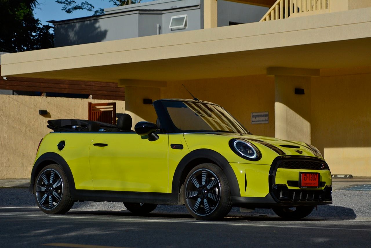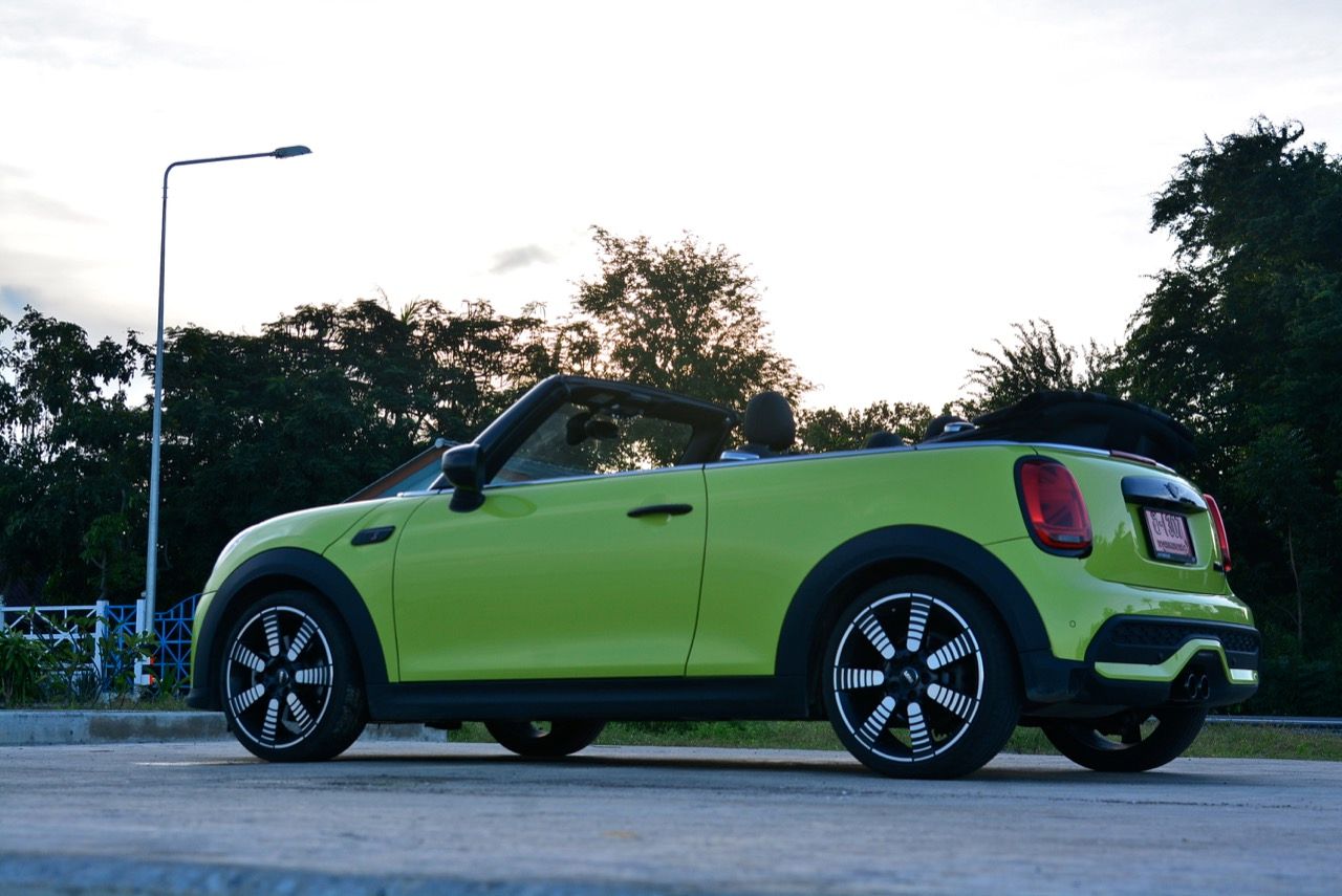 MINI รุ่นใหม่ ภายใต้การบริหารของ BMW มีพื้นที่ใช้สอยมากขึ้น ใช้งานได้สะดวกมากกว่าเดิม รูปแบบที่มีความทันสมัยเชื่อมโยงกับความคลาสสิกในอดีต กับความบันเทิงหลังพวงมาลัย เข้าถึงใจลูกค้าไฮโซได้ดี รุ่นขายดีอย่าง Countryman 5 ประตู กับ Cooper S รุ่น 3 ประตู ก็ยังเป็นรถ MINI อีกรุ่นที่เป็นตัวขายหลักของแบรนด์ หลังจากที่ผมเคยลองขับทั้ง Cooper D /Cooper S 3 Door / Cooper SD 5 Door / Cooper JCW และ Cooper SE หลังจากการปรับโฉมครั้งใหญ่ ในรูปแบบ LCI ทาง MINI Thailand ส่งรถ MINI รุ่นเปิดประทุน Cooper S Convertible LCI 2021 มาให้ทดสอบ นี่คือรถเล็กสามประตูที่ใช้หลังคาผ้าใบทำงานด้วยระบบไฟฟ้าเพื่อพับเก็บหรือกางออกเพื่อปิดคลุมส่วนบน เป็น MINI เปิดหลังคาที่เปิดตัวในงานโตเกียวมอเตอร์โชว์ เมื่อปี ค.ศ.2014 และมีการปรับโฉมอย่างต่อเนื่องจนมาถึงเวอร์ชัน LCI (ครั้งที่สอง) ในช่วงต้นปีนี้ MINI Cooper S Convertible LCI คือ MINI Hatch แบบเปิดหลังคาที่มีหลังคาผ้าใบแบบพับเก็บได้ ทำงานด้วยกลไกไฟฟ้า รูปแบบของตัวถังยังคงเหมือนกับ Cooper S F56 LCI รุ่นหลังคาแข็งทุกประการ สิ่งที่สร้างความแตกต่างก็คือ หลังคาที่พับเก็บเมื่อไหร่มันจะดูดีกว่ารุ่น 3 ประตู พร้อมบรรยากาศของการขับแบบไร้หลังคาและสไตล์โกคาร์ทที่ให้อารมณ์สนุกสนาน หลังคาผ้าสีดำคาดลายธงอังกฤษดูแลรักษายากอยู่เหมือนกัน ต้องคอยทำความสะอาดบ่อยครั้ง เวลาจอดนานๆ ถ้าไม่คลุมผ้าเอาไว้ ฝุ่นก็จะเกาะกับผ้าใบหลังคาทำให้ต้องประคบประหงมกันมากกว่ารุ่นหลังคาแข็ง ผ้าบนหลังคาดูจะเป็นที่ชื่นชอบของน้องแมวด้านการใช้งานเป็นอุปกรณ์ในการลับเล็บ
