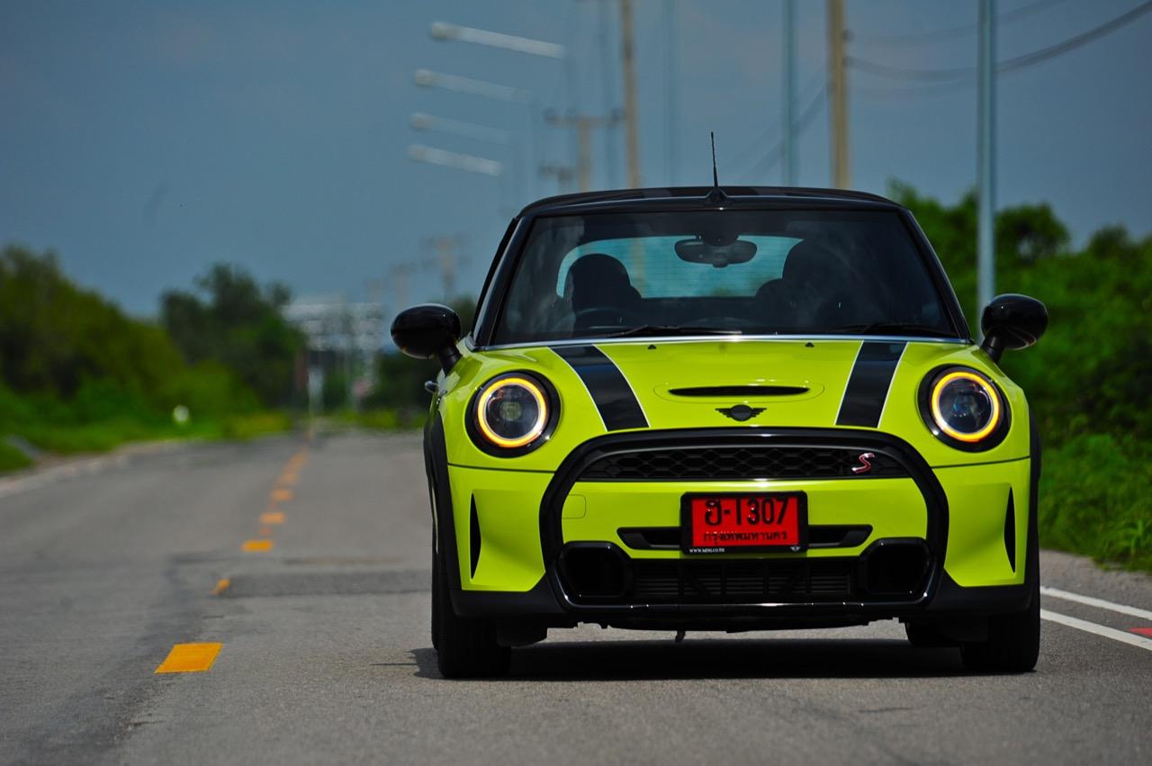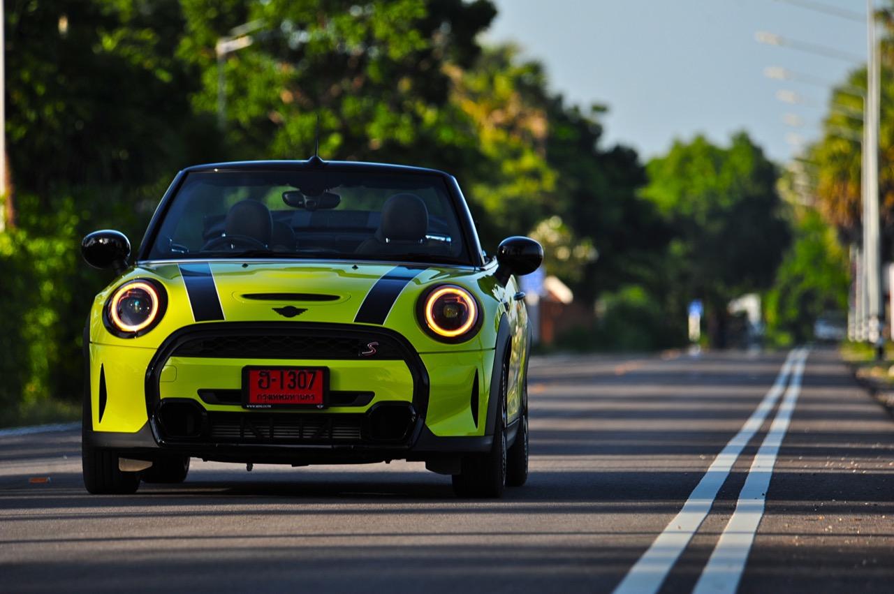 การเปลี่ยนแปลงครั้งใหญ่ในเวอร์ชัน LCI แสดงออกถึงความพยายามในการบ่งบอกผู้คนทั่วไปว่ามันคือรถเล็กของอังกฤษที่พัฒนาโดยเยอรมัน ไม่ว่าจะย่องอยู่ในเมืองหรือโลดแล่นเต็มฝีเท้าในการขับทางไกล ทุกครั้งที่ขับ MINI หมายถึงการผญจภัยที่สนุกสนาน ไม่ว่าคุณจะขับมันไปช็อปปิ้งในเมืองหรือเอาออกมาเปิดหลังคารับลมเย็นๆ ในช่วงฤดูหนาวที่ไม่มีอยู่จริงในประเทศไทย รุ่น Convertible ที่เอาไว้ขับกินลมชมวิวในวันหยุดตามภูเขาหรือชายทะเลก็ถือว่าเป็นรถที่เหมาะทั้งนั้น การเลือกซื้อรถเล็กราคาแพงจากแบรนด์ MINI หมายถึงการเลือกของเล่นที่ถูกใจในวัยเด็ก และของเล่นที่ถูกใจนั้นส่วนใหญ่มีราคาที่ไม่ถูก! ผมอยู่กับ Cooper S LCI รุ่นเปิดประทุน Convertible ยาว 8 วัน ท่ามกลางการประกาศเข้าสู่ฤดูหนาวของกรมอุตุในช่วงปลายเดือนพฤศจิกายน อุณหภูมิของประเทศไทยลดต่ำเล็กน้อยพอได้ไอเย็นในตอนเช้าเพื่อการขับแบบเปิดหลังคาที่เป็นจุดเด่นของรถรุ่นเปิดประทุน