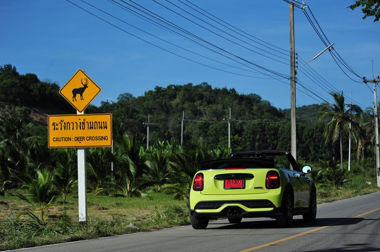 ขับออกทางไกล MINI Cooper S LCI Converetible วิ่งได้เนียนขึ้น พร้อมความปราดเปรียวของระบบส่งกำลัง และระบบรองรับที่โดนใจคนสูงวัย จากฝีไม้ลายมือของวิศวกรที่สร้างรถ BMW บุคลิกภาพของรถมีความเป็นผู้ใหญ่ขึ้น แต่ยังคงให้ความสนุกในการขับ กับสไตล์แบบรถเล็กที่รักความโลดโผน เครื่อง 2 ลิตร MINI TwinPower Turbo ในรอบกลางๆ ผลักดันเจ้า Cooper S ไร้หลังคา ให้พุ่งลิ่วๆ ไปตามทางลาดยางแถบอุทยานปราณบุรี แรงยึดเกาะที่ปรับมาใหม่ออกแนวนุ่มหนึบและมีความกระด้างน้อยลงไปมาก เหมาะสมกับแรงบิด 280 นิวตันเมตร ทำให้คุณควบคุมมันได้ง่ายราวกับกำลังควบ Suzuki Swift ที่มีกำลังเฉียดๆ 200 แรงม้า พร้อมพวงมาลัยไฟฟ้าเซอร์โววาว์ลที่แปรผันน้ำหนักไปตามโหมดการขับ เร่ิมด้วย Green Mode หรือโหมดประหยัด Mid Mode หรือโหมดมาตรฐาน และ Sport Mode หรือโหมดซ่า ที่ต้องการทางโล่งๆ ในการปล่อยม้าทั้ง 192 ตัวลงสู่พื้นถนน