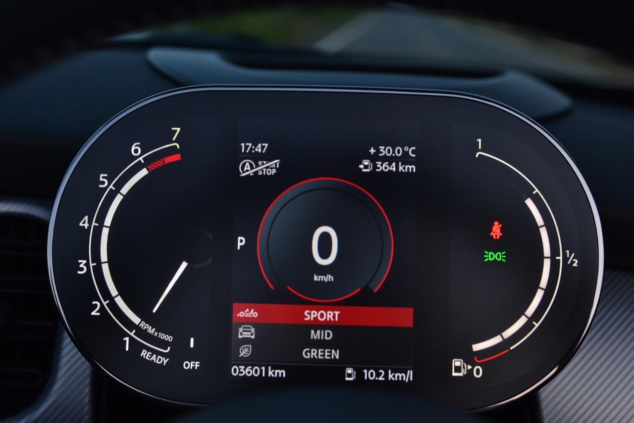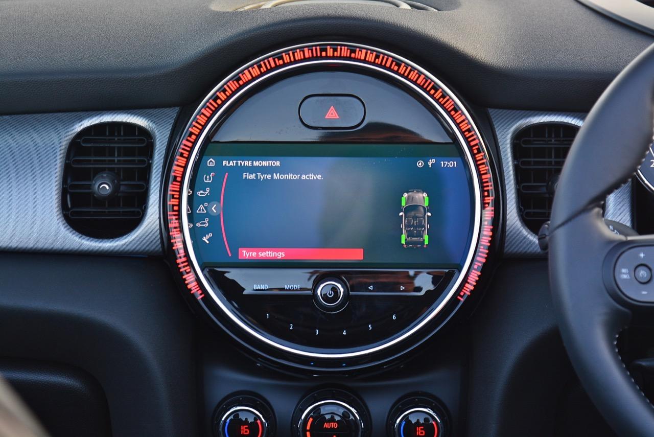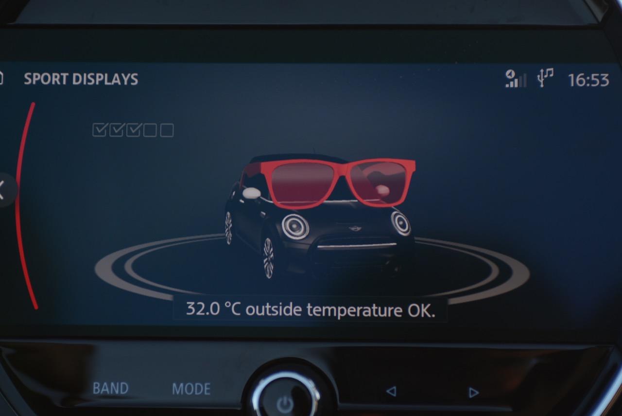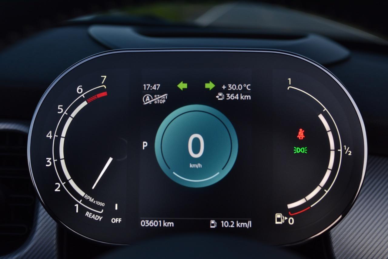มาตรวัดความเร็วและวัดรอบแบบใหม่ อ่านค่าได้ง่าย การปรับปรุงในตำแหน่งของช่องบอกปริมาณเชื้อเพลิงมีความชัดเจนมากกว่าเดิม จอแสดงผลกลาง สั่งงานด้วยการควบคุมผ่านแป้น controller หรือใช้นิ้วแตะที่หน้าจอเพื่อสั่งงานในระบบสัมผัส หน้าจอล้อมกรอบด้วยหลอด LED ในรูปแบบที่ถูกเติมเต็มด้วยสีสันเร้าใจ จอแสดงผลกลางพร้อมด้วยกราฟิกแบบใหม่ ใช้แสงจากหลอด LED ทำหน้าที่บอกสถานะการทำงานของเครื่องยนต์และการปรับตั้งต่างๆ ด้วยสัญลักษณ์แสงสีต่างๆ จอภาพตรงกลางยังเป็นมอนิเตอร์ของกล้องมองหลัง พร้อมเซนเซอร์ที่ใช้ในการกะระยะถอยหลัง คอยส่งสัญญาณเสียงแจ้งเตือนคนขับเมื่อถอยเข้าใกล้กับวัตถุกีดขวาง สำหรับหน้าจอแสดงผลส่วนกลางที่เป็นเอกลักษณ์ของ MINI ยังได้รับการออกแบบให้เจ้าของรถสามารถเลือกการแสดงผลในฟังก์ชั่นต่างๆ ได้อย่างหลากหลาย เป็นของเล่นที่ออกแบบให้ใช้งานได้ง่ายๆ โดย MINI Cooper S Convertible มาพร้อมหน้าจอสีสั่งงานด้วยระบบสัมผัสขนาด 8.8 นิ้ว แสดงผลที่เกี่ยวกับฟังก์ชั่นกับสภาวะการปรับตั้งระบบต่างๆ ของรถ สาระความบันเทิง และการเชื่อมต่อ MINI Connected สำหรับฟังก์ชั่นดังกล่าวมีระบบควบคุม MINI Touch Controller ที่ทำงานโดยใช้ระบบสัมผัสปลายนิ้วลงไปบนแป้นควบคุม เพื่อให้ผู้ขับขี่สามารถป้อนข้อมูลได้จากการเขียนด้วยนิ้วมือลงบนปุ่ม Controller ได้โดยตรง ในตำแหน่งของ MINI Touch Controller กราฟิกที่สวยงามของฟังก์ชั่นต่างๆ ช่วยเพิ่มความน่าใช้ขึ้นมาอีกนิด