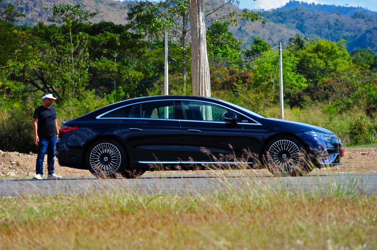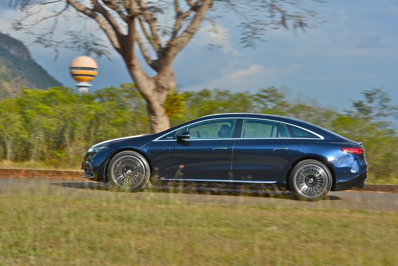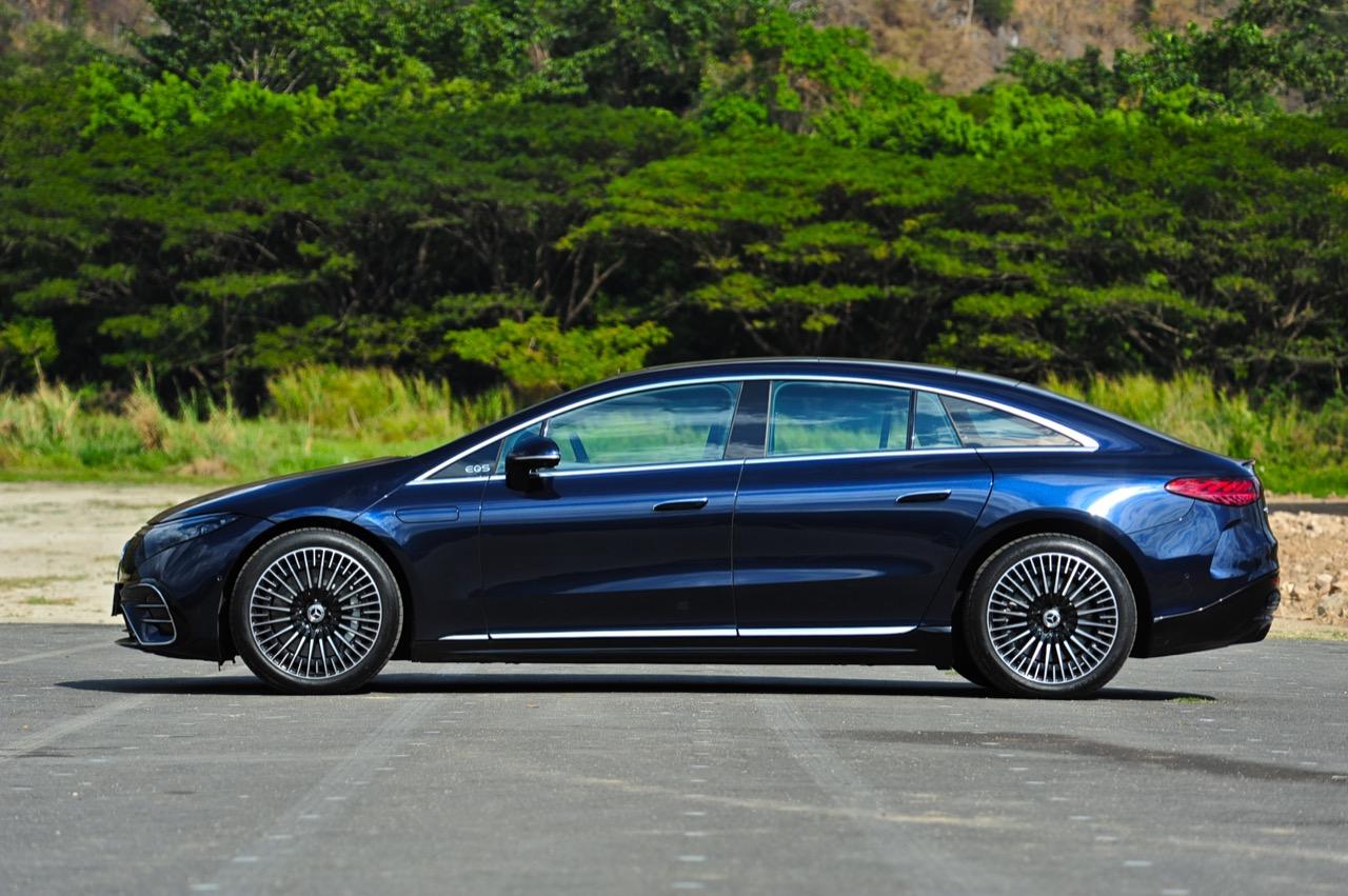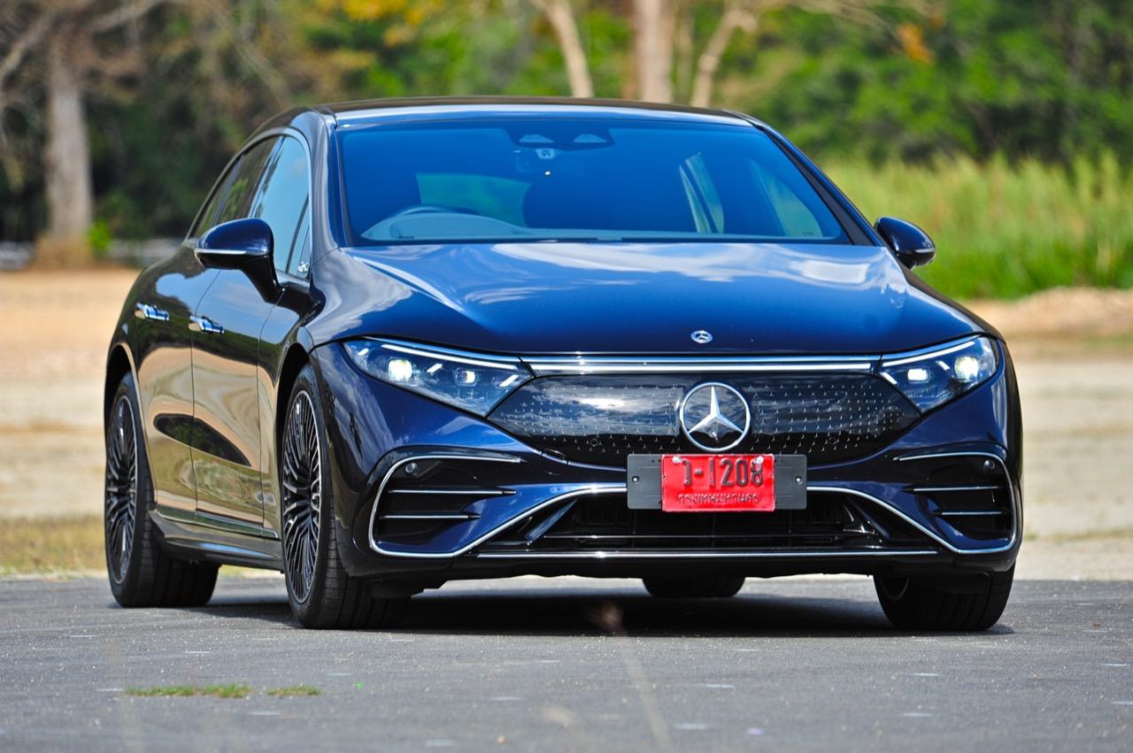 เหตุผลใหญ่ที่ทำให้ EQS มีระยะทำการที่ไกลขนาดนี้ เป็นเพราะหลักแอร์โรไดนามิกส์ท่ีถูกต้อง มันลื่นไหลมากเป็นพิเศษ มีค่าสัมประสิทธิ์แรงเสียดทานอากาศต่ำสุดๆ และน่าจะต่ำที่สุดในโลกด้วยซ้ำ คนที่ชอบรูปลักษณ์ของ EQS อย่างแท้จริงก็คือ คนที่กำลังเปลี่ยนจากรถเครื่องสันดาปไปเป็นมอเตอร์ไฟฟ้า สไตล์ที่โฉบเฉี่ยวบนเรือนร่างที่พลิ้วไหว EQS มีรายละเอียดเจ๋งๆ อยู่เต็มไปหมด เช่น 'กระจังหน้า' ลายดาวและไฟท้าย LED รูปทรงเกลียว สีน้ำเงินเข้มไม่ใช่สีที่ดีที่สุดสำหรับ EQS อย่างแน่นอน และชุดแต่ง AMG Line ก็ทำให้มันดูเอาจริงเอาจังมากกว่าเดิม ช่องรับอากาศขนาดใหญ่ในชุดกันชน AMG แนวหลังคาที่โค้งลงไปยังส่วนท้ายอย่างสวยงาม โดยภาพรวม EQS ทำให้นึกถึงรถต้นแบบในช่วงปี 2000