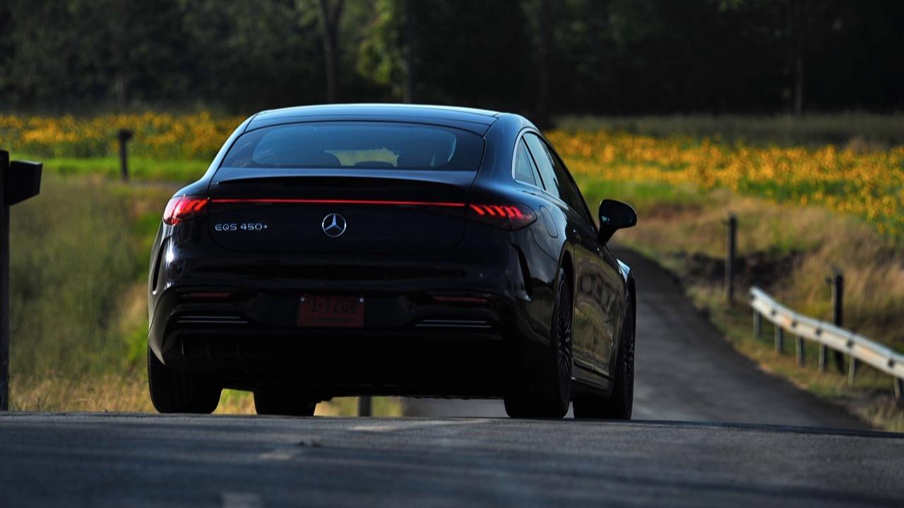 EQS450 Plus มีมอเตอร์ไฟฟ้าตัวเดียวที่เพลาล้อหลัง ให้กำลัง 329 แรงม้าและแรงบิด 417 ปอนด์-ฟุต หรือ 565 นิวตันเมตร และเหมือนกับ ยานยนต์ EV ทั่วไป มันมีระบบส่งกำลังแบบ single speed transmission อัตราเร่ง 0 ถึง 100 กิโลเมตรต่อชั่วโมงใน 6.2 วินาที EQS450+ ไม่มีการเร่งความเร็วแบบทะลุมิติของ Porsche Taycan Audi RS GT e-Tron Tesla Model X หรือแม้แต่ Volvo Polestar 2 แต่แรงบิดที่เพิ่มขึ้นอย่างรวดเร็วนั้นน่าพอใจและเหมาะสมกับขนาดและน้ำหนักของรถ เป็นรถคันใหญ่ตัวหนักที่ควบคุมได้ง่าย นอกจากนี้ยังมี 'ซาวด์สเคป' สองแบบที่แตกต่างกัน ซึ่งส่งเสียงผ่านลำโพงออกมาเพื่อสร้างความเร้าใจ วิศวกรของ Mercedes-Benz ไม่ได้พยายามเลียนแบบเสียงเครื่องยนต์สันดาปภายใน โดยใช้เสียงที่ทำให้ผมนึกถึงยานรบของพวกจักรวรรดิ์ในหนัง Starwar