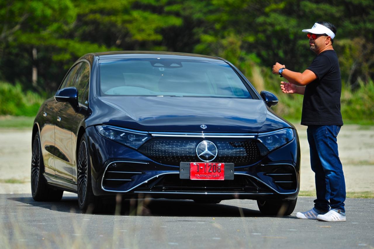 EQS 450+ AMG Line กับสมรรถนะในการขับทางไกล เป็นยานยนต์ไฟฟ้าที่ผมหรือคุณก็สามารถขับมันจากกรุงเทพไปยังหัวหินหรือเขาใหญ่กับครอบครัวพร้อมสัมภาระเต็มคันในช่วงสุดสัปดาห์และกลับมาได้โดยสวัสดิภาพแบบไม่ต้องแวะชาร์จ!! แม้ว่าคุณจะต้องใช้ความเร็วไม่เกิน 90 กิโลเมตรต่อชั่วโมงเพื่อรักษาระดับของพลังไฟในแบตฯก็ตาม การวิ่งทางไกลในรถไฟฟ้าประสิทธิภาพสูงด้วยความเร็วต่ำแม้จะน่าเบื่อแต่ก็มีความปลอดภัยและถูกต้องตามกฏหมายควบคุมความเร็ว! แน่ใจได้เลยว่า เจ้าของใหม่ใน EQS เป็นพวกเท้าหนักแทบจะทุกคน Mercedes-Benz EQS ใหม่ ประสบความสำเร็จอย่างน่าทึ่งในการวิ่งระยะไกล ด้วยแบตเตอรี่ขนาดใหญ่ความจุ 108kWh ซึ่งทำให้รถรุ่นนี้มีน้ำหนักตัวพุ่งสูงถึง 2.5 ตัน คนของแบรนด์ตราดาวกล่าวว่า คุณสามารถชาร์จแบตเตอรี่ได้ตั้งแต่ 10 ถึง 80 เปอร์เซ็นต์ ในระยะเวลาเพียงแค่ 31 นาที เท่านั้น ด้วยเครื่องชาร์จเร็ว 200kW แต่ถ้าคุณชาร์จผ่านไฟบ้านตรงๆโดยไม่ผ่านเครื่องชาร์จเร็ว DC หรือแม้แต่ Wall Box คุณจะต้องใช้เวลาชาร์จถึง 36 ชั่วโมงกว่าจะประจุพลังงานไฟฟ้าจนเต็ม เนื่องจากความใหญ่และความจุของแบตเตอรี่รุ่นใหม่นั่นเอง การชาร์จด้วยไฟ 125kW รอนานนิดนึงประมาณ 1 ชั่วโมงก็จะได้ไฟ 80% มาทำระยะทางได้อีก 600 กิโลเมตร