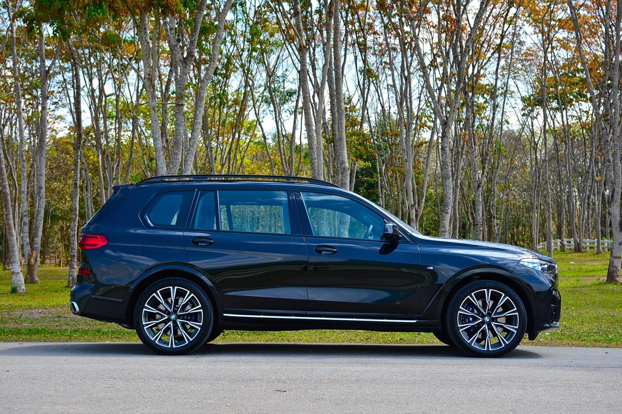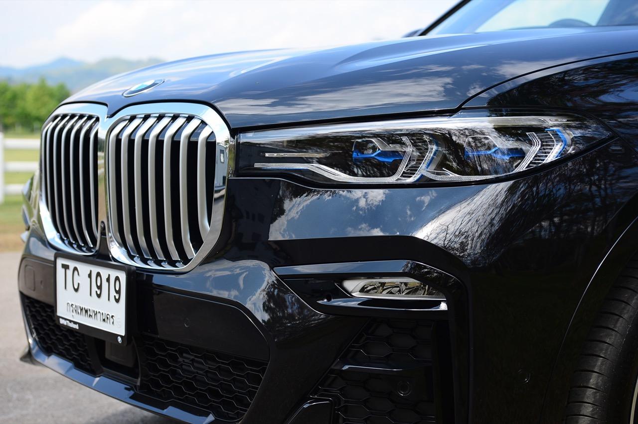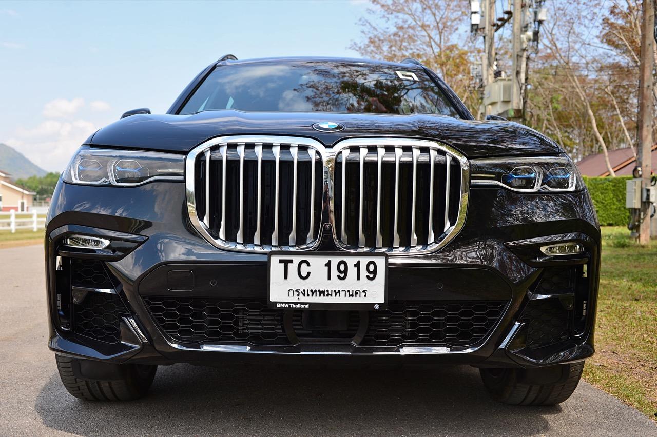 X7 รักษาความสง่างามของยานยนต์ชั้นสูงจาก BMW เอาไว้ทุกกระเบียดนิ้ว ด้วยรูปลักษณ์ที่แปลกตา กระจังหน้าใหญ่สุดๆ แต่ก็ดูเข้ากับขนาดความกว้างที่มากถึง 2,000 มิลลิเมตร มันจะทำให้คุณหลงใหลได้ปลื้มไปกับรายการออปชั่นที่จัดโดย BMW Thailand เจ้า X7 รุ่นนี้ ขับดีทุกโหมด โดยเฉพาะ Sport Mode ที่รถจะมีแรงบิดให้ใช้อย่างสาแก่ใจ เหมาะกับการกระชากร่างหนัก 2.5 ตัน ทะยานขึ้นเนินชันว่องไวราวกับรถคันเล็ก! นับเป็น SUV หรูหราที่ขับได้อย่างสนุกสนาน มีไดนามิกที่เป็นเอกลักษณ์ของแบรนด์ แตกต่างจากคู่แข่งอย่าง GLS ซึ่งเป็นรถใหญ่ที่เน้นความสบายมากกว่าจะมุ่งไปในด้านความสปอร์ต โปรดจำไว้ว่า การซื้อรถยนต์ราคาแพงอย่าง X7 ที่มีขนาดและราคาสูสีกับ GLS350d ถ้าคุณไม่ได้ต้องการรถที่มีถึงเจ็ดที่นั่ง ก็ยังมี X5 xDRIVE 45e M Sport ที่ถูกและคล่องตัวมากกว่า มันดูจะเป็นการจ่ายที่สมเหตุสมผล การถอยเจ้ายักษ์เอสเอวีแม้จะดูดี แต่มันใหญ่จนทำให้ครอบครัวที่ไม่มีลูกเด็กเล็กแดงรู้สึกเหงาเวลาขับเลยล่ะครับ.