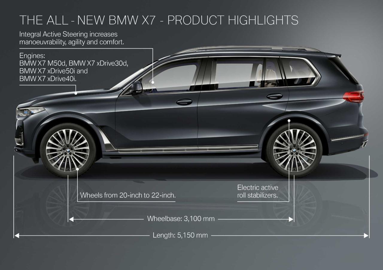 X7 xDrive 40d M Sport อยู่ในเซกเมนต์รถอเนกประสงค์ขนาดใหญ่ (SAV) ของ BMW เข้ามาแทนที่ X7 รุ่น M50d ที่มีระบบอัดอากาศเทอร์โบถึงสี่ตำแหน่ง ทำให้เครื่องยนต์รุ่น M50d ของ X7 เป็นเครื่องยนต์ดีเซลที่มีเทคโนโลยีซับซ้อนและมีต้นทุนในการผลิตต่อเครื่องสูงมากจนเกินไป การเผยโฉม X7 รุ่นประกอบในประเทศ ที่มาพร้อมเครื่องยนต์ดีเซลรุ่นใหม่ ผสมผสานระบบ Mild Hybrid 48V แยกระบบไฟออกจากแบตเตอรี่ขนาด 12V เพื่อปรับให้ปั๊มน้ำ คอมเพรสเซอร์แอร์ และระบบ Auto Start/Stop ทำงานด้วยความเสถียรโดยไม่ต้องพึ่งพากระแสไฟฟ้าจากแบตเตอรี่ 12 โวลต์ สำหรับสมาชิกรุ่นใหญ่ที่สุดในตระกูล X มีการปรับปรุงระบบส่งกำลังและช่วงล่างใหม่หมด เพิ่มความคล่องตัว แรงบิดมหาศาล และความสะดวกสบาย จากพื้นที่ขนาดใหญ่ของห้องโดยสาร