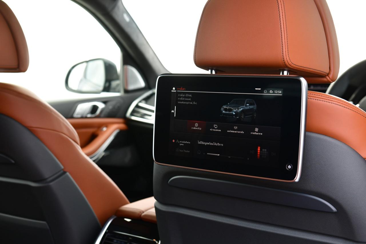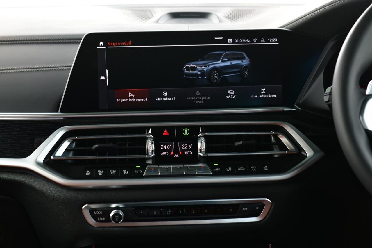 ระบบสาระบันเทิง iDrive OS7 ของ BMW X7 มาพร้อมกับเวอร์ชันที่ล้ำหน้าที่สุดยกเว้น OS8 ที่อยู่ใน iX ในการนำทางคุ้นเคยกับรายละเอียดบนแผนที่อิเล็กทรอนิกส์ ประกอบด้วยตัวควบคุมแบบแป้นหมุน iDRIVE ที่ใช้งานได้ง่ายและเร็วกว่าการสัมผัสที่หน้าจอภาพ ปุ่ม iDRIVE ทำให้ไม่เสียสมาธิของการควบคุม พร้อมปุ่มลัดเมนูระหว่างที่นั่งด้านหน้า และหน้าจอขนาด 12 นิ้ว ซึ่งสามารถควบคุมได้โดยใช้ตัวควบคุมผ่านการสัมผัสหรือสั่งงานด้วยเสียง มาตรฐานที่ดีงามของ X7 อีกอย่าง ซึ่งเหมือนกับ Series-7 LCI ก็คือ หน้าจอขนาด 12 นิ้ว ด้านหลังของเบาะผู้โดยสารตอนหน้า ซึ่งทำหน้าที่ควบคุมอุปกรณ์ของผู้ขับ จอภาพคล้ายกับ BMW Series-7 G12 745Le M Sport ออกแบบจอภาพให้มีความชัดเจน คมชัด และสามารถกำหนดค่าได้แสดงข้อมูลที่ต้องการอย่างรวดเร็ว เช่น ตัวเลขความเร็ว อัตราสิ้นเปลืองเชื้อเพลิง ข้อมูลการนำทาง วิทยุหรือสื่อที่เลือก เช่น Bluetooth, วิทยุ DAB เชื่อมต่อสมาร์ทโฟน Apple CarPlay แม้ว่าจะไม่มี Android Auto โดยรวมแล้วใช้งานได้ง่ายกว่า Audi, Mercedes หรือแม้แต่ของแพงอย่าง Range Rover