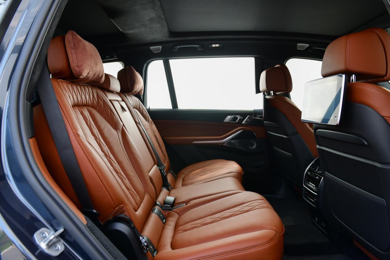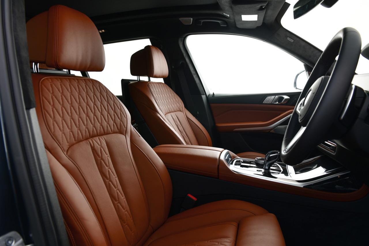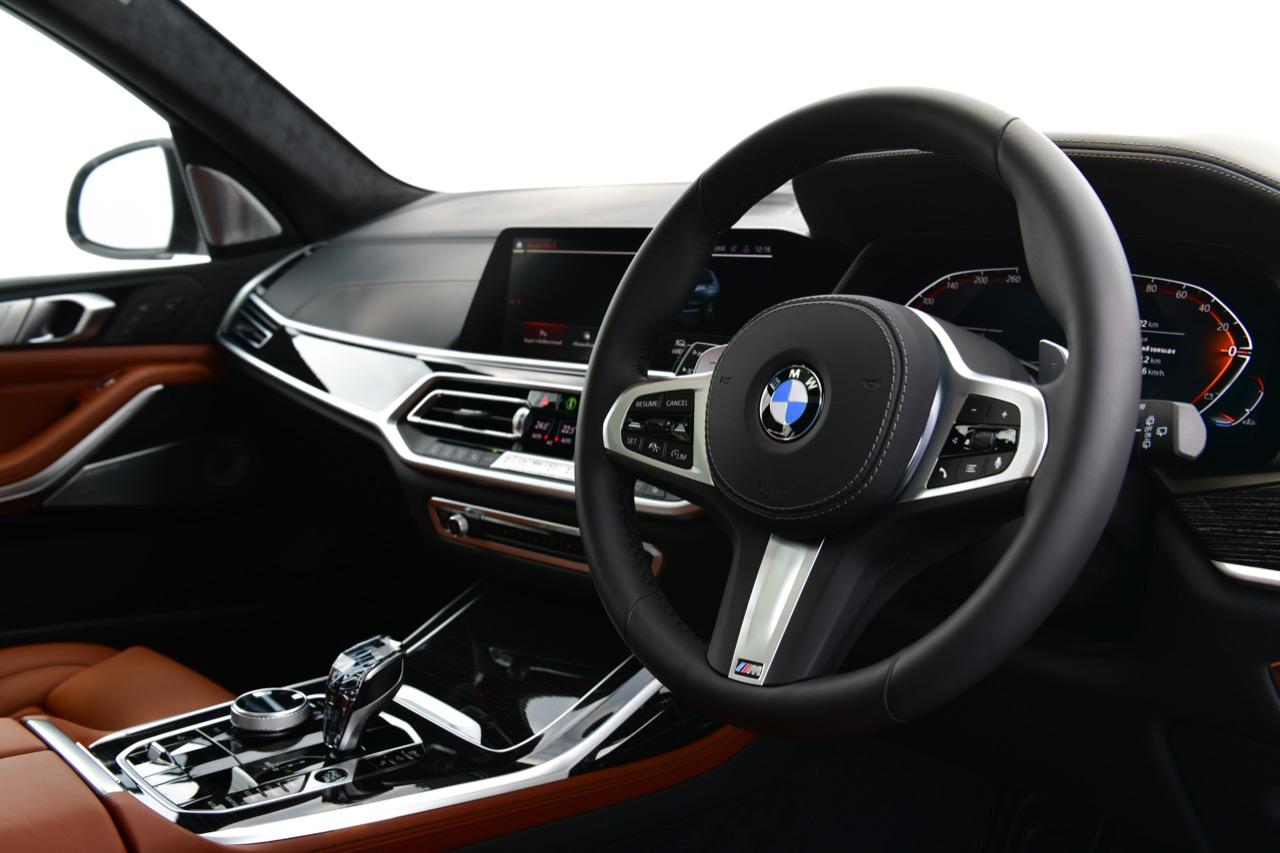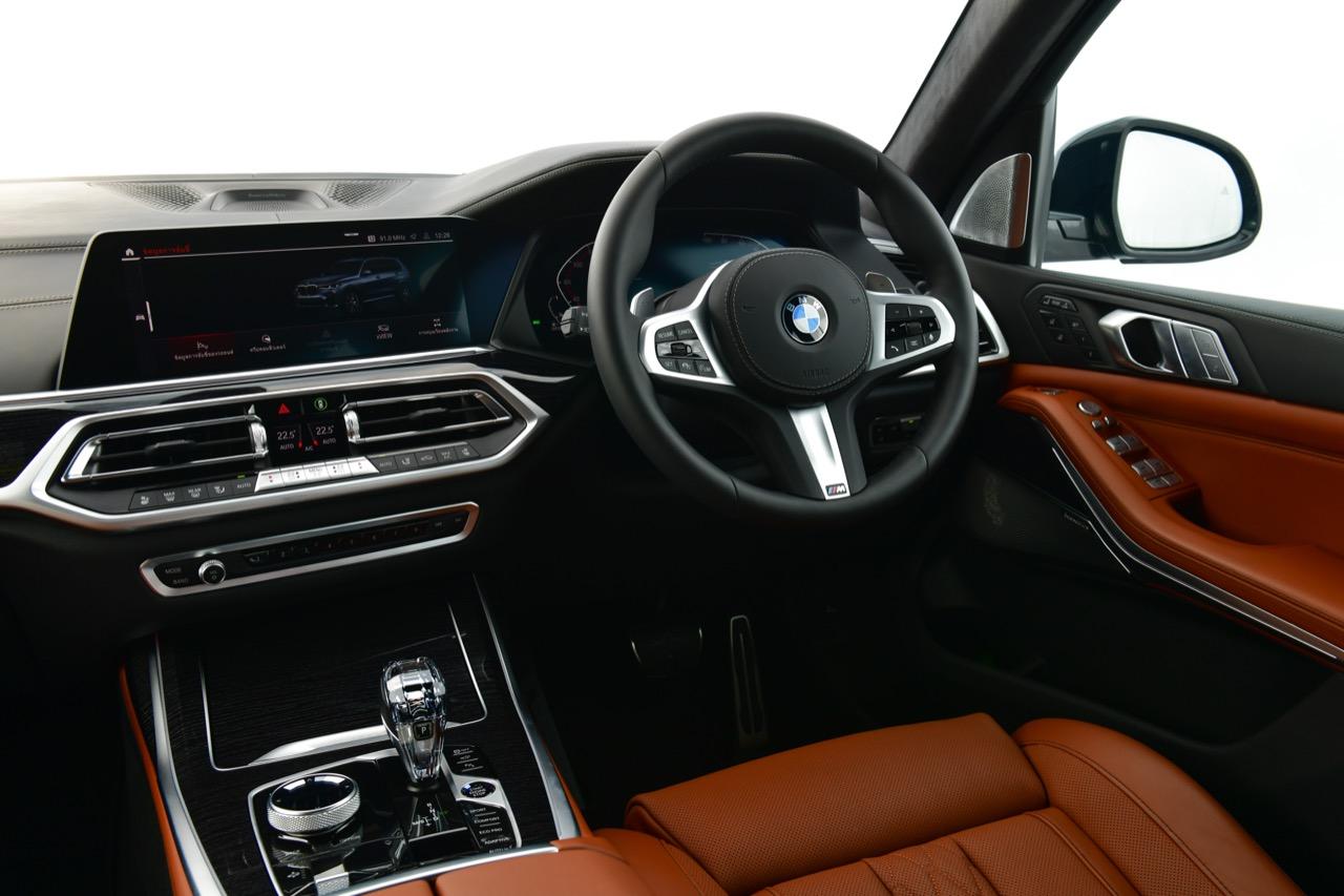 ภายในสิ่งต่างๆ ถูกตกแต่งให้หรูหรามากกว่า X5 วัสดุพวกหนัง ผ้าสังเคราะห์ ไวนิลเกรดสูง อะลูมิเนียมและคริสตัล มีคุณภาพสูงมาก คุณจะพบกับพื้นผิวเปียโนแบล็ก หนัง และโลหะมากมายที่ประดับประดาอยู่ทั่วทั้งคัน ในขณะที่การเพิ่มตัวเลือกหนังเมอริโนแบบเต็ม (ราคาแพง) จะทำให้หนังมีเฉดสีแนวทูโทน ท้ายที่สุด คุณจะต้องดิ้นรนเพื่อหาฟิล์มกันรอยขีดข่วนเพื่อปกป้องชิ้นส่วนภายในราคาแสนแพงของมัน