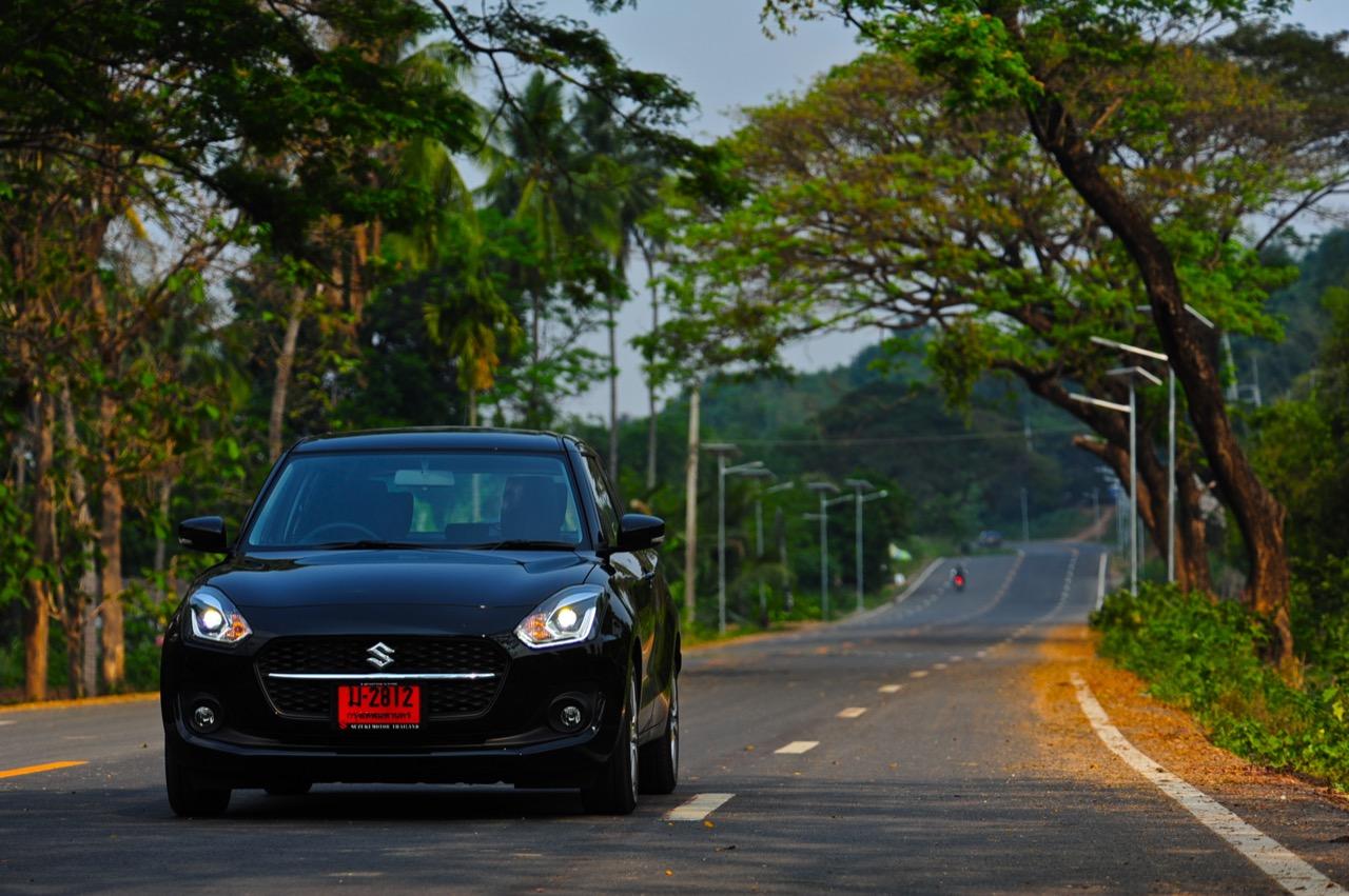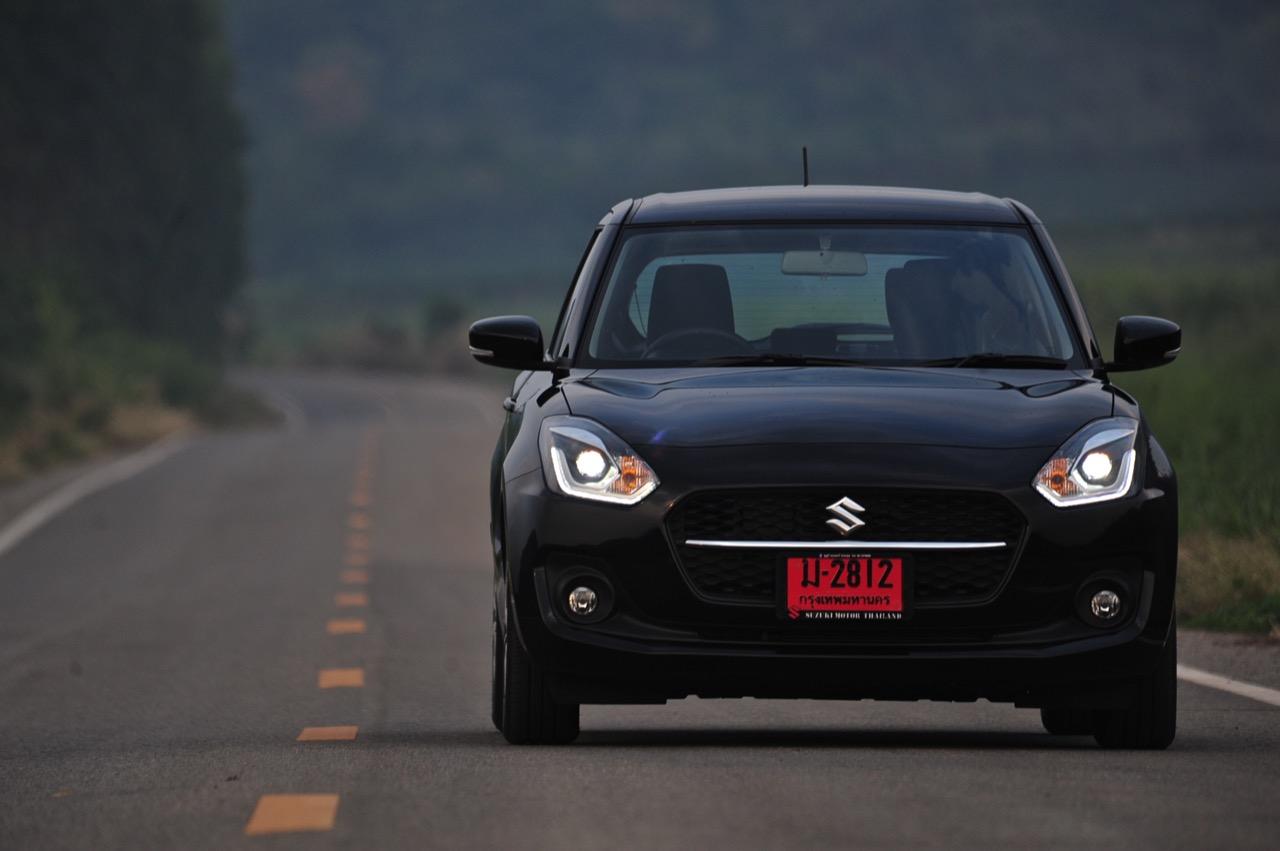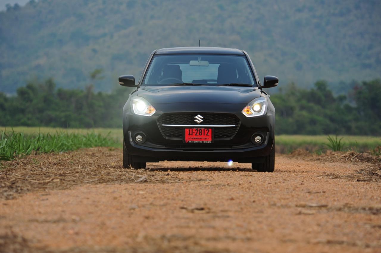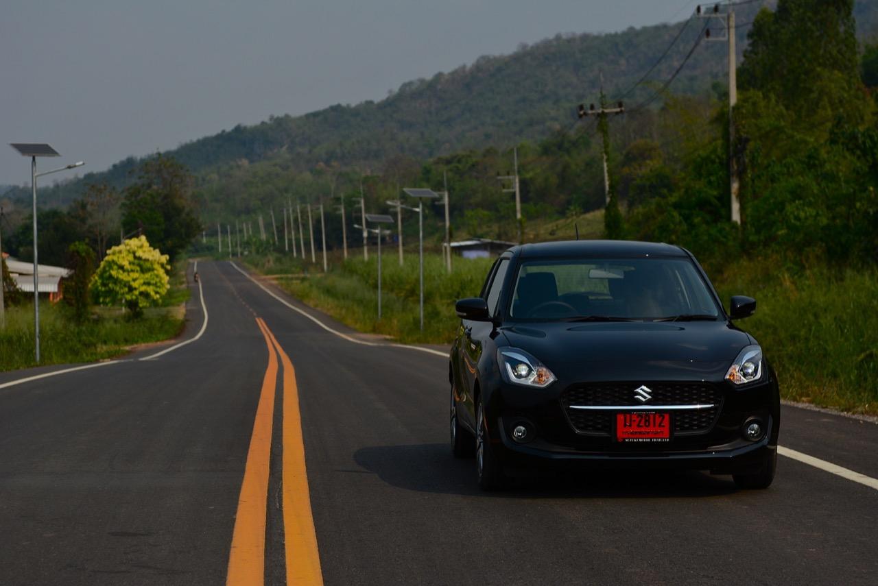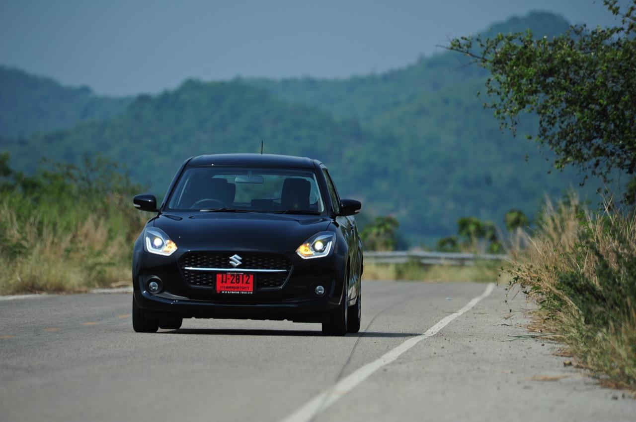 ออกทางไกล ลากไปทดสอบกันถึงอำเภอหนองปรือ ในจังหวัดกาญจนบุรี ระบบรองรับของ Swift หน้าเป็นแมคเฟอร์สัน สตรัท สปริง โช้คอัพและกันโคลง ส่วนช่วงล่างหลังเป็นแบบทอร์ชันบีมคานแข็ง การปรับเซตช่วงล่างให้ความรู้สึกดี กระชับและนิ่มนวลในเมือง ขับเร็วๆ ก็ยังเกาะถนน อาการร่อนหรือโคลงเมื่อหวดกันหนักๆน้อยจนทำให้มั่นใจแม้จะมีขนาดเล็ก ระยะยืดและยุบตัวที่มากไปนิดของโช้คอัพ ควรระวังรอยต่อพวกคอสะพานหรือที่กั้นถนนเพื่อลดความเร็ว ขับทางไกลช่วงล่างให้ความสบายตัว ซึมซับแรงสั่นสะเทือนได้ดีพอๆ กับ Mazda 2 1.3 ล้ออัลลอยขอบ 16 นิ้ว ยัดยาง 185/55R16 เป็นยางหน้าแคบที่เน้นลดอัตราสิ้นเปลือง เจ้าของบางคนอาจมองว่าเล็กเกินไป ชอบยางไซส์ 195 หรือ 205 มากกว่า เนื่องจากชอบการยึดเกาะแบบหนึบๆ เมื่อเปลี่ยนยางให้มีหน้าสัมผัสใหญ่ขึ้น การยึดเกาะกับผิวถนนก็จะเพิ่มขึ้น แต่แลกกลับด้วยอัตราสิ้นเปลืองที่ลดลง หรือพูดกันตรงๆ ก็คือมันจะกินน้ำมันมากขึ้นอีกนิด บางคนก็เอาไปใส่โช้คและสปริงที่มีคุณภาพดีกว่าของโรงงาน โดยพยายามรักษาขนาดของล้อเอาไว้ไม่ให้ใหญ่เกินไป ปรากฏว่าวิ่งในโค้งดีกว่าเดิมแต่ก็จะมีอาการกระด้างอยู่บ้าง เนื่องจากโช้คเดิม เซตค่ามากลางๆ ให้ขับเร็วได้มั่นใจและวิ่งนุ่มนวลพอได้