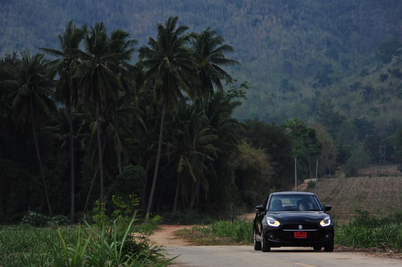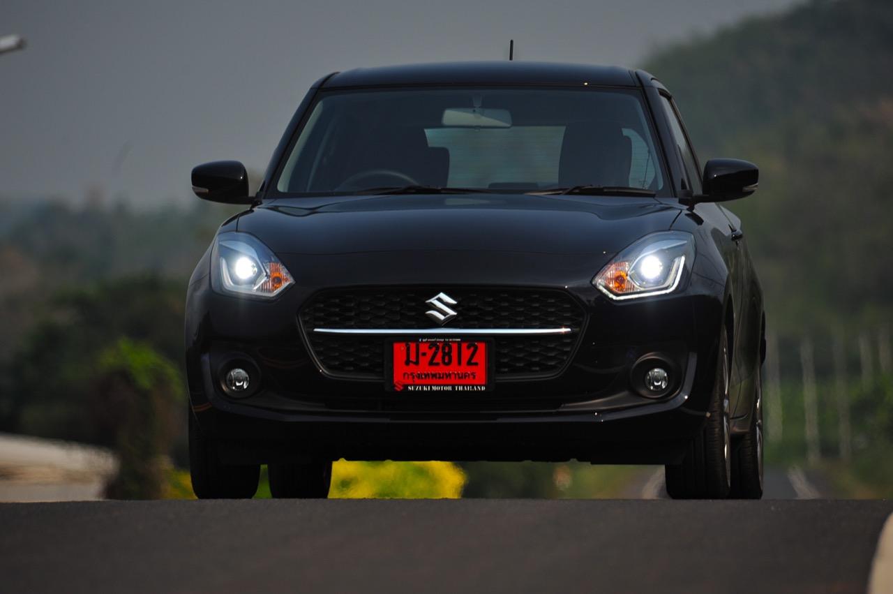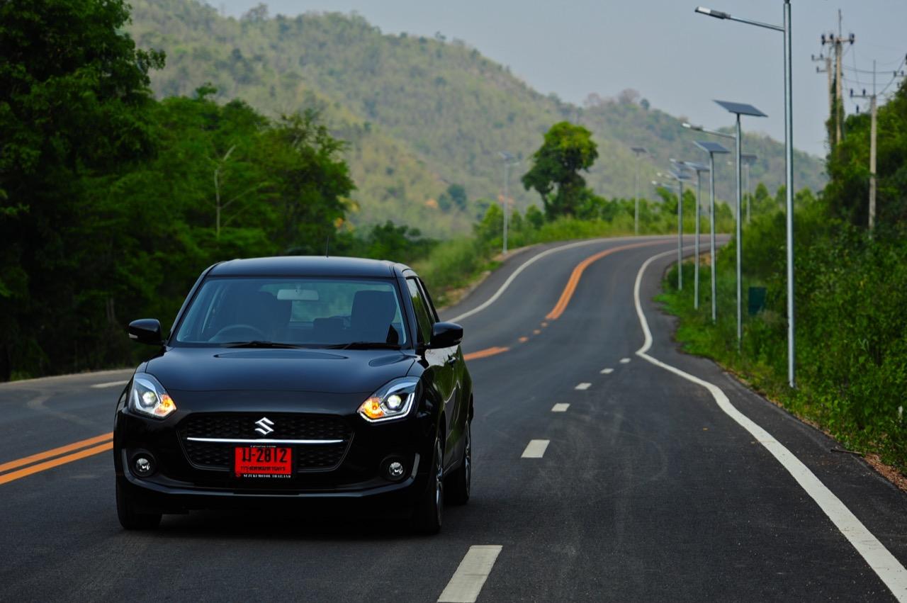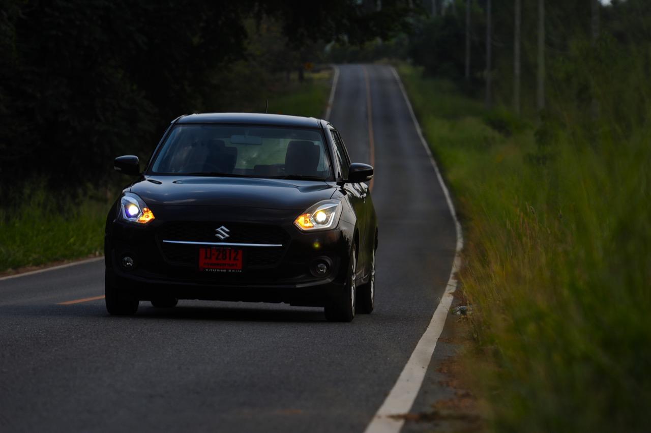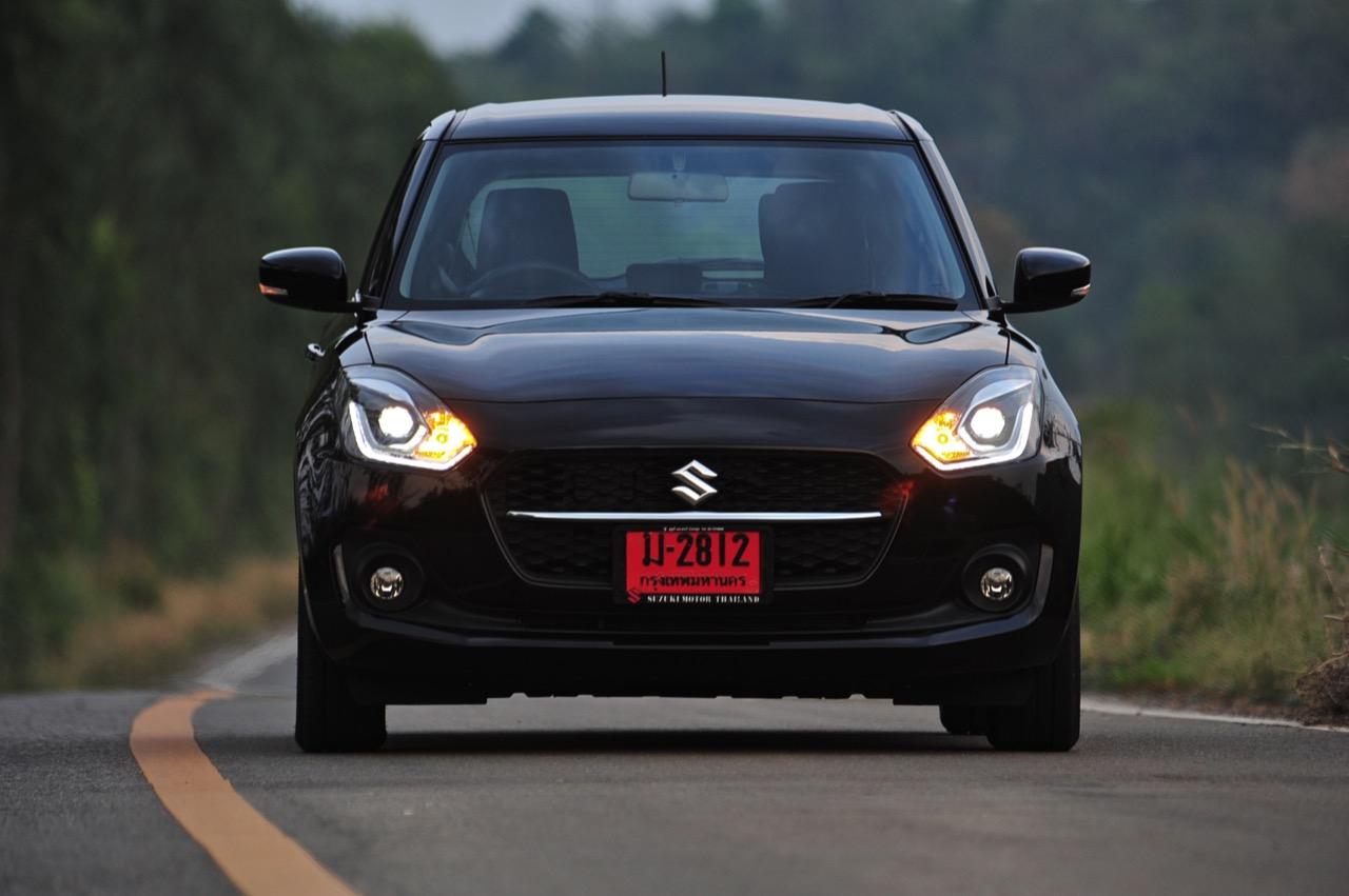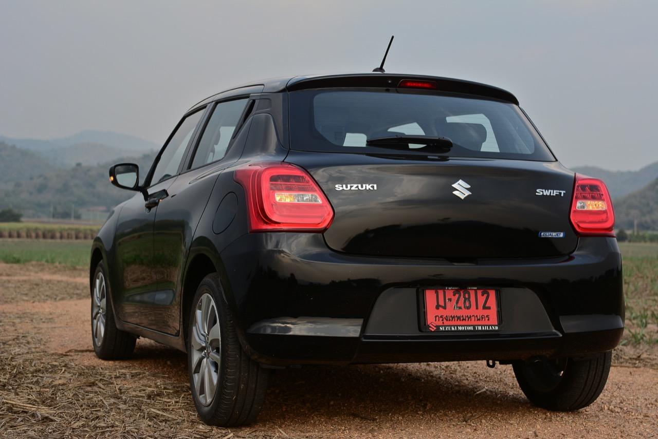 ออกทางไกล ลากไปทดสอบกันถึงอำเภอหนองปรือ ในจังหวัดกาญจนบุรี ระบบรองรับของ Swift หน้าเป็นแมคเฟอร์สัน สตรัท สปริง โช้คอัพและกันโคลง ส่วนช่วงล่างหลังเป็นแบบทอร์ชันบีมคานแข็ง การปรับเซตช่วงล่างให้ความรู้สึกดี กระชับและนิ่มนวลในเมือง ขับเร็วๆ ก็ยังเกาะถนน อาการร่อนหรือโคลงเมื่อหวดกันหนักๆน้อยจนทำให้มั่นใจแม้จะมีขนาดเล็ก ระยะยืดและยุบตัวที่มากไปนิดของโช้คอัพ ควรระวังรอยต่อพวกคอสะพานหรือที่กั้นถนนเพื่อลดความเร็ว ขับทางไกลช่วงล่างให้ความสบายตัว ซึมซับแรงสั่นสะเทือนได้ดีพอๆ กับ Mazda 2 1.3 ล้ออัลลอยขอบ 16 นิ้ว ยัดยาง 185/55R16 เป็นยางหน้าแคบที่เน้นลดอัตราสิ้นเปลือง เจ้าของบางคนอาจมองว่าเล็กเกินไป ชอบยางไซส์ 195 หรือ 205 มากกว่า เนื่องจากชอบการยึดเกาะแบบหนึบๆ เมื่อเปลี่ยนยางให้มีหน้าสัมผัสใหญ่ขึ้น การยึดเกาะกับผิวถนนก็จะเพิ่มขึ้น แต่แลกกลับด้วยอัตราสิ้นเปลืองที่ลดลง หรือพูดกันตรงๆ ก็คือมันจะกินน้ำมันมากขึ้นอีกนิด บางคนก็เอาไปใส่โช้คและสปริงที่มีคุณภาพดีกว่าของโรงงาน โดยพยายามรักษาขนาดของล้อเอาไว้ไม่ให้ใหญ่เกินไป ปรากฏว่าวิ่งในโค้งดีกว่าเดิมแต่ก็จะมีอาการกระด้างอยู่บ้าง เนื่องจากโช้คเดิม เซตค่ามากลางๆ ให้ขับเร็วได้มั่นใจและวิ่งนุ่มนวลพอได้