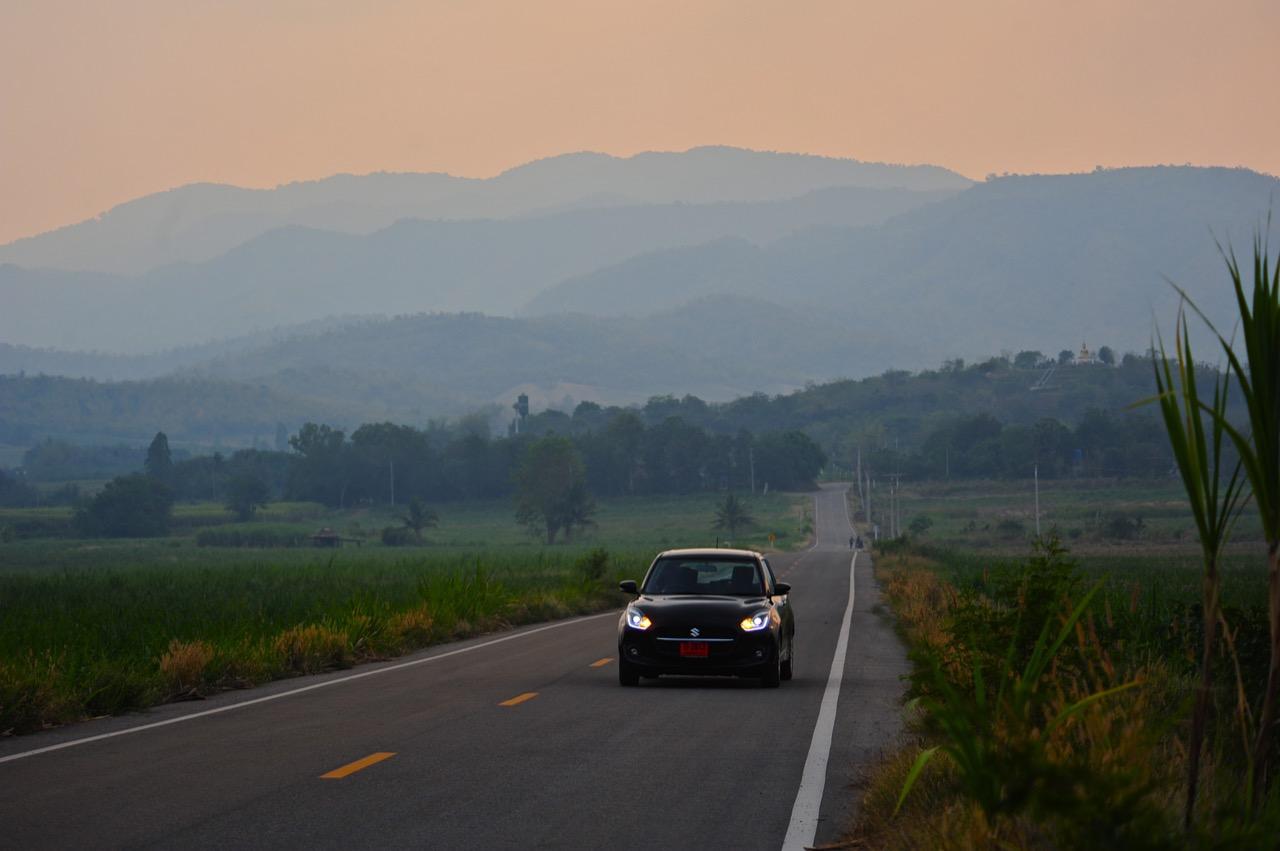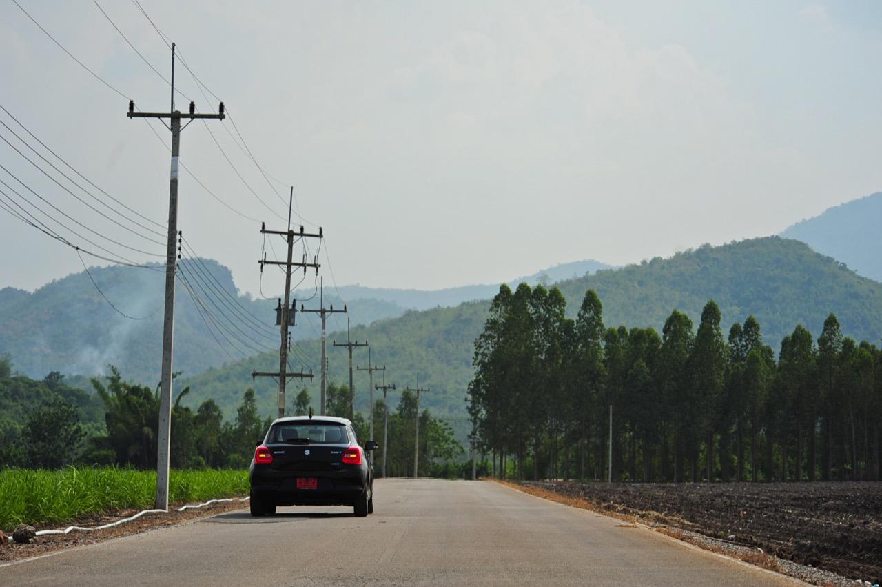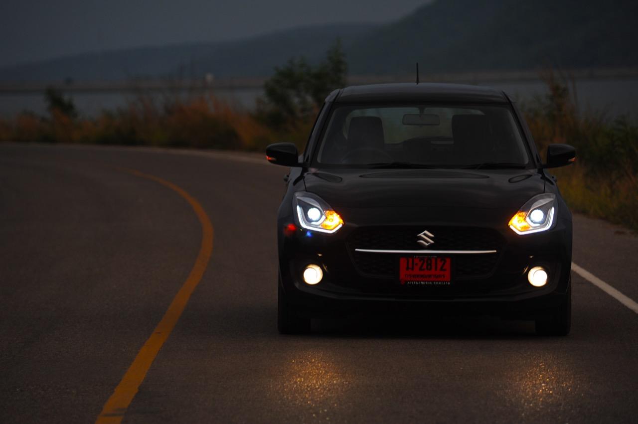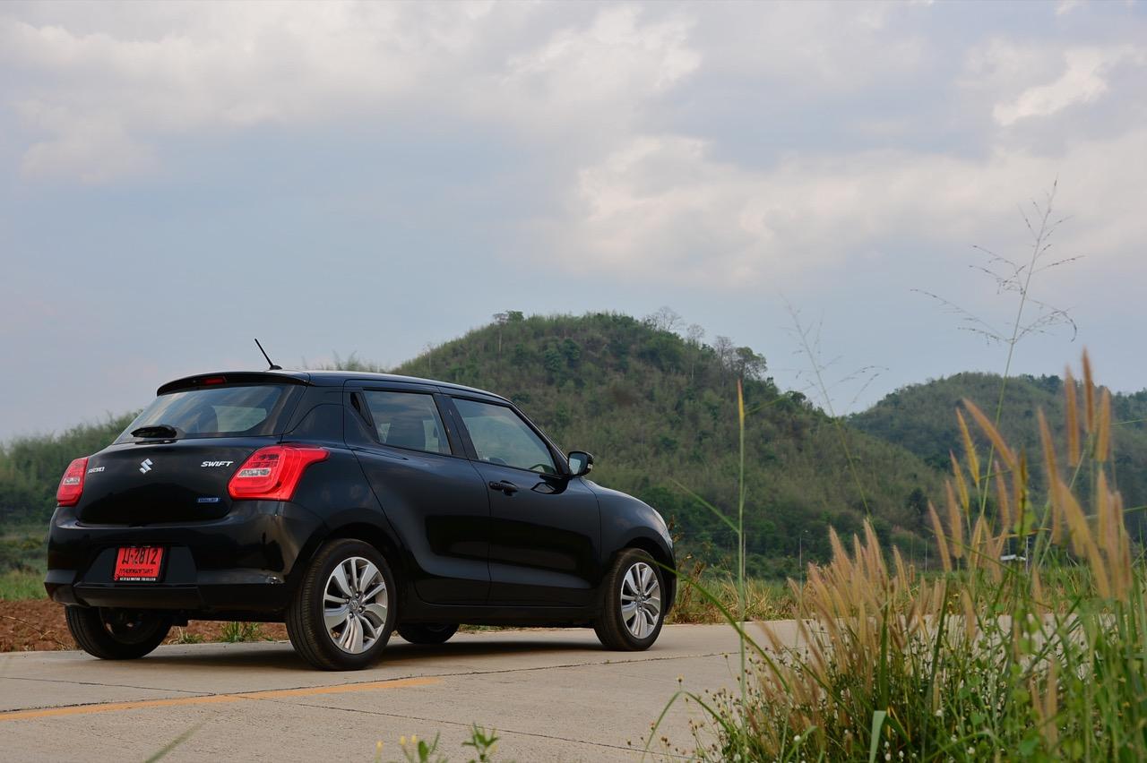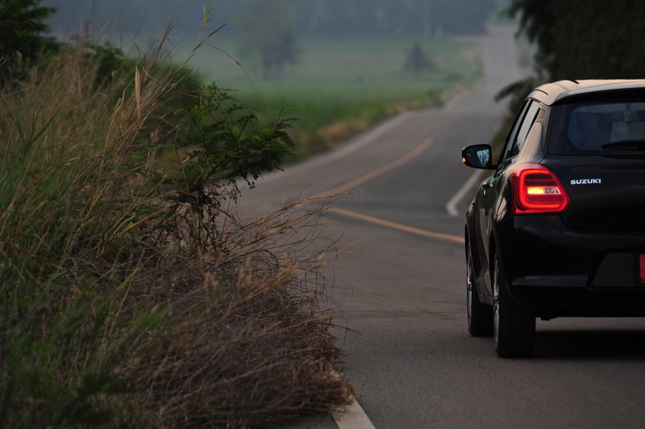 ออกทางไกล ลากไปทดสอบกันถึงอำเภอหนองปรือ ในจังหวัดกาญจนบุรี ระบบรองรับของ Swift หน้าเป็นแมคเฟอร์สัน สตรัท สปริง โช้คอัพและกันโคลง ส่วนช่วงล่างหลังเป็นแบบทอร์ชันบีมคานแข็ง การปรับเซตช่วงล่างให้ความรู้สึกดี กระชับและนิ่มนวลในเมือง ขับเร็วๆ ก็ยังเกาะถนน อาการร่อนหรือโคลงเมื่อหวดกันหนักๆน้อยจนทำให้มั่นใจแม้จะมีขนาดเล็ก ระยะยืดและยุบตัวที่มากไปนิดของโช้คอัพ ควรระวังรอยต่อพวกคอสะพานหรือที่กั้นถนนเพื่อลดความเร็ว ขับทางไกลช่วงล่างให้ความสบายตัว ซึมซับแรงสั่นสะเทือนได้ดีพอๆ กับ Mazda 2 1.3 ล้ออัลลอยขอบ 16 นิ้ว ยัดยาง 185/55R16 เป็นยางหน้าแคบที่เน้นลดอัตราสิ้นเปลือง เจ้าของบางคนอาจมองว่าเล็กเกินไป ชอบยางไซส์ 195 หรือ 205 มากกว่า เนื่องจากชอบการยึดเกาะแบบหนึบๆ เมื่อเปลี่ยนยางให้มีหน้าสัมผัสใหญ่ขึ้น การยึดเกาะกับผิวถนนก็จะเพิ่มขึ้น แต่แลกกลับด้วยอัตราสิ้นเปลืองที่ลดลง หรือพูดกันตรงๆ ก็คือมันจะกินน้ำมันมากขึ้นอีกนิด บางคนก็เอาไปใส่โช้คและสปริงที่มีคุณภาพดีกว่าของโรงงาน โดยพยายามรักษาขนาดของล้อเอาไว้ไม่ให้ใหญ่เกินไป ปรากฏว่าวิ่งในโค้งดีกว่าเดิมแต่ก็จะมีอาการกระด้างอยู่บ้าง เนื่องจากโช้คเดิม เซตค่ามากลางๆ ให้ขับเร็วได้มั่นใจและวิ่งนุ่มนวลพอได้