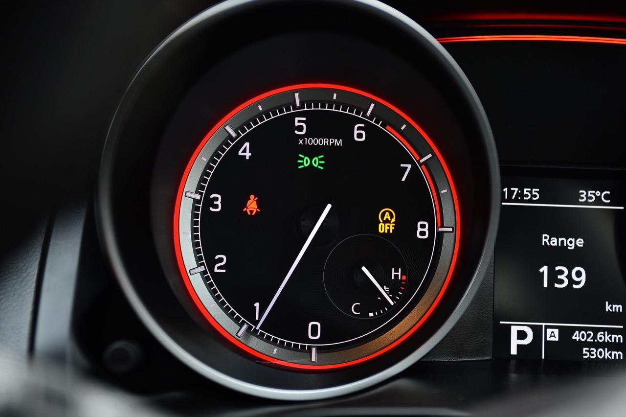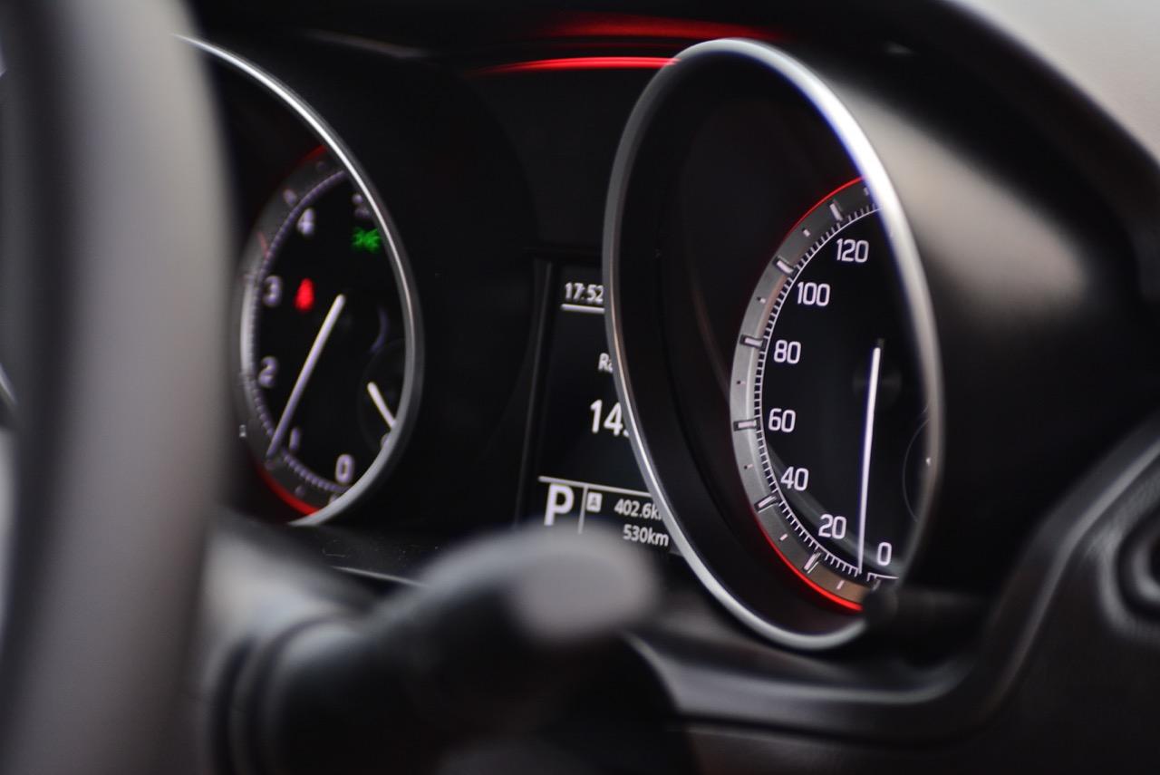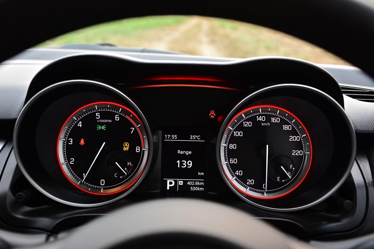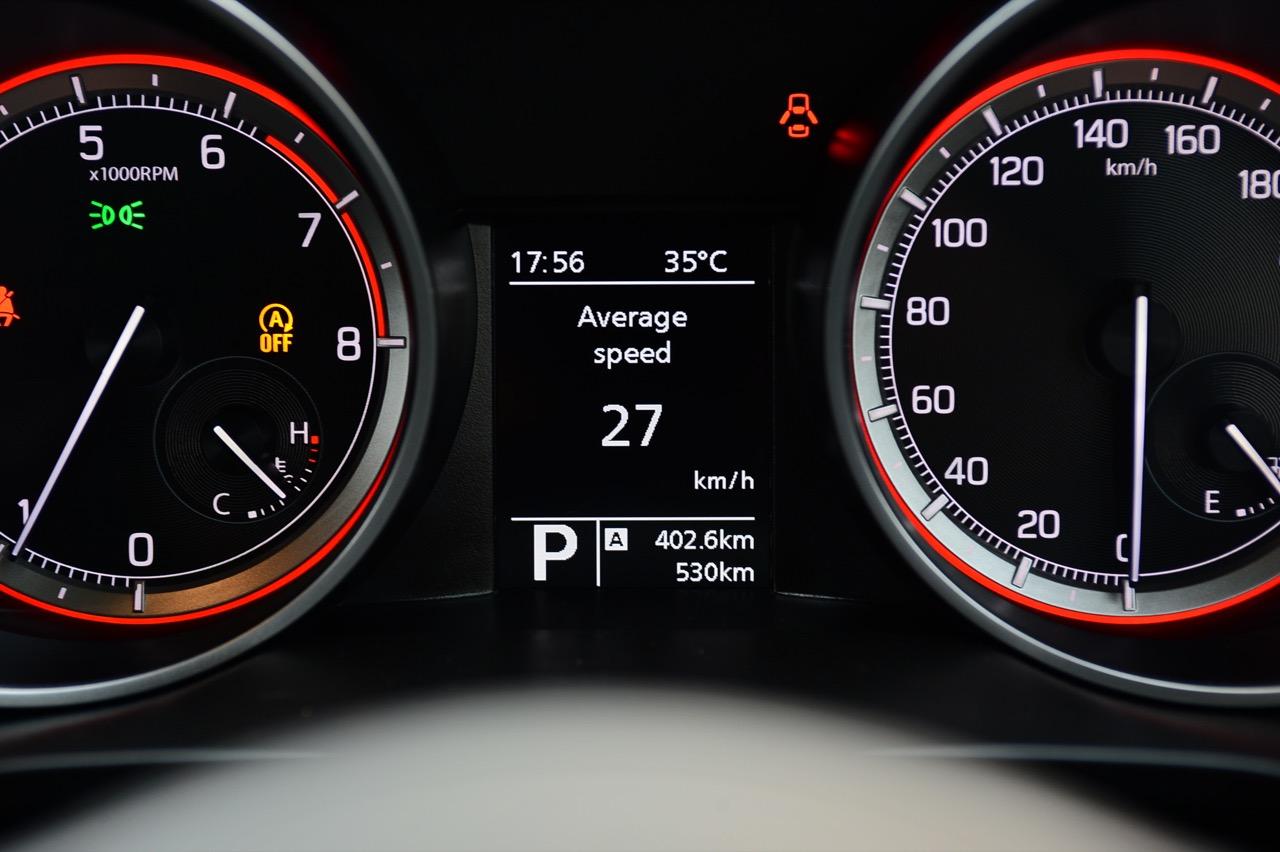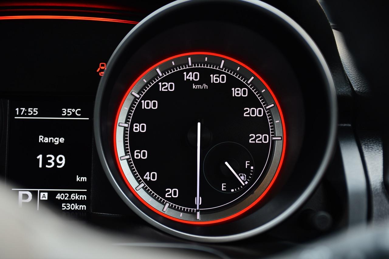 มาตรวัดและพวงมาลัยมาตรวัดสไตล์สปอร์ตทรงกระบอกตกแต่งด้วยลายเส้นสีแดง กึ่งกลางของมาตรวัดติดตั้งจอแสดงข้อมูลขับขี่ MID multi information display แบบ LCD เป็นมาตรวัดที่มีรายละเอียดสวยงาม อ่านค่าได้ง่าย ทั้งมาตรวัดรอบเครื่องยนต์และวัดความเร็ว