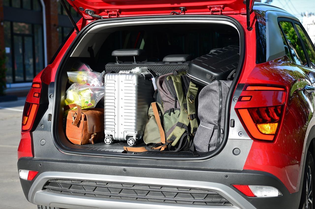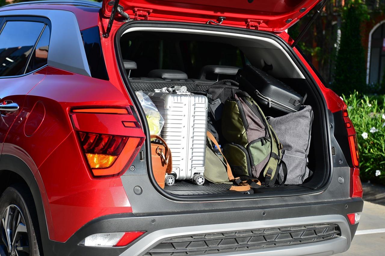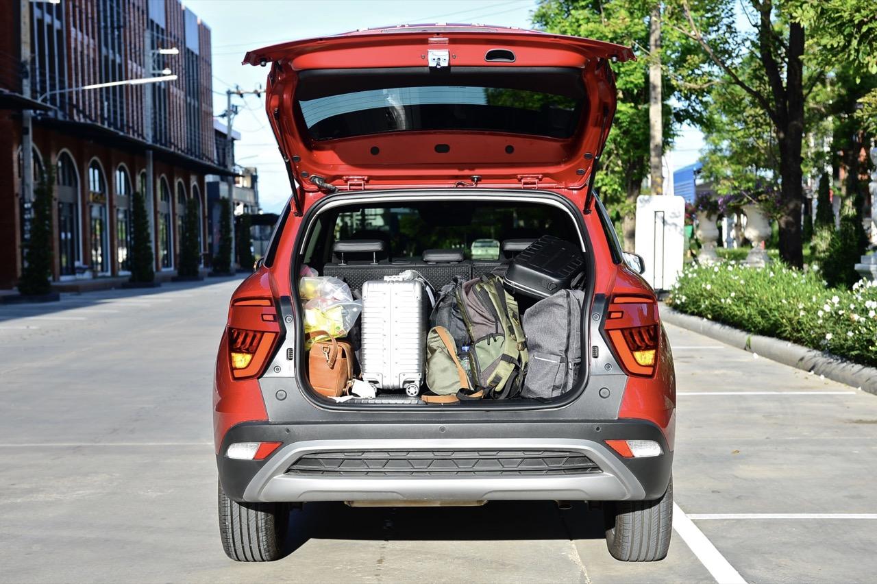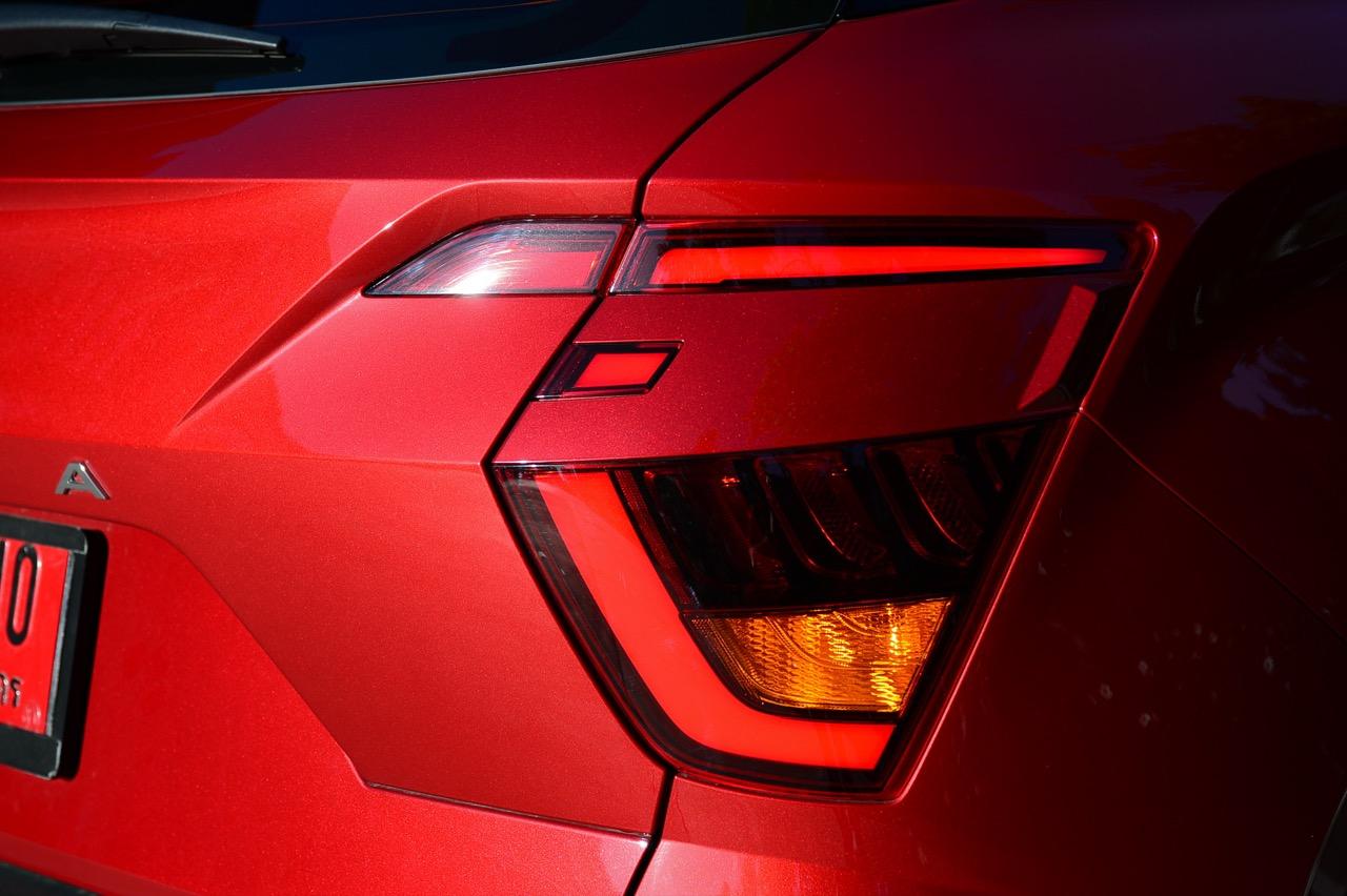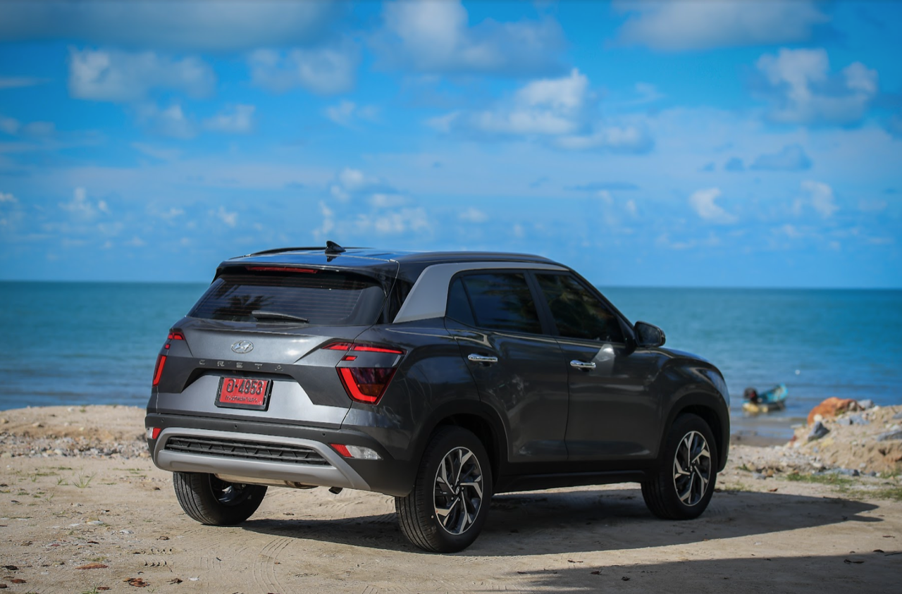 บั้นท้ายดูกลมๆ จากการออกแบบทรงด้านข้างและรูปแบบของไฟท้าย สัดส่วนของกระจกบานฝาท้ายที่โค้งและกินพื้นที่ไปจนถึงขอบของเสาท้ายเป็นอีกจุดที่ Hyundai ออกแบบได้ดี ไฟท้ายทรงบูมเมอแรงที่แตกต่างไปจากไฟท้ายของรถคู่แข่งและมีรูปแบบเฉพาะตัว ดีไซน์สวยงามใช้ได้แต่ดูเล็กไปนิดและไม่มีเส้นเชื่อมระหว่างตำแหน่งไฟท้ายทั้งสองข้าง ขอบของฝาท้ายด้วยเสริมมุมมองให้บั้นท้ายของ Creta เฉียบคมขึ้นมาอีกนิด ฝาท้ายเปิด-ปิดด้วยมือ ไม่มีระบบฝาท้ายไฟฟ้าซึ่งน่าเสียดายอยู่เหมือนกันเพราะถ้าให้ฝาท้ายไฟฟ้ามาจะครบกว่านี้มาก