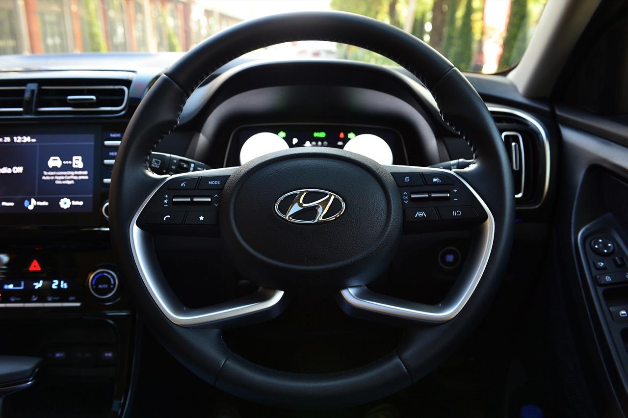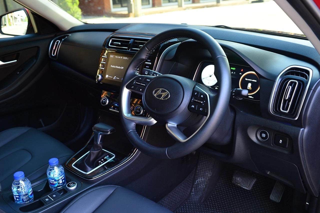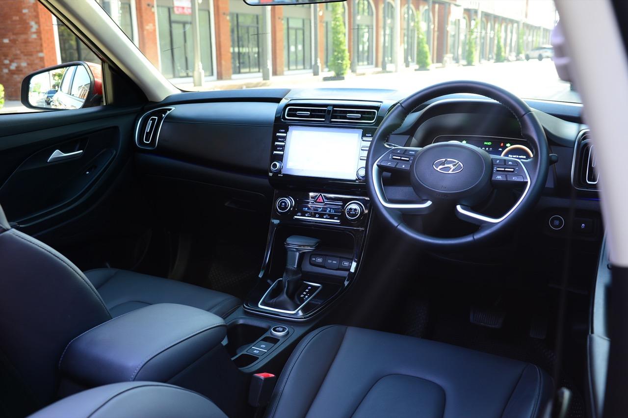 งานตกแต่งภายในของ Creta SEL เรียบง่ายและอุดมไปด้ยพลาสติก จอภาพมอนิเตอร์กลางและแดชบอร์ดคอนโซลดูโบราณไปนิดแต่ใช้งานได้จริง เบาะคู่หน้าปรับด้วยมือ หุ้มหนังสังเคราะห์นั่งสบายพอได้ แต่จุดที่เบาะต้องรองรับต้นขาสั้นเกินไป ตำแหน่งของเบาะที่ต้องรองรับแผ่นหลังทำออกมาได้ดีแต่มีขอบด้านข้างตัวเบาะที่อาจทำให้คนอ้วนรู้สึกอึดอัด เบาะหนังสีดำสวยงามใช้ได้ ส่วนพื้นที่ของเบาะคู่หน้า ทั้งคนขับและผู้โดยสารมีพื้นที่พอเพียงทั้งพื้นที่เหนือศีรษะและพื้นที่วางเท้าของผู้โดยสารตอนหน้า เบาะหลังแบบสามที่ นั่งจริงสองที่จะสบายตัวกว่า เบาะหลังปรับพับได้เพื่ออำนวยความสะดวกให้กับการขนสัมภาระขนาดใหญ่ จุดที่กลายเป็นตำแหน่งสำคัญก็คือกระจกหลังคา Panoramic Roof เปิด-ปิดด้วยระบบไฟฟ้า เปิดแล้วช่วยทำให้รู้สึกโปร่งโล่ง บริเวณด้านหน้าแผงหน้าปัดแนวยาวเชื่อมต่อไปกับแผงด้านข้างประตู ออกแบบเสมือนปีกที่โค้งรับ บริเวณแผงด้านหน้าติดตั้งหน้าจอภาพมอนิเตอร์ระบบสัมผัสขนาด 8 นิ้ว รองรับการเชื่อมต่อ Android Auto และ Apple Car Display ทั้งแบบเสียบสายและไร้สายซึ่งเป็นอีกหนึ่งฟังก์ชันการใช้งาน ฝาครอบลำโพงออกแบบพิเศษ ขอบโลหะหุ้มบริเวณหัวเกียร์ เส้นไฟเรืองแสงภายในห้องโดยสาร