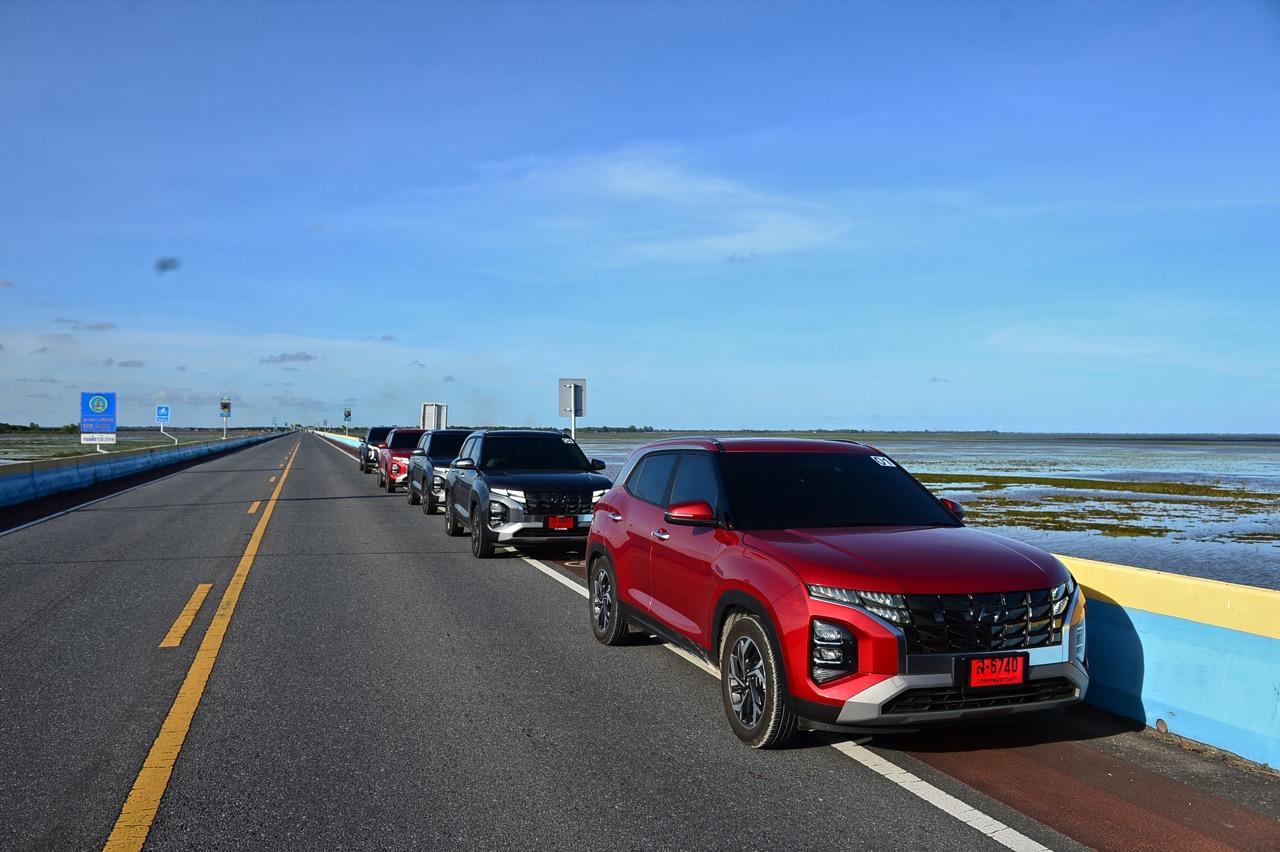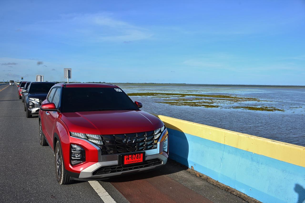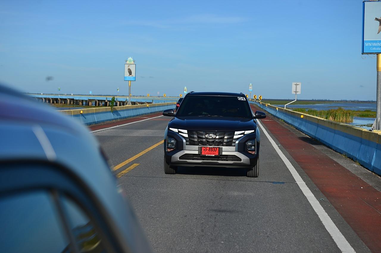 ช่วงเย็นเมื่อขับเข้าเขตจังหวัดพัทลุง บนถนนสะพานเฉลิมพระเกียรติ 80 พรรษา ที่คนท้องถิ่นเรียกกันว่าสะพานเอกชัยหรือสะพานไประโนด ซึ่งทอดยาวข้ามทะเลน้อยซึ่งเป็นทะเลสาบที่ต่อเชื่อมกับคลองและทะเลสาบสงขลา มีความยาว 14 กิโลเมตร นับเป็นสะพานที่มีความยาวที่สุดในประเทศไทย เพื่อมุ่งหน้าไปยังจังหวัดพัทลุง เป็นหนึ่งในสองจังหวัดที่ไม่มีพื้นที่ติดทะเลในหัวเมืองภาคใต้ รวมระยะทางการทดสอบในวันแรกกว่า 299 กิโลเมตร พวงมาลัยไฟฟ้าของ Creta ทำหน้าที่ในการบังคับทิศทางใช้ได้ ในย่านความเร็วสูงก็มีการแปรผันอัตราทดน้ำหนักให้หน่วงมือมากขึ้นอีกนิด การใช้โหมดสปอร์ตขับเคลื่อนแบบคาราวานไม่มีโอกาสได้ทดสอบประสิทธิภาพของรถในย่านความเร็วสูง ผมเลยไม่รู้ว่าเมื่อความเร็วทะลุเกิน 150 กิโลเมตรต่อชั่วโมง เจ้า Creta จะมีอาการเป็นยังไงบ้าง ในย่าน 120 -130 กิโลเมตรต่อชั่วโมง พวงมาลัยยังให้ความมั่นใจได้ดี ไม่ได้แม่นยำและมีน้ำหนักดีเท่า C-HR แต่ก็ถือว่าทำออกมาพอใช้ได้ อย่างที่บอกว่าเครื่องยนต์ 1.5 ลิตร ไม่ได้มีเรี่ยวแรงอะไรมากนัก ใช้ขับไปเรื่อยๆ เดินทางท่องเที่ยวกับครอบครัวหรือใช้งานประจำวันมากกว่าจะเอามาซัดกันเร็วๆ ในย่านความเร็วสูง ซึ่ง C-HR ถือเป็นรถยนต์ครอสโอเวอร์ในกลุ่มนี้ที่มีพวงมาลัยดีสุด