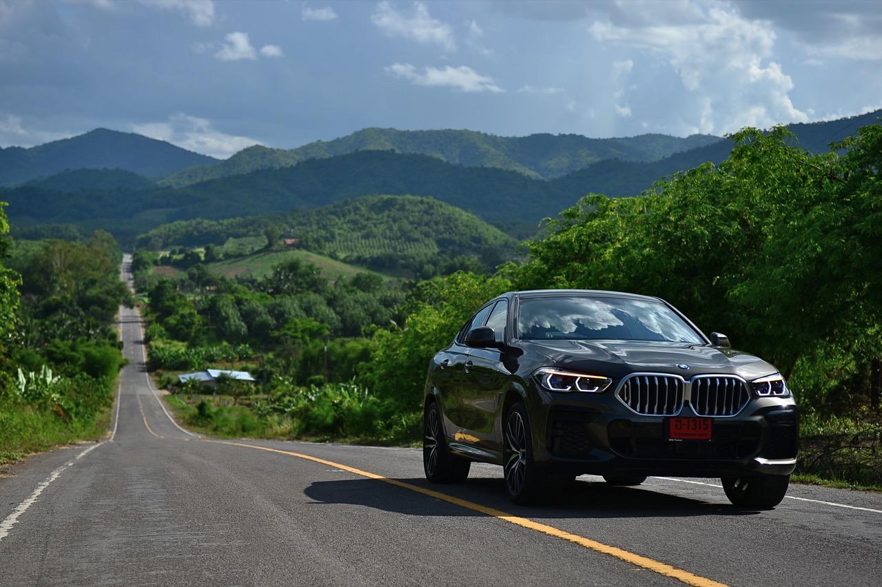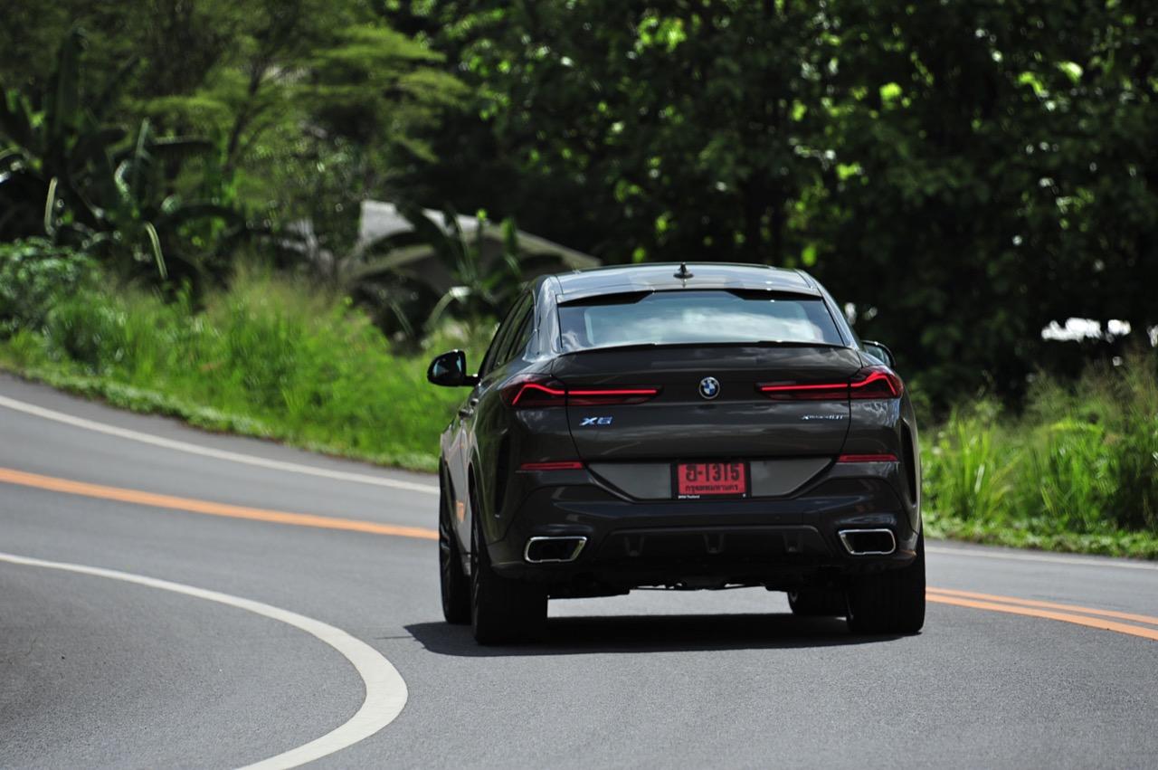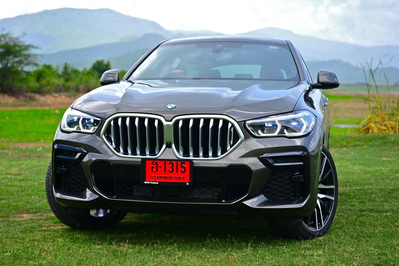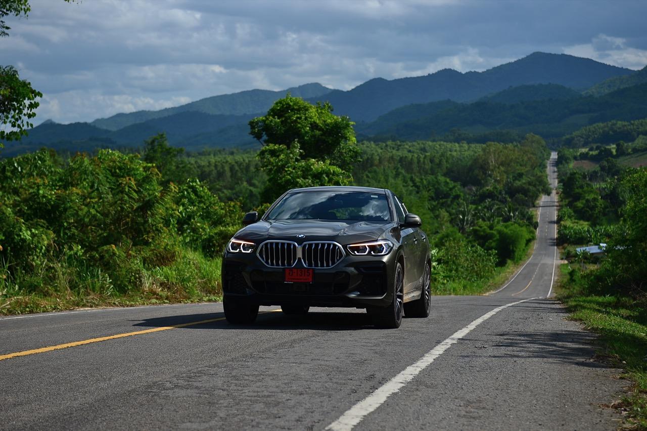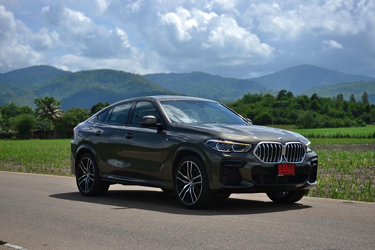 ชุดแต่ง M Sport ทำให้ X6 ที่ใหญ่ขึ้นในทุกมิติยกเว้นความสูง หน้าตาที่ดูดุดันเกินความเป็นรถ SAV ออกแบบคล้ายกับเครื่องจักรขนาดใหญ่ที่พร้อมจะกระโจนไปข้างหน้า กระจังหน้าที่มีไฟอยู่ข้างในทำให้มันคล้ายหุ่น transformers และทำให้รถที่วิ่งอยู่ข้างหน้าในช่องทางด้านขวาหลบเข้าซ้ายกันอย่างจ้าละหวั่น ล้อ 22 นิ้วใหญ่โตสมกับขนาดความกว้างของซุ้มล้อ บั้นท้ายมีชิ้นส่วนของระบบ Aero Dynamic อยู่เต็มไปหมดแต่ไม่ยักกะรกรุงรัง คุณสามารถมองเห็นช่องระบายอากาศที่แก้มข้าง ซึ่งทำหน้าที่ให้อากาศไหลผ่าน (อย่างราบรื่น) ราวกับซุปเปอร์คาร์ กระจังหน้าที่ปิดได้เอง ทำหน้าที่ลดแรงต้านของอากาศให้เหลือน้อยที่สุด เช่นเดียวกับห้องโดยสารที่อุดมไปด้วยของเล่นไฮเทค เครื่องยนต์เบนซิน 3.0 ลิตร ตัวเดียวกับ X5 45e (แต่ไม่มีมอเตอร์ไฟฟ้า) มีแรงบิดเหลือเฟือสำหรับการใช้งาน ทั้งขับปกติและขับเร็วจี๋ การที่มันเป็นรถประกอบไทย ทำให้ค่าตัวเมื่อบวกกับอัตราภาษีที่ร้อนแรงลดลงไปถึง 1.8 ล้านบาท น้ำหนัก 2 ตัน มีความอวบเกือบจะเท่ากับ Mercedes-G Wagon แชสซีอะลูมิเนียม กับกันโคลง Active Roll Stabilization พิสูจน์แล้วว่าเกาะถนนเป็นเยี่ยม ซึ่งเดี๋ยวได้รู้กันตอนขับทางไกล