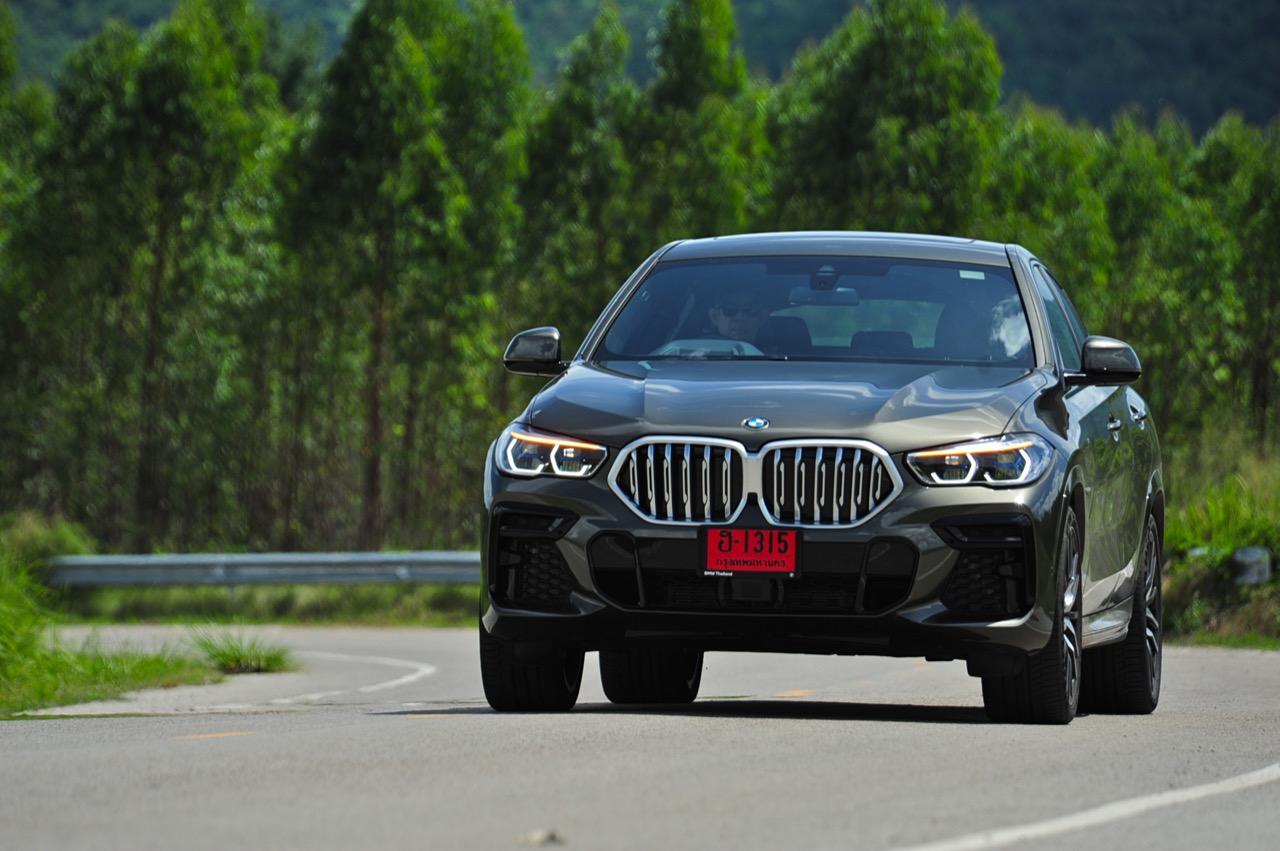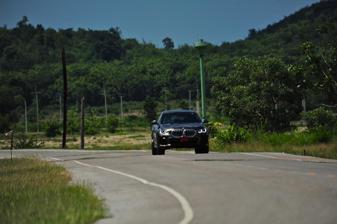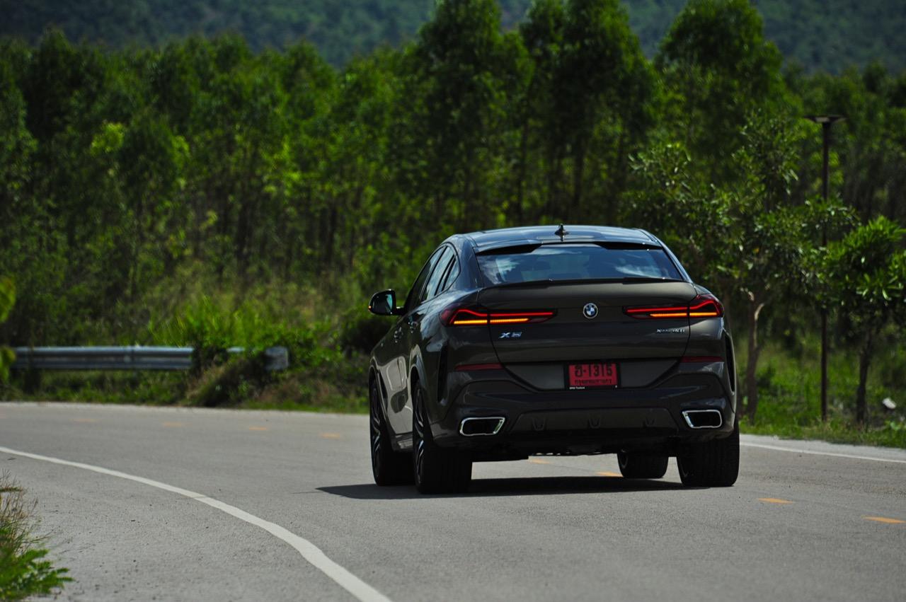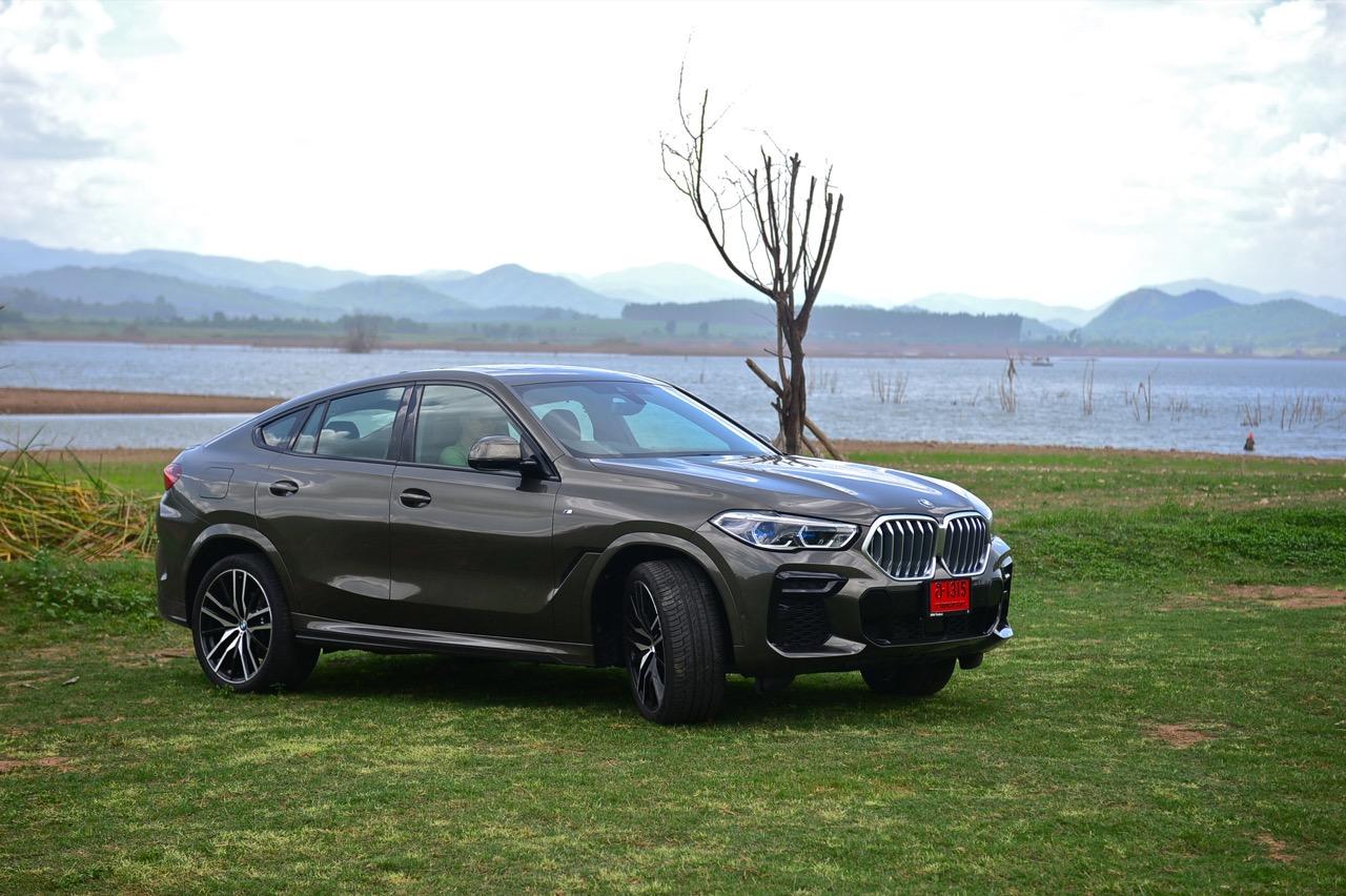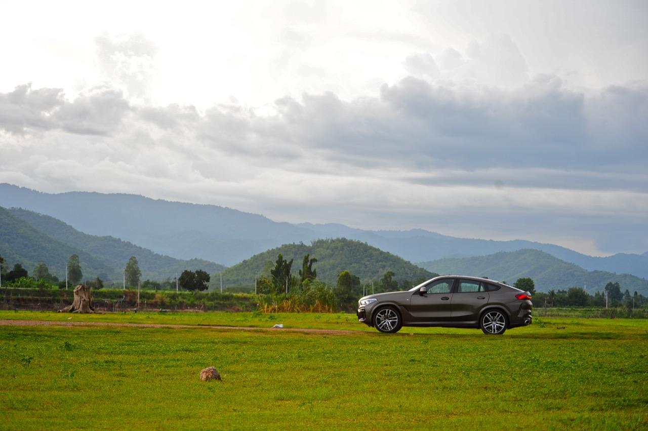ชุดแต่ง M Sport ทำให้ X6 ที่ใหญ่ขึ้นในทุกมิติยกเว้นความสูง หน้าตาที่ดูดุดันเกินความเป็นรถ SAV ออกแบบคล้ายกับเครื่องจักรขนาดใหญ่ที่พร้อมจะกระโจนไปข้างหน้า กระจังหน้าที่มีไฟอยู่ข้างในทำให้มันคล้ายหุ่น transformers และทำให้รถที่วิ่งอยู่ข้างหน้าในช่องทางด้านขวาหลบเข้าซ้ายกันอย่างจ้าละหวั่น ล้อ 22 นิ้วใหญ่โตสมกับขนาดความกว้างของซุ้มล้อ บั้นท้ายมีชิ้นส่วนของระบบ Aero Dynamic อยู่เต็มไปหมดแต่ไม่ยักกะรกรุงรัง คุณสามารถมองเห็นช่องระบายอากาศที่แก้มข้าง ซึ่งทำหน้าที่ให้อากาศไหลผ่าน (อย่างราบรื่น) ราวกับซุปเปอร์คาร์ กระจังหน้าที่ปิดได้เอง ทำหน้าที่ลดแรงต้านของอากาศให้เหลือน้อยที่สุด เช่นเดียวกับห้องโดยสารที่อุดมไปด้วยของเล่นไฮเทค เครื่องยนต์เบนซิน 3.0 ลิตร ตัวเดียวกับ X5 45e (แต่ไม่มีมอเตอร์ไฟฟ้า) มีแรงบิดเหลือเฟือสำหรับการใช้งาน ทั้งขับปกติและขับเร็วจี๋ การที่มันเป็นรถประกอบไทย ทำให้ค่าตัวเมื่อบวกกับอัตราภาษีที่ร้อนแรงลดลงไปถึง 1.8 ล้านบาท น้ำหนัก 2 ตัน มีความอวบเกือบจะเท่ากับ Mercedes-G Wagon แชสซีอะลูมิเนียม กับกันโคลง Active Roll Stabilization พิสูจน์แล้วว่าเกาะถนนเป็นเยี่ยม ซึ่งเดี๋ยวได้รู้กันตอนขับทางไกล