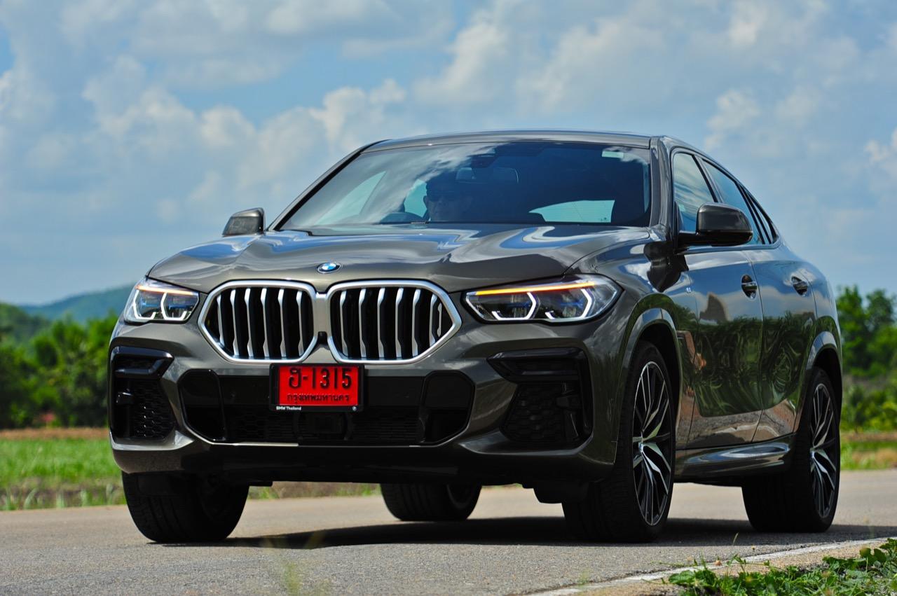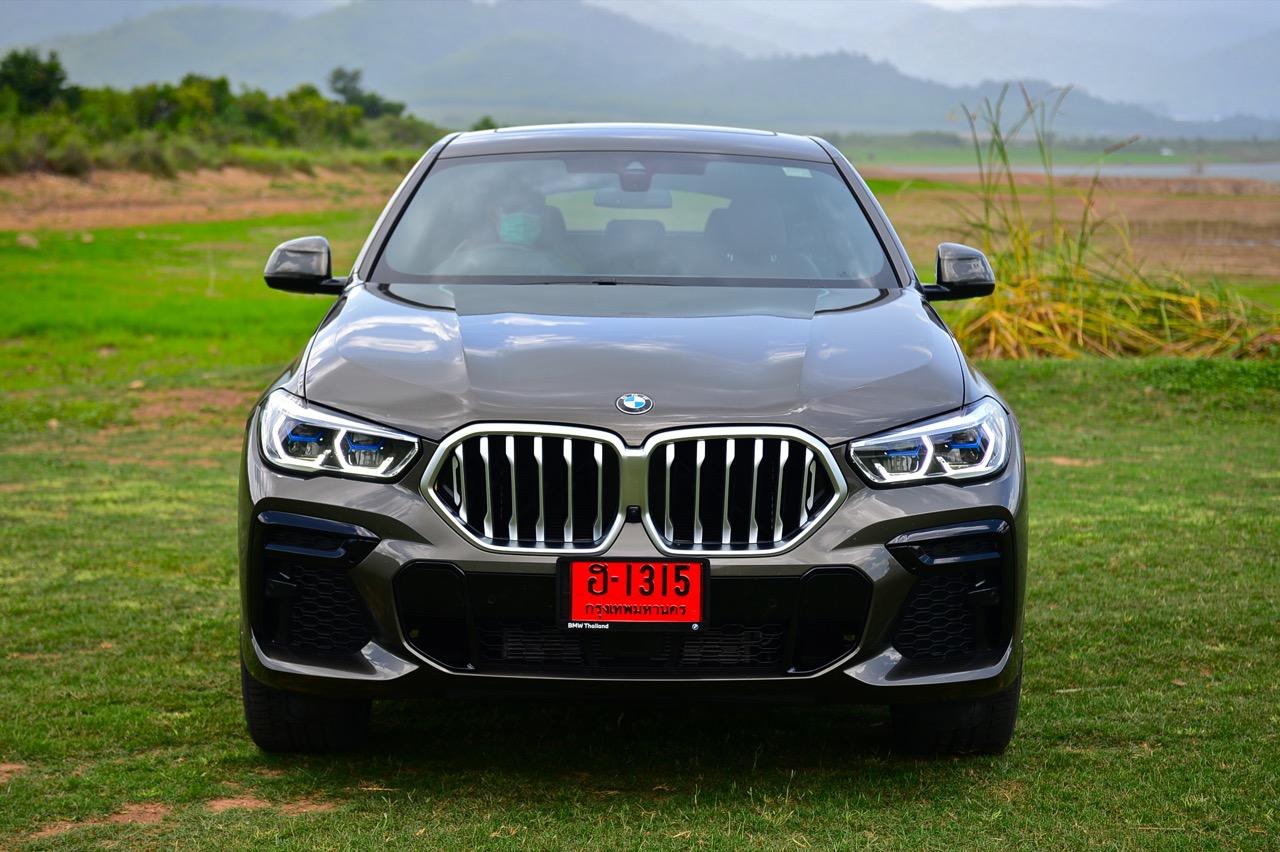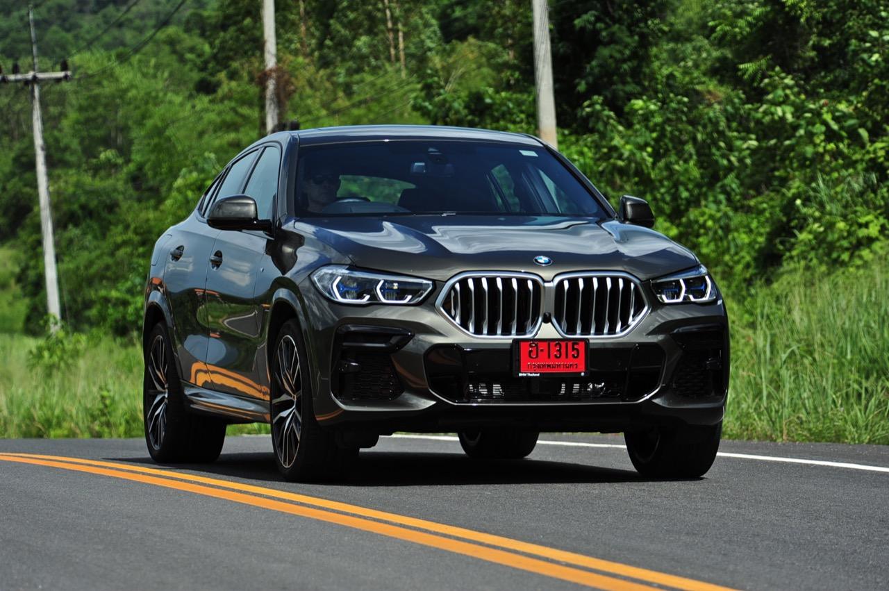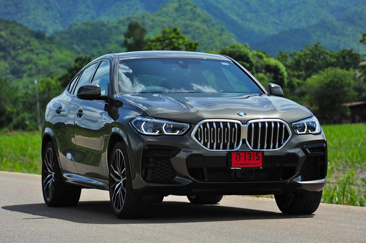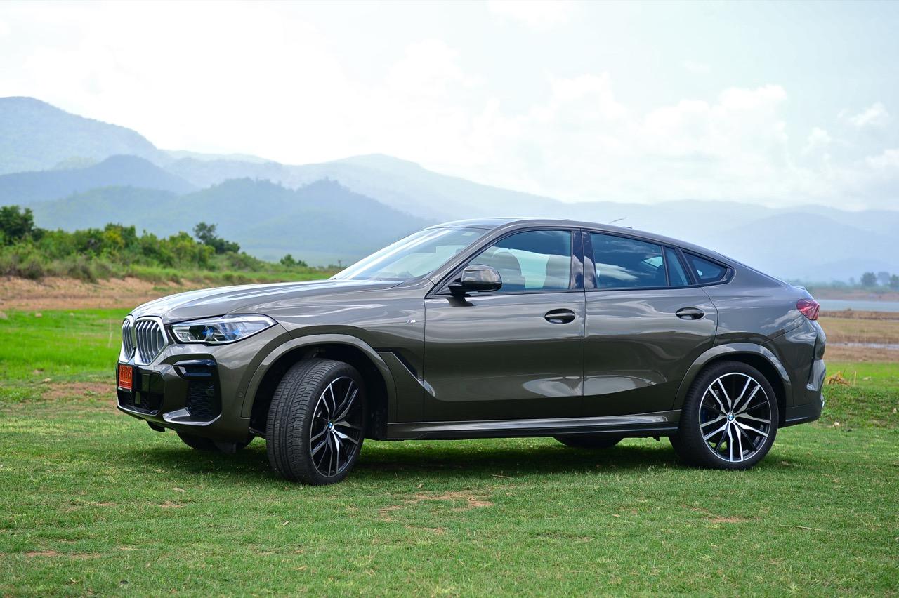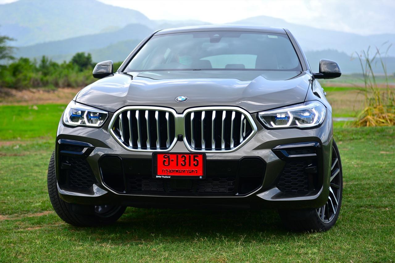 ชุดแต่ง M Sport ทำให้ X6 ที่ใหญ่ขึ้นในทุกมิติยกเว้นความสูง หน้าตาที่ดูดุดันเกินความเป็นรถ SAV ออกแบบคล้ายกับเครื่องจักรขนาดใหญ่ที่พร้อมจะกระโจนไปข้างหน้า กระจังหน้าที่มีไฟอยู่ข้างในทำให้มันคล้ายหุ่น transformers และทำให้รถที่วิ่งอยู่ข้างหน้าในช่องทางด้านขวาหลบเข้าซ้ายกันอย่างจ้าละหวั่น ล้อ 22 นิ้วใหญ่โตสมกับขนาดความกว้างของซุ้มล้อ บั้นท้ายมีชิ้นส่วนของระบบ Aero Dynamic อยู่เต็มไปหมดแต่ไม่ยักกะรกรุงรัง คุณสามารถมองเห็นช่องระบายอากาศที่แก้มข้าง ซึ่งทำหน้าที่ให้อากาศไหลผ่าน (อย่างราบรื่น) ราวกับซุปเปอร์คาร์ กระจังหน้าที่ปิดได้เอง ทำหน้าที่ลดแรงต้านของอากาศให้เหลือน้อยที่สุด เช่นเดียวกับห้องโดยสารที่อุดมไปด้วยของเล่นไฮเทค เครื่องยนต์เบนซิน 3.0 ลิตร ตัวเดียวกับ X5 45e (แต่ไม่มีมอเตอร์ไฟฟ้า) มีแรงบิดเหลือเฟือสำหรับการใช้งาน ทั้งขับปกติและขับเร็วจี๋ การที่มันเป็นรถประกอบไทย ทำให้ค่าตัวเมื่อบวกกับอัตราภาษีที่ร้อนแรงลดลงไปถึง 1.8 ล้านบาท น้ำหนัก 2 ตัน มีความอวบเกือบจะเท่ากับ Mercedes-G Wagon แชสซีอะลูมิเนียม กับกันโคลง Active Roll Stabilization พิสูจน์แล้วว่าเกาะถนนเป็นเยี่ยม ซึ่งเดี๋ยวได้รู้กันตอนขับทางไกล