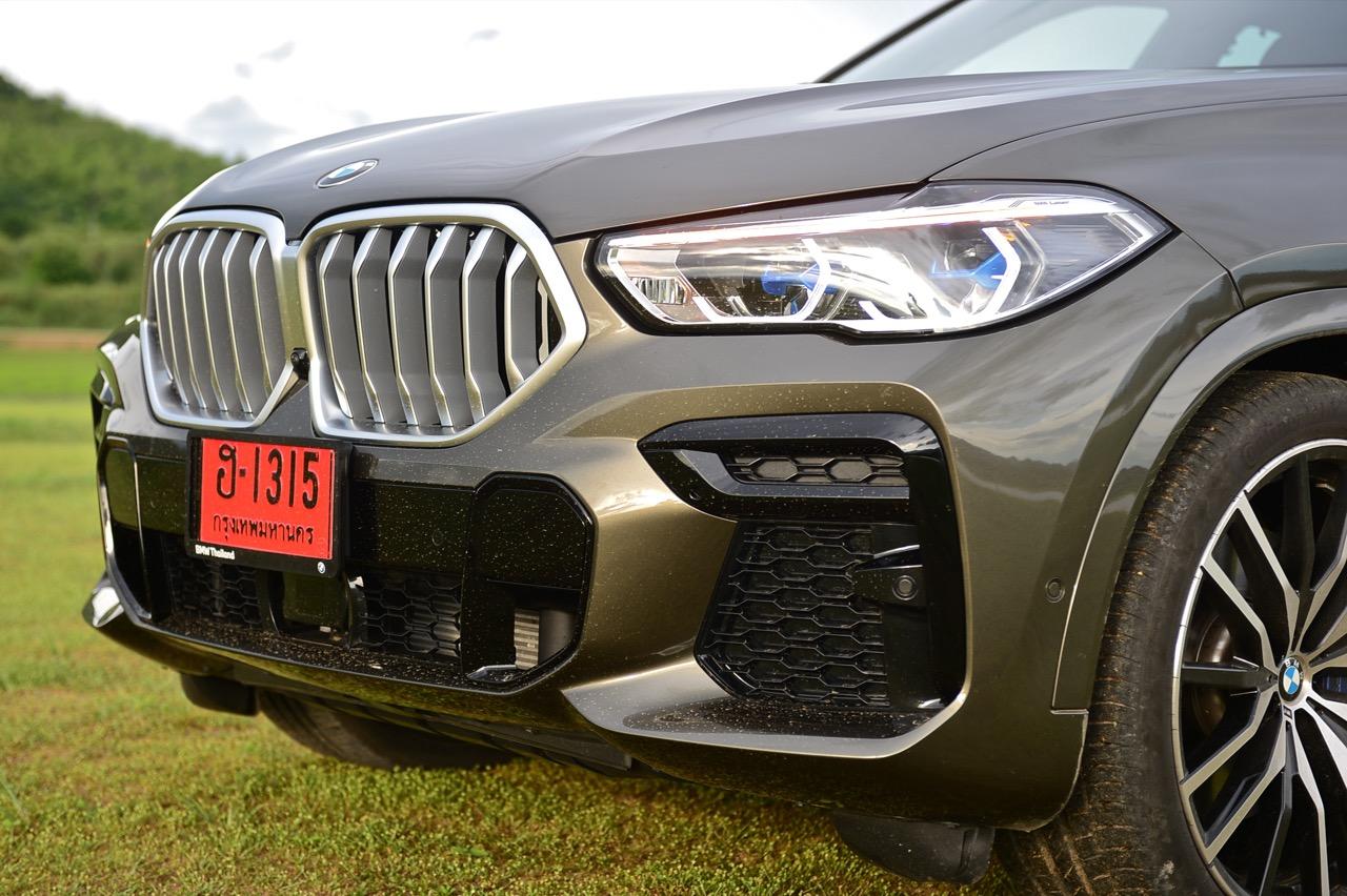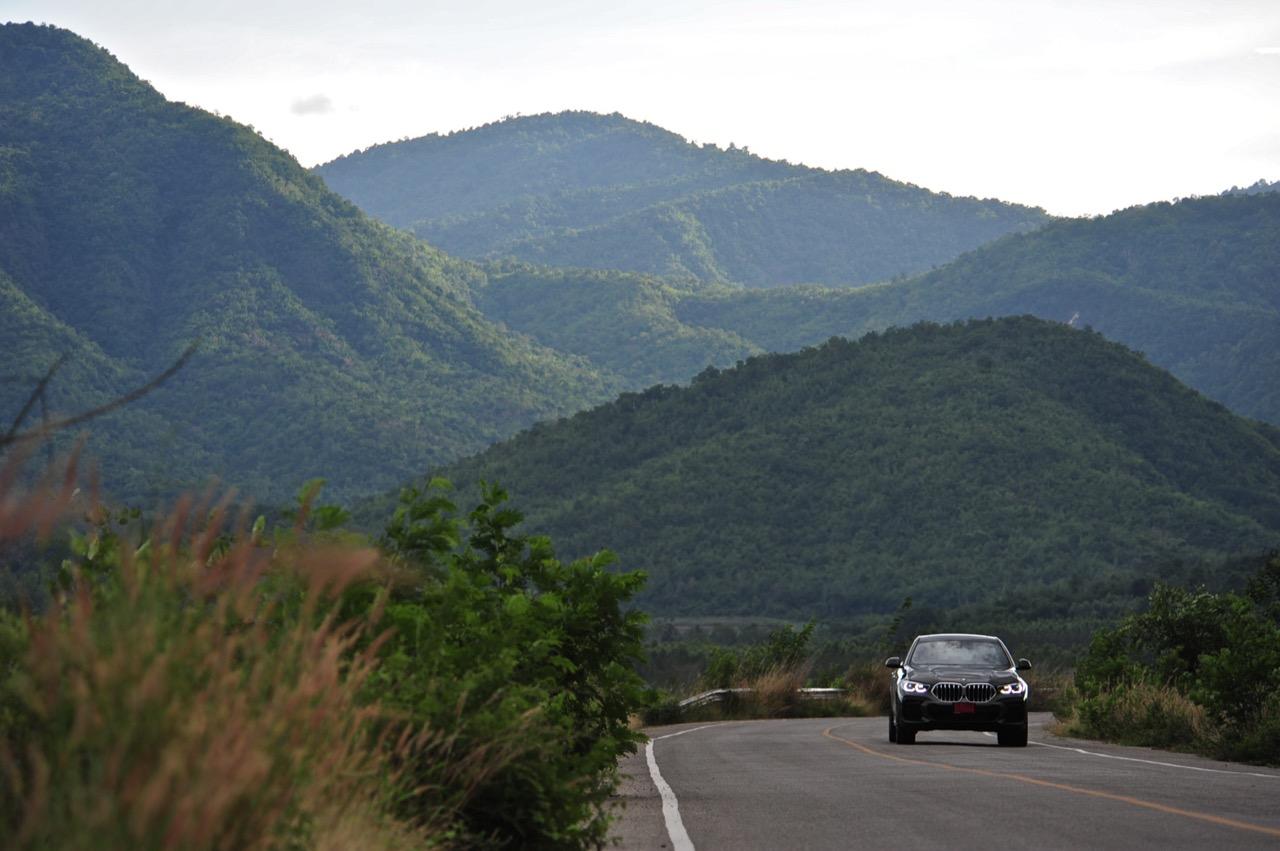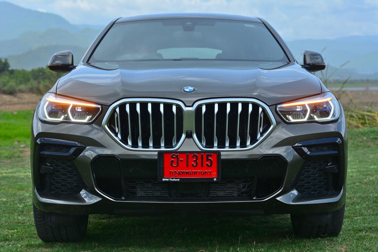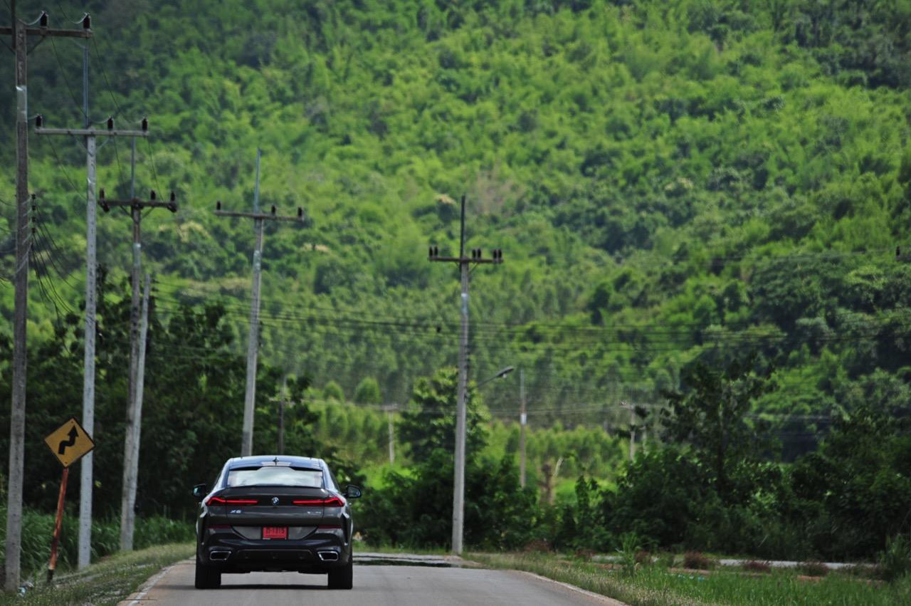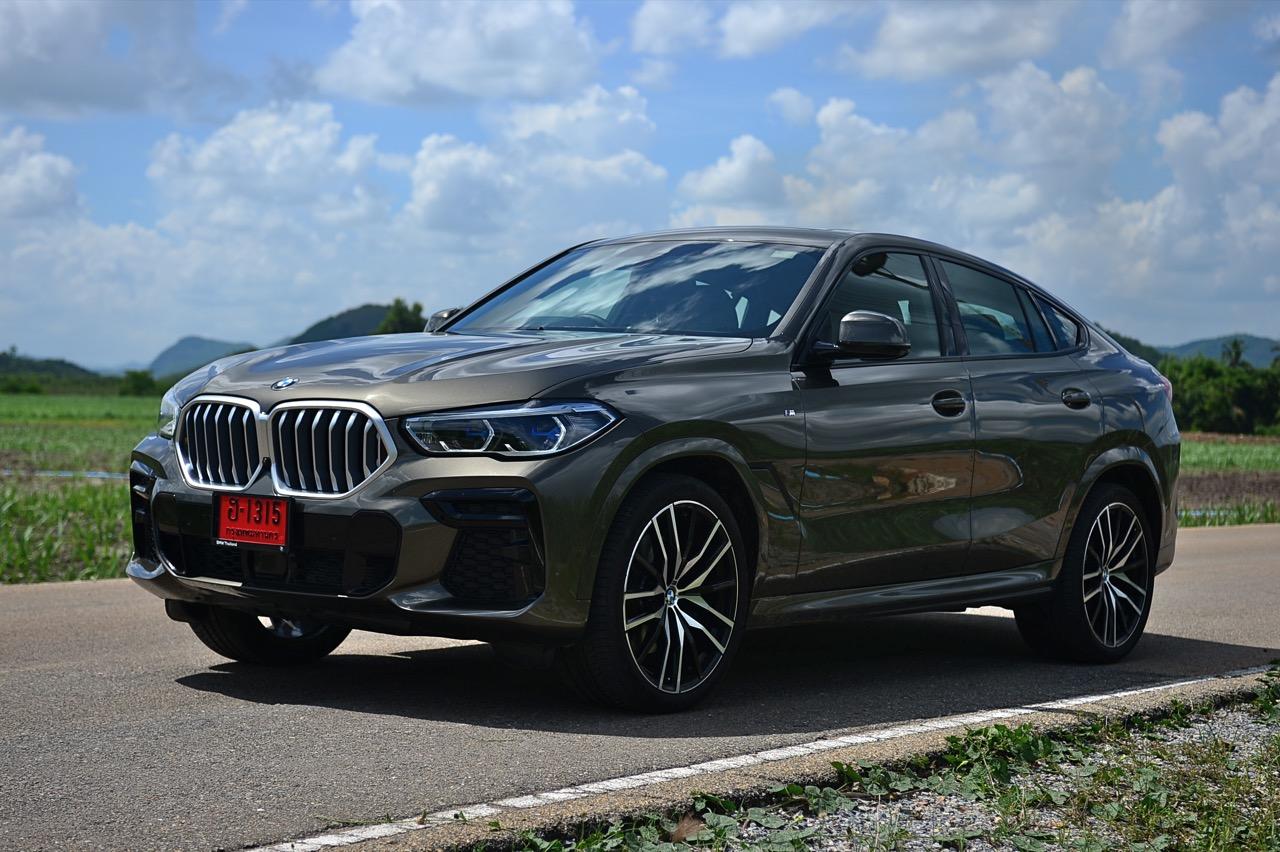 ชุดแต่ง M Sport ทำให้ X6 ที่ใหญ่ขึ้นในทุกมิติยกเว้นความสูง หน้าตาที่ดูดุดันเกินความเป็นรถ SAV ออกแบบคล้ายกับเครื่องจักรขนาดใหญ่ที่พร้อมจะกระโจนไปข้างหน้า กระจังหน้าที่มีไฟอยู่ข้างในทำให้มันคล้ายหุ่น transformers และทำให้รถที่วิ่งอยู่ข้างหน้าในช่องทางด้านขวาหลบเข้าซ้ายกันอย่างจ้าละหวั่น ล้อ 22 นิ้วใหญ่โตสมกับขนาดความกว้างของซุ้มล้อ บั้นท้ายมีชิ้นส่วนของระบบ Aero Dynamic อยู่เต็มไปหมดแต่ไม่ยักกะรกรุงรัง คุณสามารถมองเห็นช่องระบายอากาศที่แก้มข้าง ซึ่งทำหน้าที่ให้อากาศไหลผ่าน (อย่างราบรื่น) ราวกับซุปเปอร์คาร์ กระจังหน้าที่ปิดได้เอง ทำหน้าที่ลดแรงต้านของอากาศให้เหลือน้อยที่สุด เช่นเดียวกับห้องโดยสารที่อุดมไปด้วยของเล่นไฮเทค เครื่องยนต์เบนซิน 3.0 ลิตร ตัวเดียวกับ X5 45e (แต่ไม่มีมอเตอร์ไฟฟ้า) มีแรงบิดเหลือเฟือสำหรับการใช้งาน ทั้งขับปกติและขับเร็วจี๋ การที่มันเป็นรถประกอบไทย ทำให้ค่าตัวเมื่อบวกกับอัตราภาษีที่ร้อนแรงลดลงไปถึง 1.8 ล้านบาท น้ำหนัก 2 ตัน มีความอวบเกือบจะเท่ากับ Mercedes-G Wagon แชสซีอะลูมิเนียม กับกันโคลง Active Roll Stabilization พิสูจน์แล้วว่าเกาะถนนเป็นเยี่ยม ซึ่งเดี๋ยวได้รู้กันตอนขับทางไกล