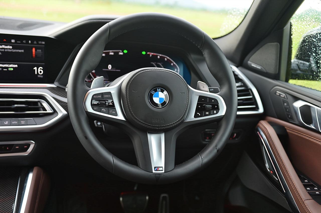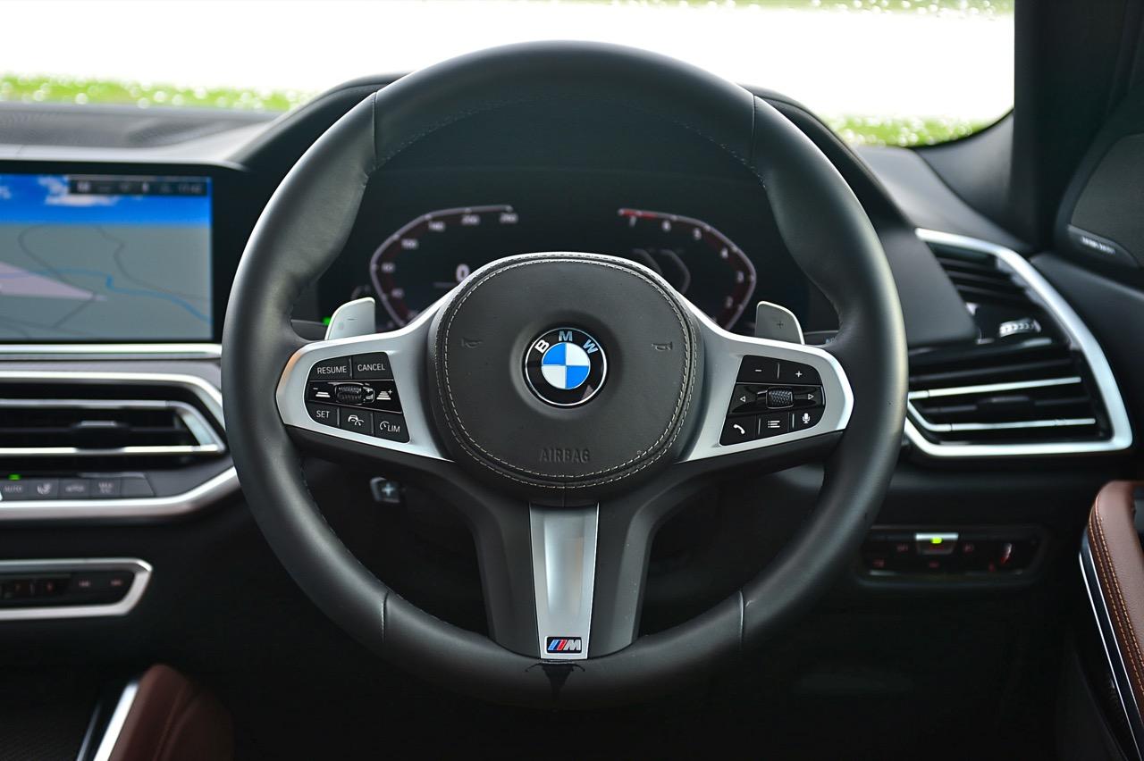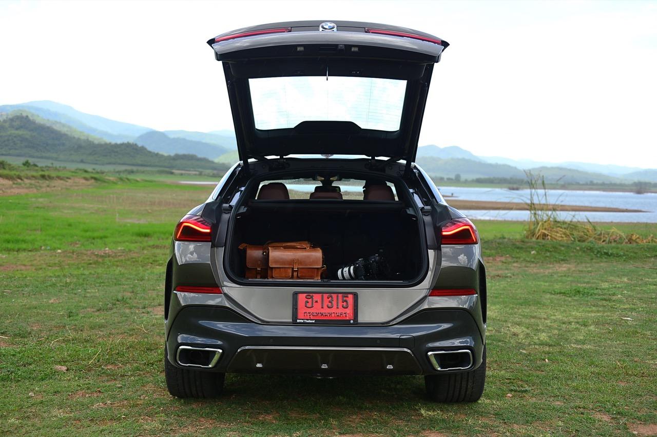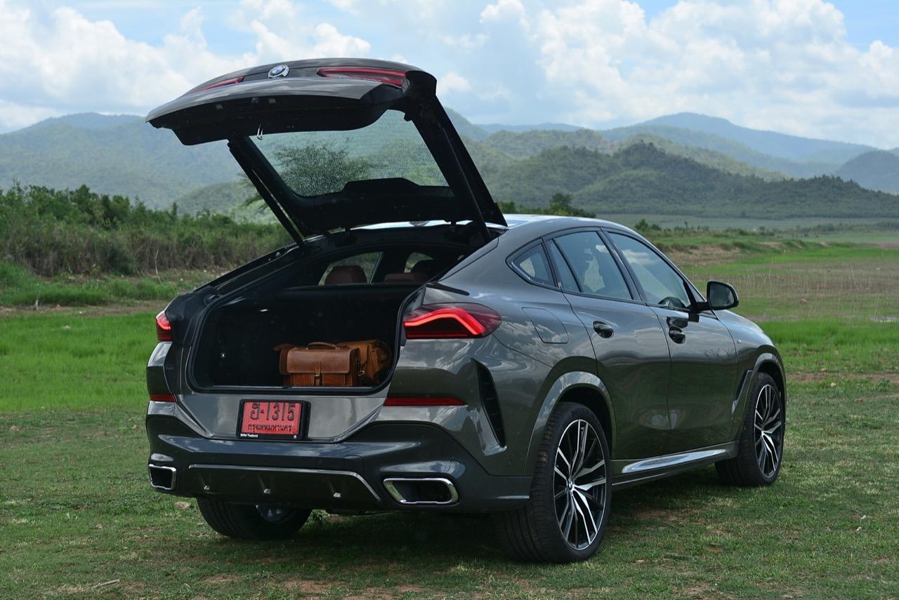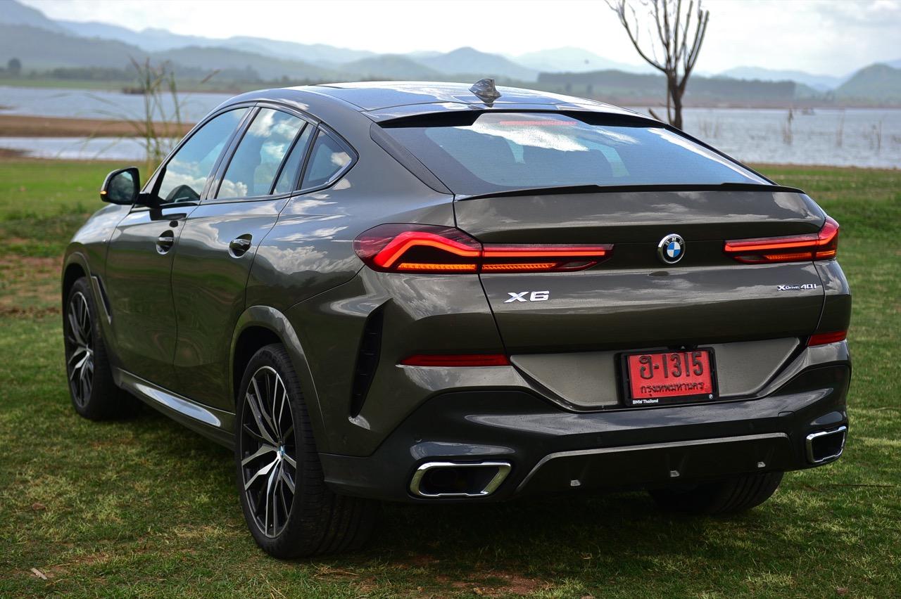 ชุดแต่ง M Sport ทำให้ X6 ที่ใหญ่ขึ้นในทุกมิติยกเว้นความสูง หน้าตาที่ดูดุดันเกินความเป็นรถ SAV ออกแบบคล้ายกับเครื่องจักรขนาดใหญ่ที่พร้อมจะกระโจนไปข้างหน้า กระจังหน้าที่มีไฟอยู่ข้างในทำให้มันคล้ายหุ่น transformers และทำให้รถที่วิ่งอยู่ข้างหน้าในช่องทางด้านขวาหลบเข้าซ้ายกันอย่างจ้าละหวั่น ล้อ 22 นิ้วใหญ่โตสมกับขนาดความกว้างของซุ้มล้อ บั้นท้ายมีชิ้นส่วนของระบบ Aero Dynamic อยู่เต็มไปหมดแต่ไม่ยักกะรกรุงรัง คุณสามารถมองเห็นช่องระบายอากาศที่แก้มข้าง ซึ่งทำหน้าที่ให้อากาศไหลผ่าน (อย่างราบรื่น) ราวกับซุปเปอร์คาร์ กระจังหน้าที่ปิดได้เอง ทำหน้าที่ลดแรงต้านของอากาศให้เหลือน้อยที่สุด เช่นเดียวกับห้องโดยสารที่อุดมไปด้วยของเล่นไฮเทค เครื่องยนต์เบนซิน 3.0 ลิตร ตัวเดียวกับ X5 45e (แต่ไม่มีมอเตอร์ไฟฟ้า) มีแรงบิดเหลือเฟือสำหรับการใช้งาน ทั้งขับปกติและขับเร็วจี๋ การที่มันเป็นรถประกอบไทย ทำให้ค่าตัวเมื่อบวกกับอัตราภาษีที่ร้อนแรงลดลงไปถึง 1.8 ล้านบาท น้ำหนัก 2 ตัน มีความอวบเกือบจะเท่ากับ Mercedes-G Wagon แชสซีอะลูมิเนียม กับกันโคลง Active Roll Stabilization พิสูจน์แล้วว่าเกาะถนนเป็นเยี่ยม ซึ่งเดี๋ยวได้รู้กันตอนขับทางไกล