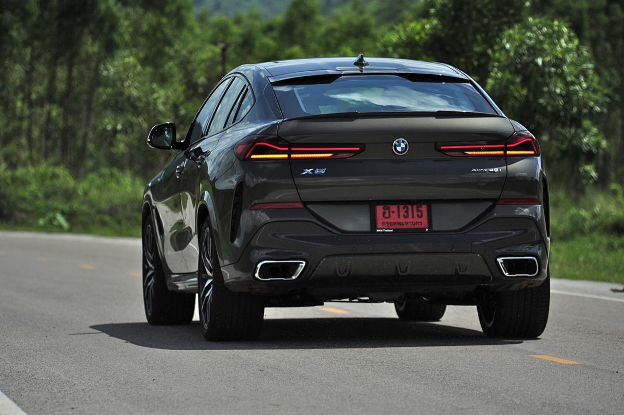 สำหรับการตั้งค่าการตอบสนองของระบบบังคับเลี้ยวด้วยระบบไฟฟ้า นี่ถือว่ายอดเยี่ยม ระบบกันสะเทือนแบบถุงลมสามารถเสริมความสบายบนถนนที่ไม่เรียบ ทำให้คุณลักษณะด้านสมรรถนะของรถเพิ่มมากขึ้นในขณะที่กำลังใช้ความเร็ว เบรก M Sport ต้องกะระยะกันใหม่หมดสำหรับคนที่เพิ่งจะลงมาจากรถคันเล็ก ไม่ว่าคุณจะขับเร็วหรือช้า การเบรกของ X6 มีระยะหยุดที่มากกว่า BMW M340i เนื่องจากขนาดตัวถังและน้ำหนักของรถซึ่งส่งผลต่อระยะของการหยุดอย่างช่วยไม่ได้ สิ่งที่ X6 xDrive 40i มีให้ก็คือ มันเป็น Rare item ของรถยนต์ในกลุ่ม Luxury SUV ขับสนุกใช้ได้ แต่ยังเป็นรอง X7 ในด้านของความสบายและอุปกรณ์ ถ้าคุณมีเงินเยอะและไม่อยากเหมือนใคร ก็เดินไปที่ X6 แต่ถ้าคุณชอบรถที่ให้อรรถประโยชน์การใช้งานที่แท้จริง ยังมี X5 45e / Q8 TFSIe และ AMG GLE53 รออยู่นะครับ.