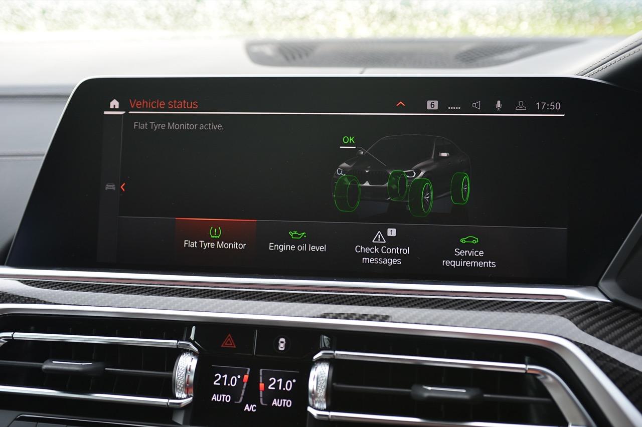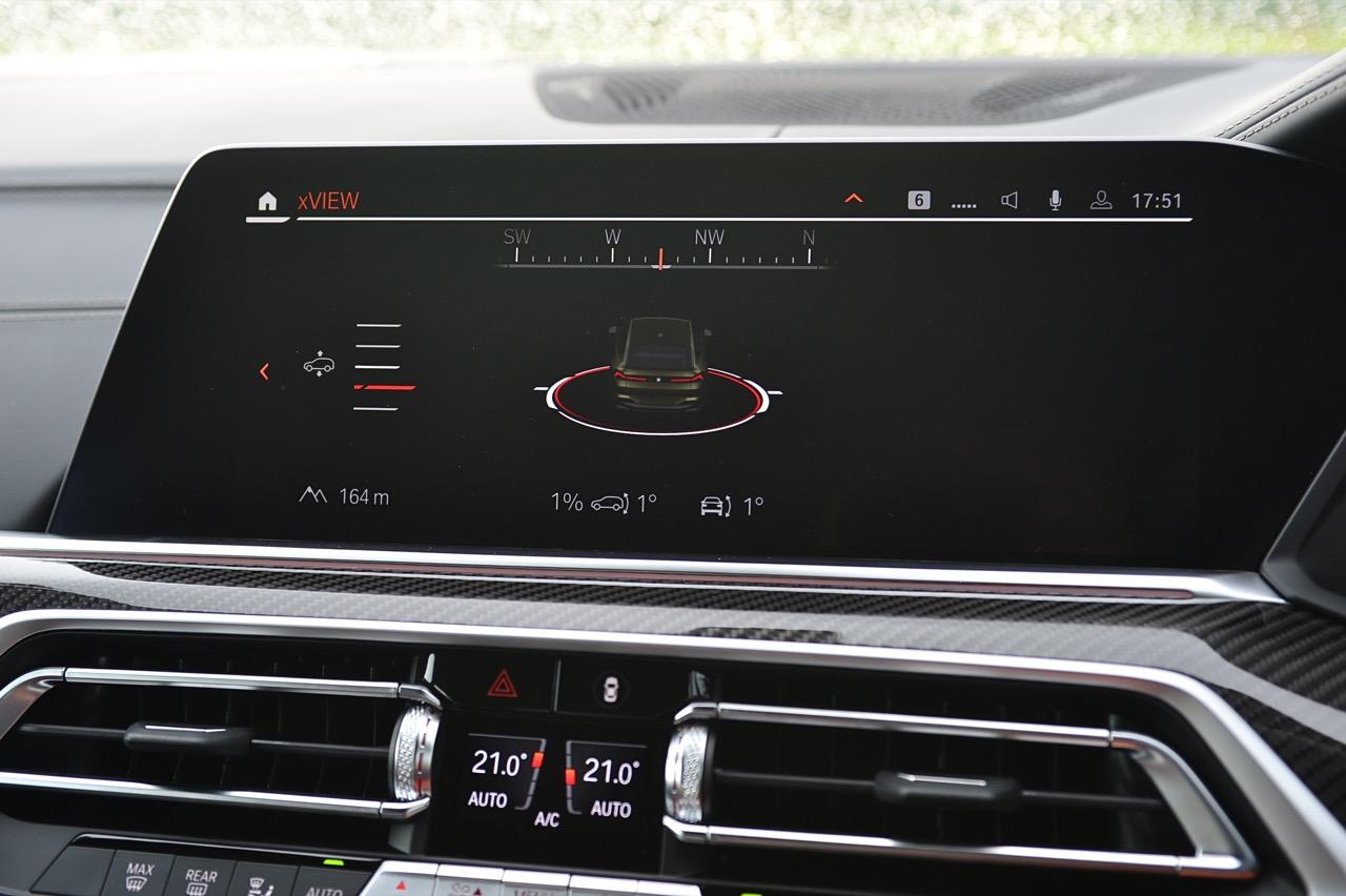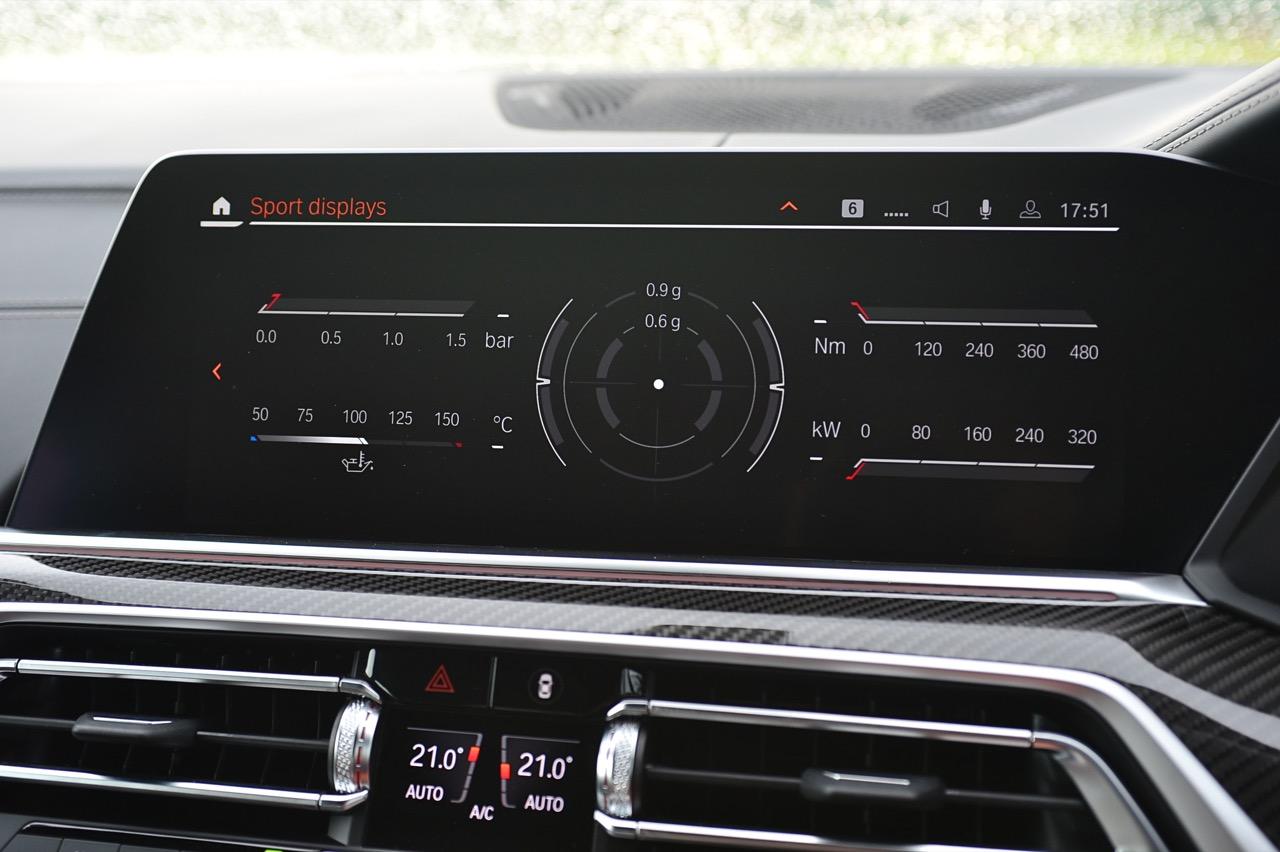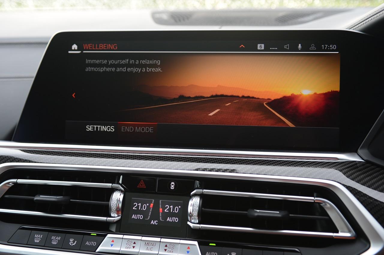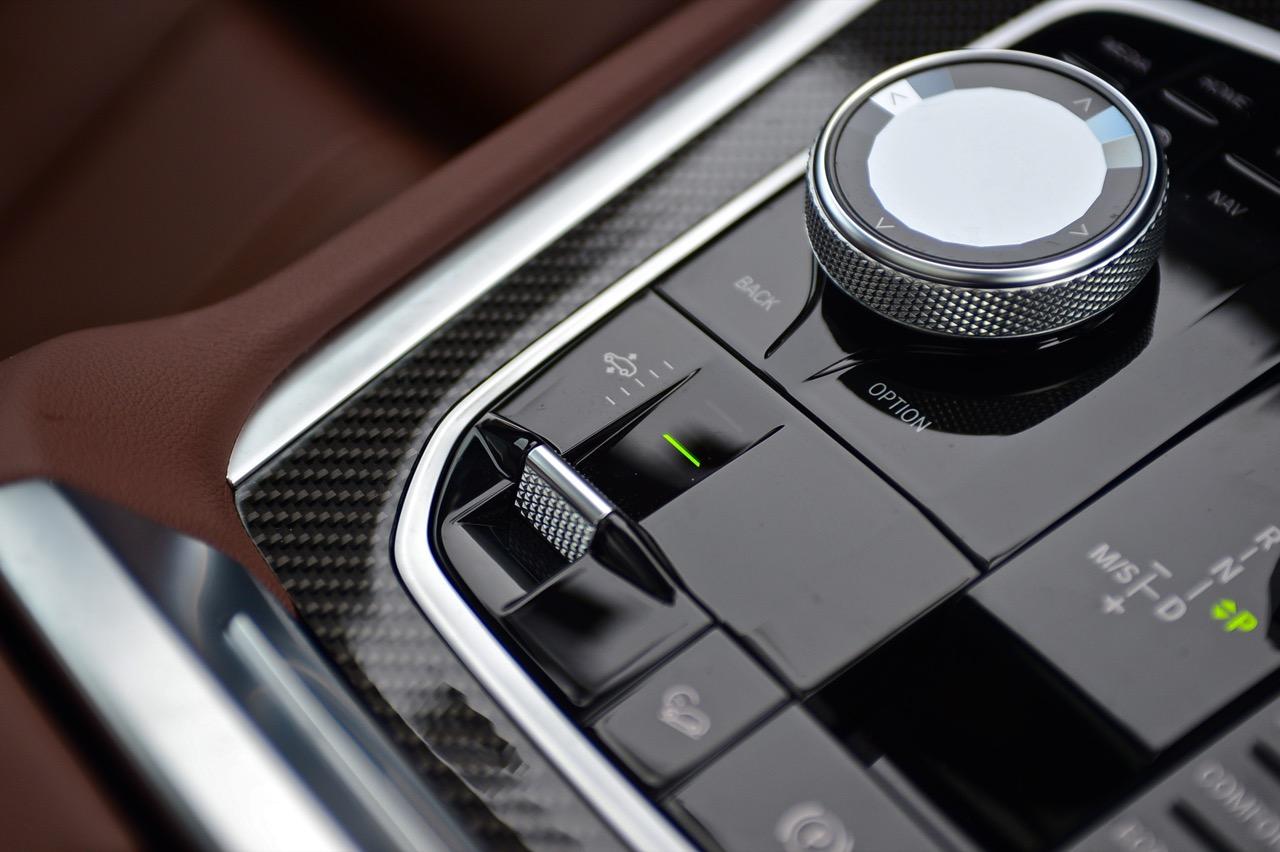 กึ่งกลางแดชบอร์ดคาดด้วยชิ้นงานตกแต่งคาร์บอนไฟเบอร์ ด้านบนติดตั้งจอภาพมอนิเตอร์ขนาดใหญ่ 12.3 นิ้ว พร้อมระบบสั่งงานผ่าน iDRIVE หรือจะสั่งงานด้วยการใช้นิ้วสัมผัสที่หน้าจอก็ยังได้ จอภาพมอนิเตอร์ขนาดยักษ์แบบ Panorama บรรจุโปรแกรมต่างๆ เปรียบเหมือนกับคอมพิวเตอร์ส่วนกลางของรถ มีมาให้ครบ เช่น กล้องมองรอบทิศทางความคมชัดสูง ไม่เกี่ยงแม้ใช้งานตอนกลางคืนก็ยังชัดแจ่ม กล้องมองรอบทิศทางแบบ 360 องศา มาพร้อมเส้นระนาบในการกะระยะถอย เชื่อมโยงกับระบบนำจอดอัตโนมัติ ระบบนำทางด้วยดาวเทียม วิทยุ AM / FM เชื่อมต่ออุปกรณ์ภายนอกในระบบบลูทูธ รองรับแอปพลิเคชันต่างๆ เพียบ จอแสดงผลกลางยังใช้ปรับตั้งค่าต่างๆ เช่น ระบบไฟ ระบบปรับอากาศ ระบบเครื่องเสียง แสดงผลอัตราสิ้นเปลืองเชื้อเพลิง เวลาและวันที่รวมถึงอุณหภูมิ การตั้งค่าล็อกหรือปลดล็อกประตู แรงดันลมยาง การแจ้งเตือนต่างๆ ของระบบขับเคลื่อน การปรับตั้งระบบส่องสว่างทั้งภายนอกและภายใน ที่เจ๋งมากก็คือ ระบบนำทางด้วยดาวเทียมแบบใหม่ของ BMW ที่แจ้งสภาพการจราจรในแบบ Realtime