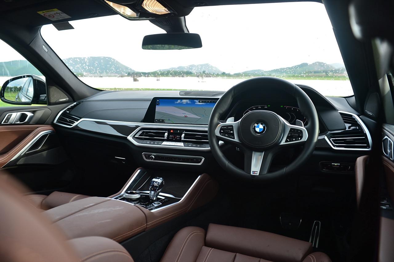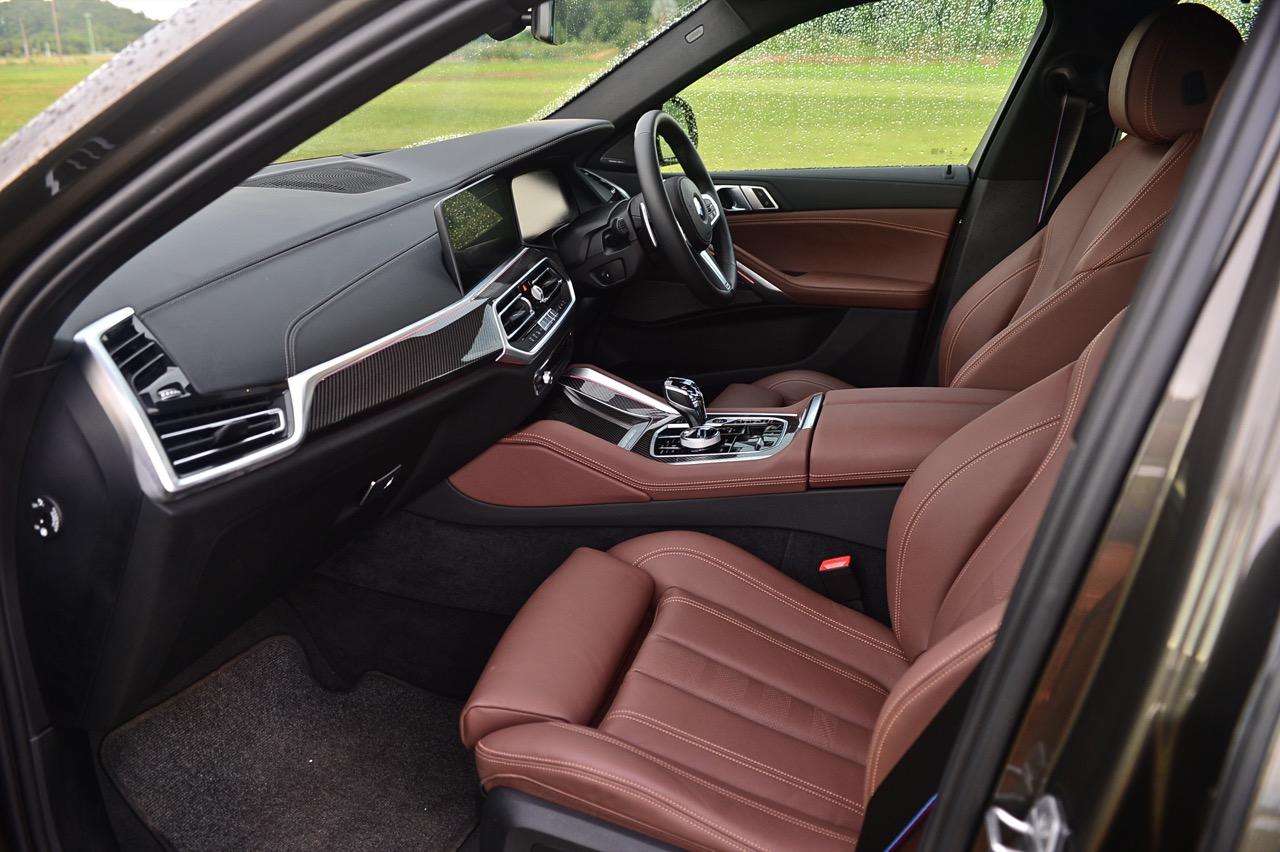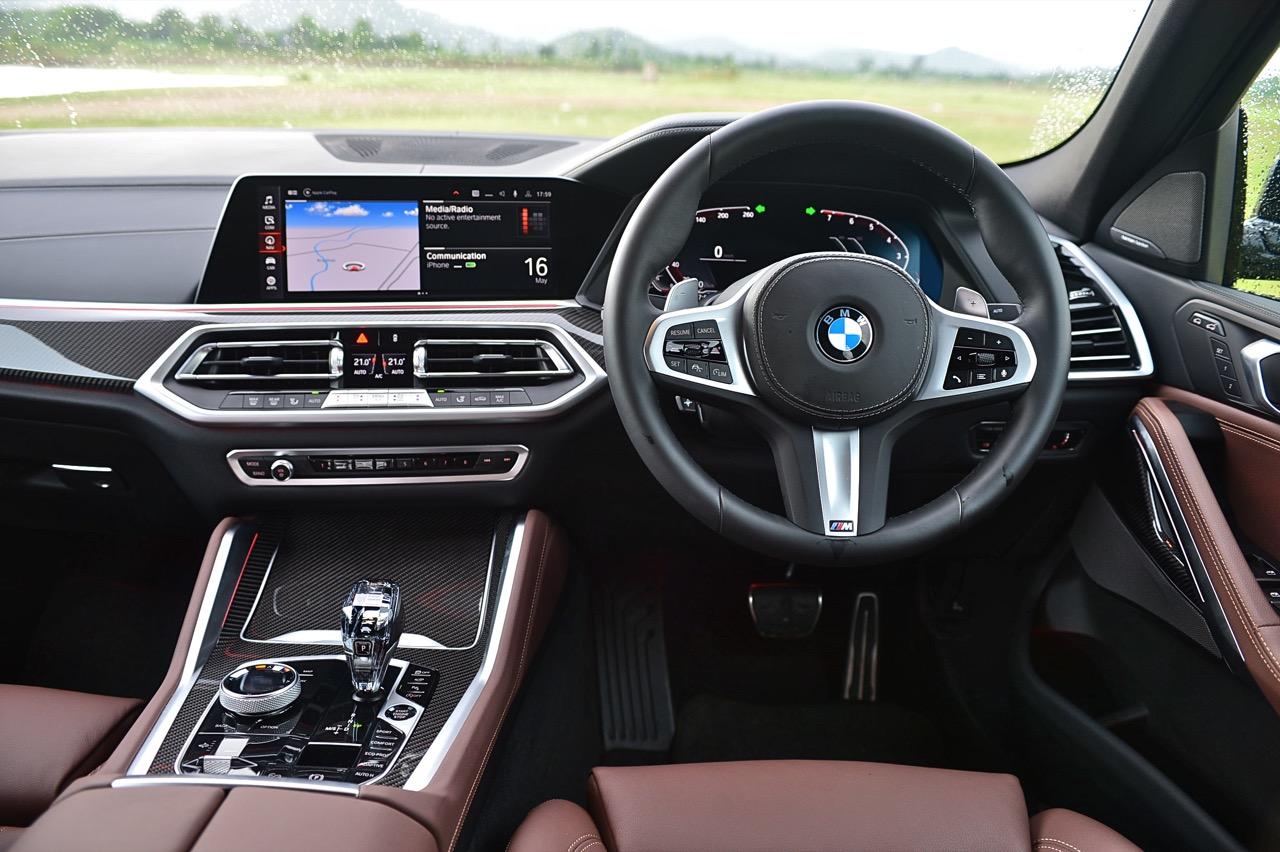 คู่แข่งอย่าง Mercedes-AMG GLE 53 5,990,000 บาท ประกอบในประเทศ / Audi Q8 60TFSIe 5,799,000 บาท นำเข้า / Porsche Cayenne e-hybrid Coupe 6,500,000 บาท นำเข้า -ในรถคู่ต่อสู้แต่ละแบรนด์นั้น จัดงานตกแต่งภายในมาอย่างเต็มเหนี่ยว เพื่อดึงดูดใจของลูกค้าที่กำลังอยากได้ ภายในของ New X6 xDRIVE 40i M Sport จึงมีความจำเป็นที่จะต้องจัดเต็มทรง ในด้านความหรูหราของวัสดุตกแต่งและงานดีไซน์ ภายในที่ถูกจริตคนรวยจากวัสดุและโทนสี ขนาดความกว้างของพื้นที่ เบาะแถวที่สองออกแบบให้แบ่งพับในอัตราส่วน 40:20:40 สำหรับการขนของที่มีขนาดความยาวมากๆ พวกกระดานโต้คลื่นหรือจักรยานเสือหมอบ หรือจะพับให้ราบลงเพื่อเปิดพื้นที่สำหรับการขนแม้กระทั่งจักรยานเสือภูเขา เบาะหน้าปรับไฟฟ้าพร้อมหน่วยความจำ หุ้มหนังแท้สีน้ำตาลเข้มอย่างหรู เป็นเบาะหนังที่นุ่มนิ่มนั่งสบายก้น พร้อมกลไกมอเตอร์ไฟฟ้าสำหรับการปรับท่านั่งที่ครอบคลุมไม่ว่าคุณจะมีรูปร่างแบบไหน เบาะคู่หน้า ออกแบบให้มีขนาดใหญ่ โอบอุ้มสรีระทั้งคนขับและผู้โดยสารตอนหน้าได้เป็นอย่างดี นั่งขับทั้งวันก็ยังไม่มีอาการเมื่อยตัว ปราศจากอาการปวดบริเวณแผ่นหลัง ต้นคอ หรือเอว เป็นเบาะที่วางตำแหน่งพร้อมการปรับด้วยไฟฟ้าที่ละเอียดยิบ เบาะแถวหลังพับได้เพื่อเพิ่มพื้นที่เก็บสัมภาระ ออปชั่นพิเศษติดมาให้ใช้งานด้วยหลังคากระจก panoramic roof ใหญ่โตครอบคลุมผืนหลังคาทั้งหมดด้วยกระจกและม่านบังแดดที่สามารถเลื่อนเปิด-ปิดได้รายละเอียดด้านเทคนิค