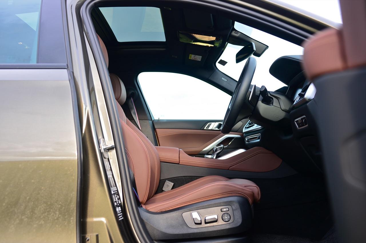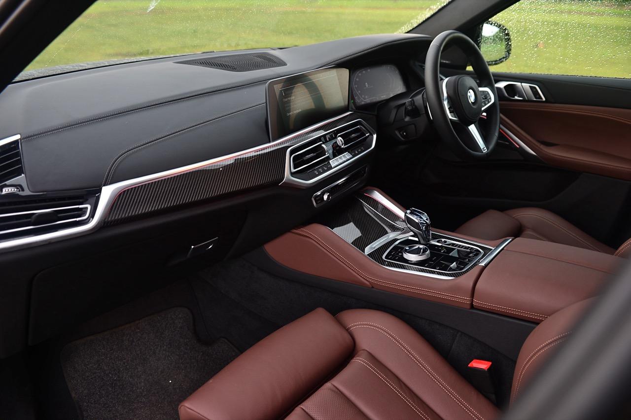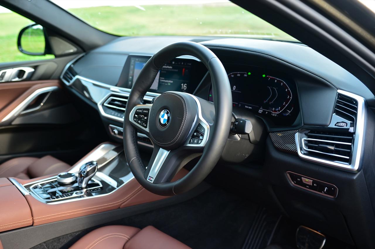 คู่แข่งอย่าง Mercedes-AMG GLE 53 5,990,000 บาท ประกอบในประเทศ / Audi Q8 60TFSIe 5,799,000 บาท นำเข้า / Porsche Cayenne e-hybrid Coupe 6,500,000 บาท นำเข้า -ในรถคู่ต่อสู้แต่ละแบรนด์นั้น จัดงานตกแต่งภายในมาอย่างเต็มเหนี่ยว เพื่อดึงดูดใจของลูกค้าที่กำลังอยากได้ ภายในของ New X6 xDRIVE 40i M Sport จึงมีความจำเป็นที่จะต้องจัดเต็มทรง ในด้านความหรูหราของวัสดุตกแต่งและงานดีไซน์ ภายในที่ถูกจริตคนรวยจากวัสดุและโทนสี ขนาดความกว้างของพื้นที่ เบาะแถวที่สองออกแบบให้แบ่งพับในอัตราส่วน 40:20:40 สำหรับการขนของที่มีขนาดความยาวมากๆ พวกกระดานโต้คลื่นหรือจักรยานเสือหมอบ หรือจะพับให้ราบลงเพื่อเปิดพื้นที่สำหรับการขนแม้กระทั่งจักรยานเสือภูเขา เบาะหน้าปรับไฟฟ้าพร้อมหน่วยความจำ หุ้มหนังแท้สีน้ำตาลเข้มอย่างหรู เป็นเบาะหนังที่นุ่มนิ่มนั่งสบายก้น พร้อมกลไกมอเตอร์ไฟฟ้าสำหรับการปรับท่านั่งที่ครอบคลุมไม่ว่าคุณจะมีรูปร่างแบบไหน เบาะคู่หน้า ออกแบบให้มีขนาดใหญ่ โอบอุ้มสรีระทั้งคนขับและผู้โดยสารตอนหน้าได้เป็นอย่างดี นั่งขับทั้งวันก็ยังไม่มีอาการเมื่อยตัว ปราศจากอาการปวดบริเวณแผ่นหลัง ต้นคอ หรือเอว เป็นเบาะที่วางตำแหน่งพร้อมการปรับด้วยไฟฟ้าที่ละเอียดยิบ เบาะแถวหลังพับได้เพื่อเพิ่มพื้นที่เก็บสัมภาระ ออปชั่นพิเศษติดมาให้ใช้งานด้วยหลังคากระจก panoramic roof ใหญ่โตครอบคลุมผืนหลังคาทั้งหมดด้วยกระจกและม่านบังแดดที่สามารถเลื่อนเปิด-ปิดได้รายละเอียดด้านเทคนิค