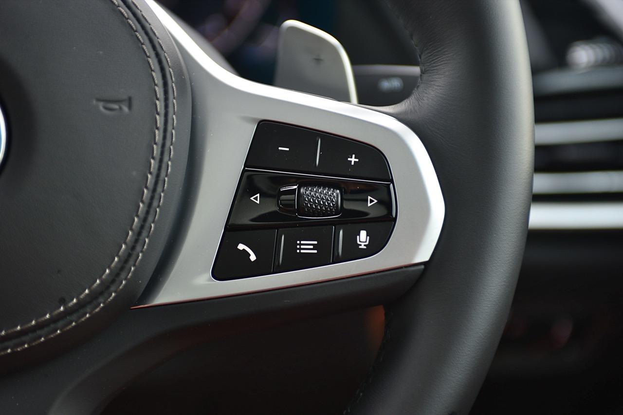 พวงมาลัย M แบบสปอร์ต 3 ก้าน หุ้มหนังแท้ เป็นชุดพวงมาลัยในรถ BMW ที่ตกแต่งด้วยอุปกรณ์ M Sport ไม่ว่าจะเป็น Series-3 M Sport / Z4 M40i / Series-5 / Series-7 / Series-8 รวมถึงรถยนต์อเนกประสงค์ในตระกูล X ทั้งหมดที่ตกแต่งด้วยชุดแต่ง M Sport ก็จะใช้พวงมาลัย M แบบเดียวกันทั้งหมด รูปทรงของพวงมาลัยแบบใหม่ มีขนาดที่เท่ากับพวงมาลัย M รุ่นที่แล้ว แต่ออกแบบให้ก้านวงมีขนาดใหญ่ขึ้น จุดที่ใช้งานได้ดีกว่าเดิมก็คือแป้นเปลี่ยนตำแหน่งเกียร์ Paddle Shift ที่มีขนาดใหญ่ขึ้นเมื่อเทียบกับของเดิม ส่วนสวิตช์บริเวณก้านวงด้านขวาเป็นตำแหน่งของปุ่มรับหรือวางสายโทรศัพท์บลูทูธ ปุ่มสั่งงานด้วยเสียง ปุ่มปรับระดับความดังของลำโพงและปุ่มเลือกฟังก์ชั่นการเล่นเพลงผ่านอุปกรณ์ต่างๆ ก้านวงด้านซ้าย เป็นปุ่มควบคุมระบบปรับตั้งความเร็วอัตโนมัติ Adaptive Cruise Control