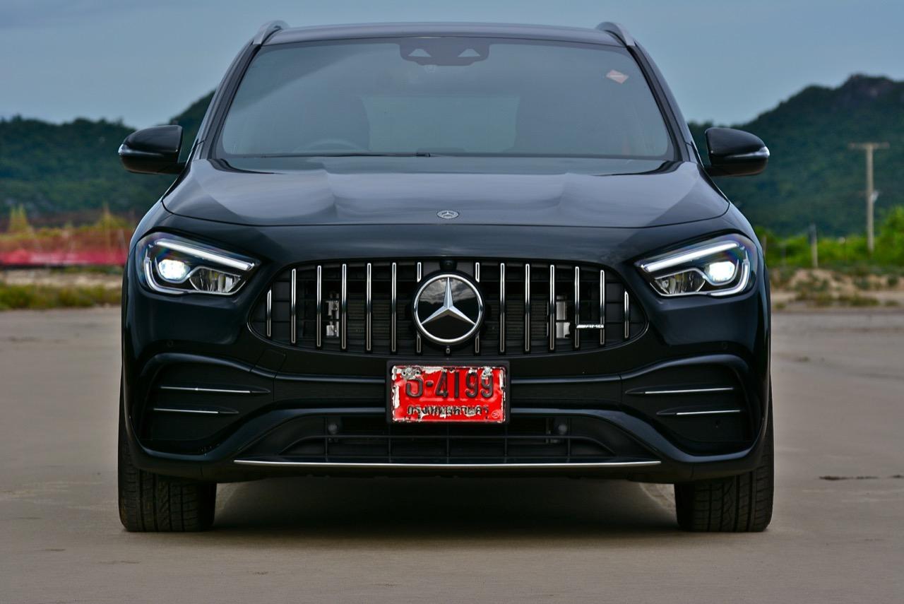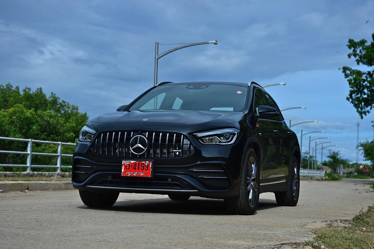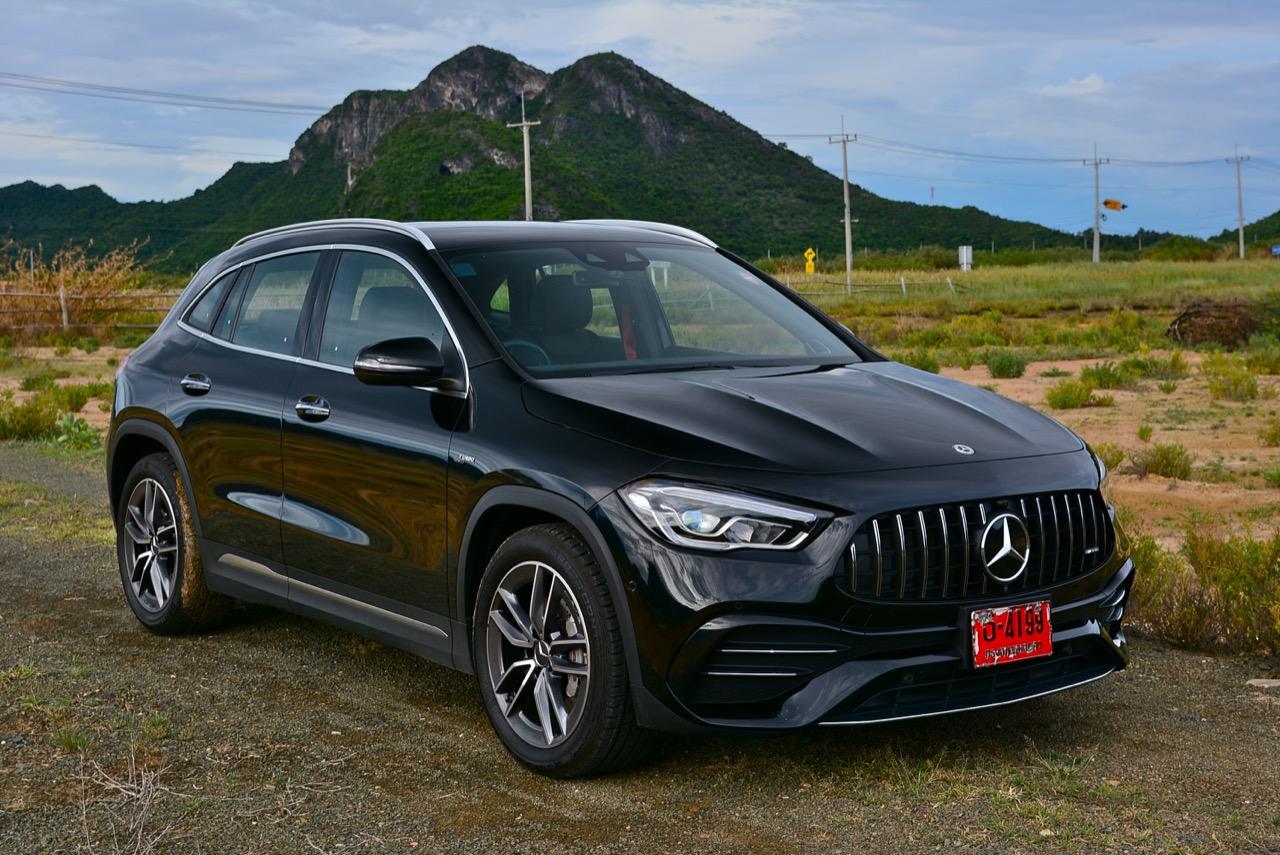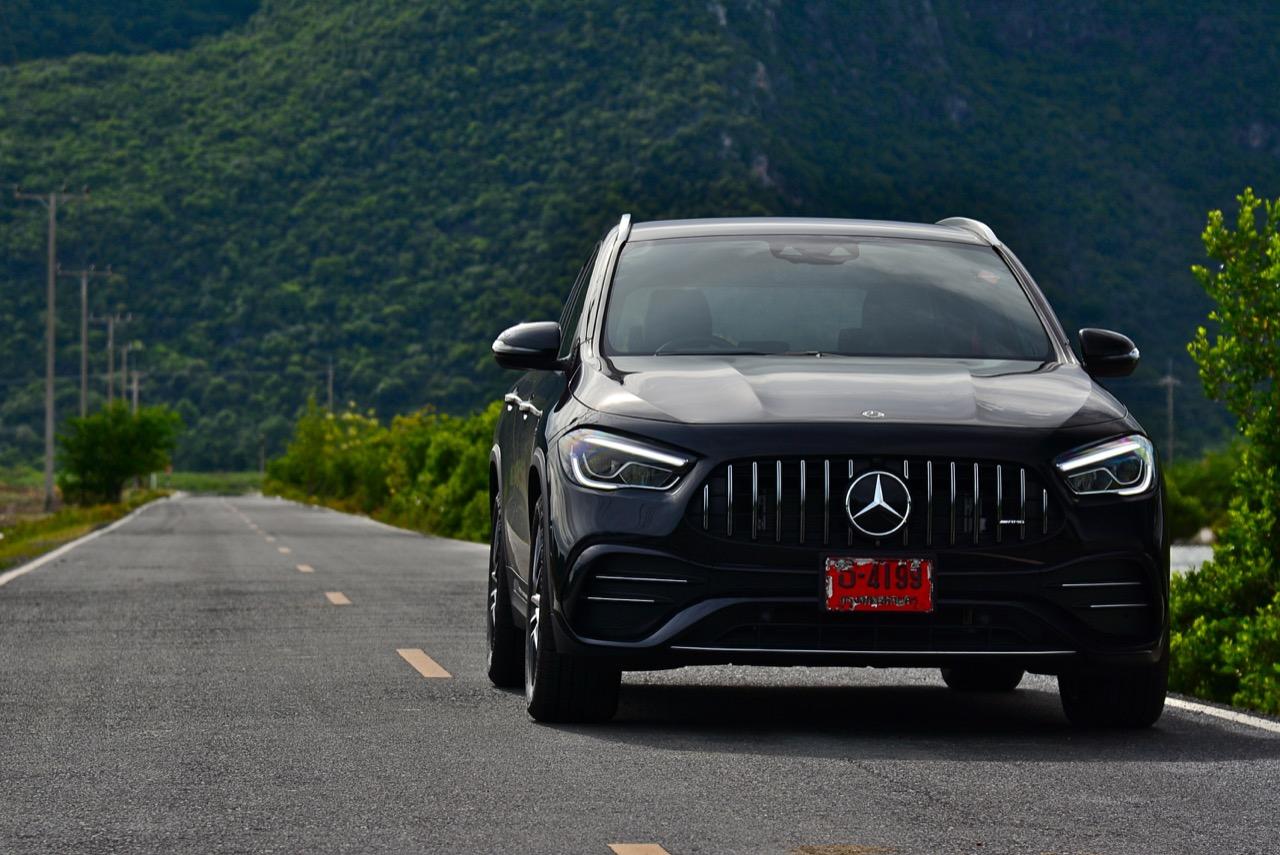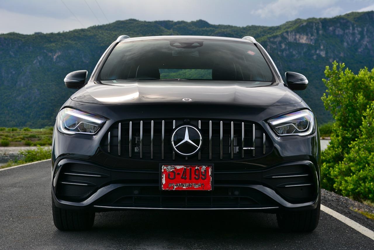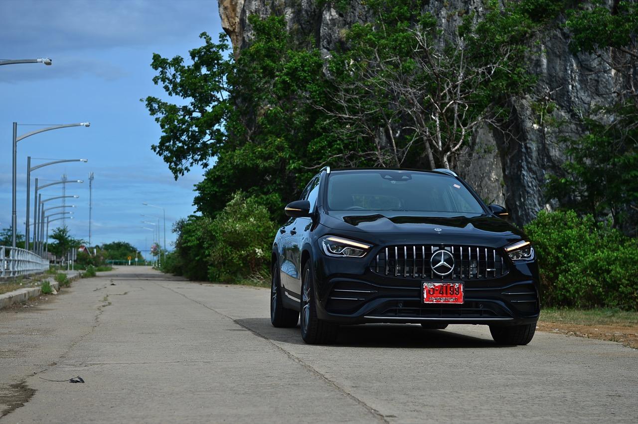 ดูเหมือนกับว่าผู้คนส่วนใหญ่ที่เป็นลูกค้าของ Mercedes คาดหวังให้ GLA เจเนอเรชันที่สองต้องดีกว่าเดิม ใช่ครับ มันคือครอสโอเวอร์ที่สูงขึ้นเล็กน้อยเมื่อเทียบกับ CLA หรือ A Class กว้างขึ้นเล็กน้อย โดยมีระยะห่างจากพื้นเพิ่มขึ้นสำหรับการลุยนิดๆ หน่อยๆ ขอบพลาสติกสีดำบางส่วนรอบธรณีประตูและซุ้มล้อ เพื่อแสดงให้เห็นถึงความสามารถในการขับเคลื่อนบนทางวิบาก Mercedes-AMG GLA 35 4Matic รถทดสอบในอาทิตย์แรกของเดือนมิถุนายน ไม่ใช่รถอเนกประสงค์แบบสปอร์ตครอสโอเวอร์ที่ดูแย่ และอย่างน้อย Mercedes ก็ได้แก้ไขสัดส่วนจนลงตัว รถใหม่มีความสูงมากขึ้นถึง 10 เซนติเมตรและสั้นกว่ารถรุ่นเก่าที่มีรูปทรงแปลกๆ เพียงเศษเสี้ยวระดับมิลลิเมตร ทำให้ใกล้เคียงกับคู่แข่งสายหล่ออย่าง Audi RSQ3, BMW X2 M35i และ Volvo XC40 ตอนนี้ เจ้าดาวตัวเล็กดูคล้ายกับ SUV ที่โดนย่อส่วน มากกว่าที่จะเป็นแฮตช์แบ็กยกสูงแบบรถเจนฯ แรก สิ่งที่สำคัญก็คือ นอกจากพลังงานในสไตล์ของ AMG แล้ว GLA 35 ยังมีพื้นที่มากขึ้นสำหรับผู้โดยสารและสัมภาระ แม้จะมีงานชุบโครเมียมและโลหะผสมในรถ AMG แท้ๆ อย่าง GLA 35 แต่ภาพรวมแล้วมันเป็นรถเล็กที่มีพัฒนาการดีอย่างต่อเนื่องเมื่อเทียบกับ AMG GLA45 4Matic โฉมที่แล้ว
