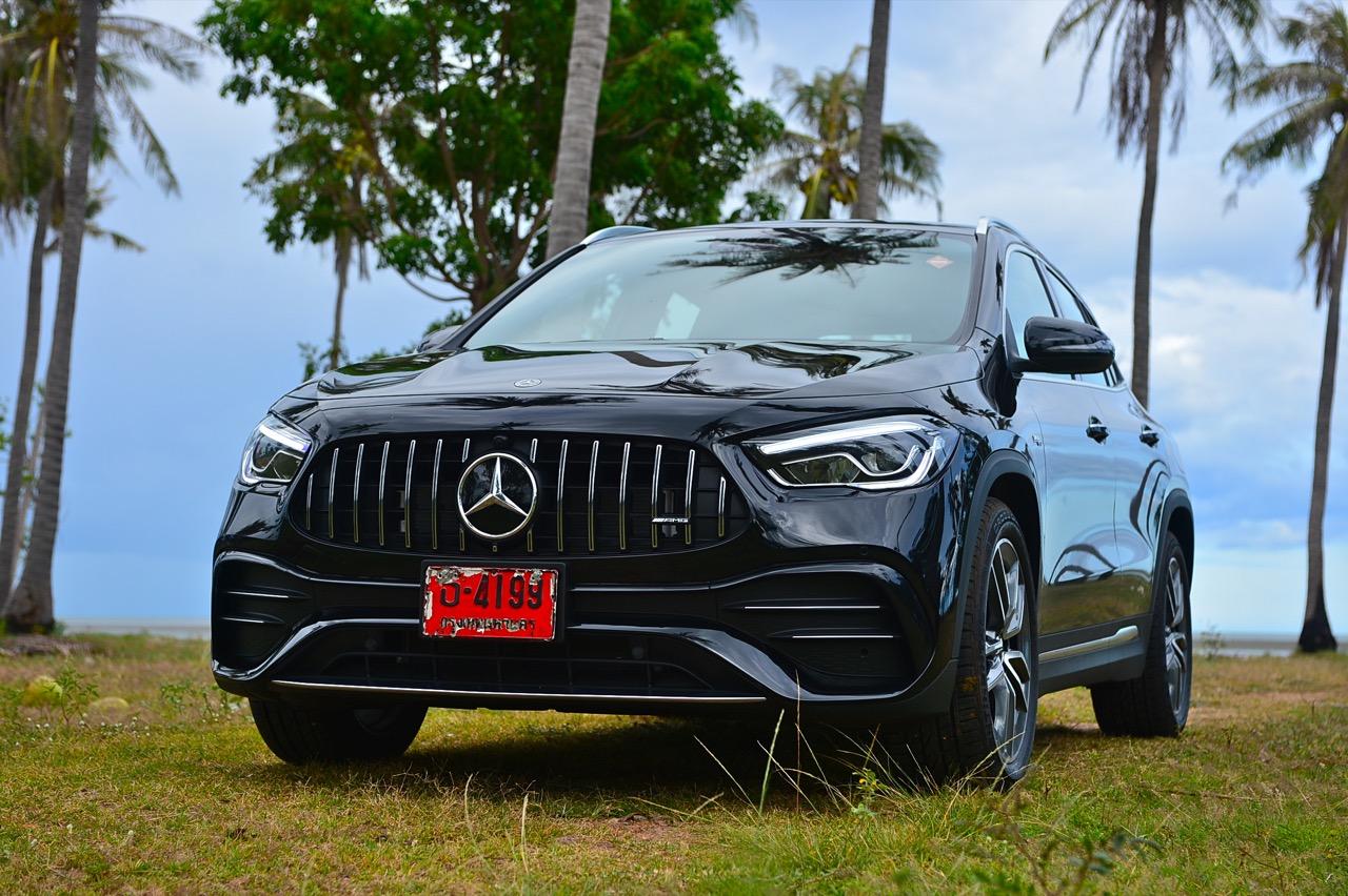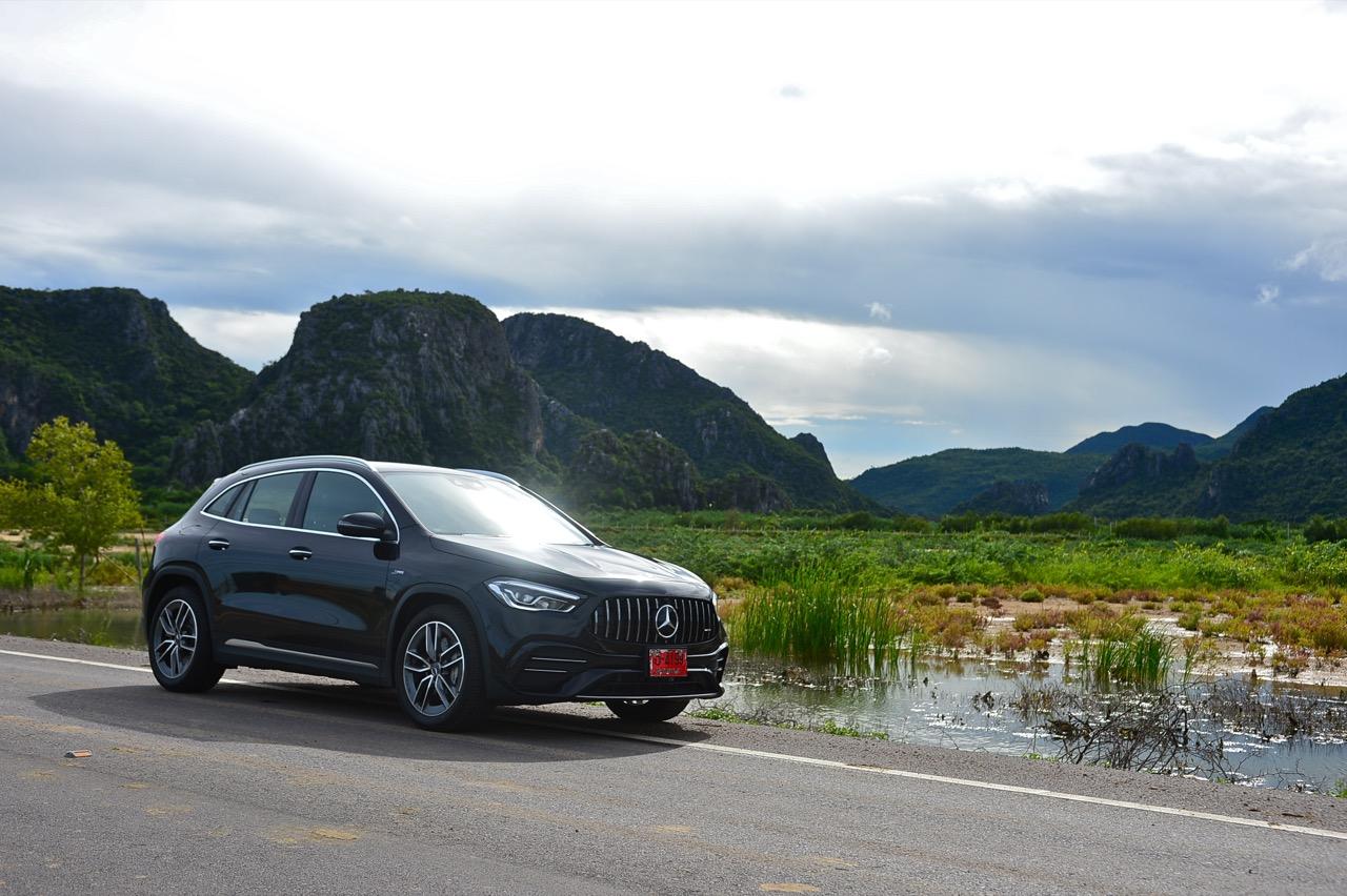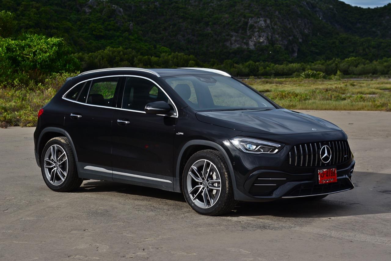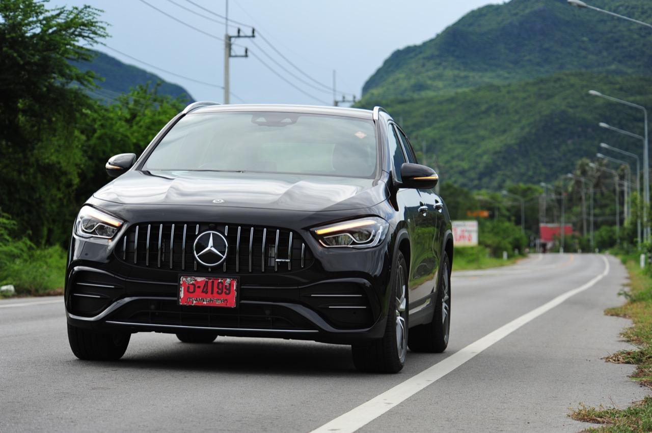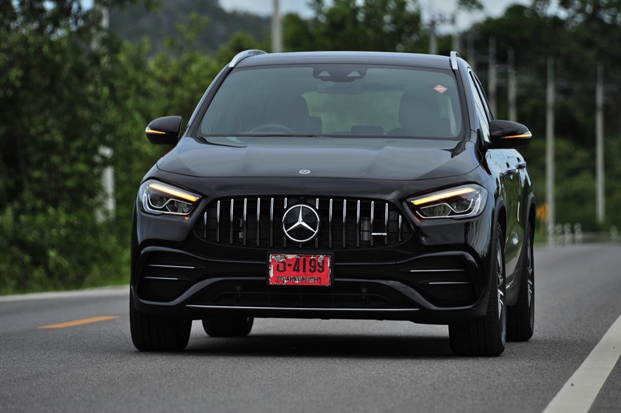 ดูเหมือนกับว่าผู้คนส่วนใหญ่ที่เป็นลูกค้าของ Mercedes คาดหวังให้ GLA เจเนอเรชันที่สองต้องดีกว่าเดิม ใช่ครับ มันคือครอสโอเวอร์ที่สูงขึ้นเล็กน้อยเมื่อเทียบกับ CLA หรือ A Class กว้างขึ้นเล็กน้อย โดยมีระยะห่างจากพื้นเพิ่มขึ้นสำหรับการลุยนิดๆ หน่อยๆ ขอบพลาสติกสีดำบางส่วนรอบธรณีประตูและซุ้มล้อ เพื่อแสดงให้เห็นถึงความสามารถในการขับเคลื่อนบนทางวิบาก Mercedes-AMG GLA 35 4Matic รถทดสอบในอาทิตย์แรกของเดือนมิถุนายน ไม่ใช่รถอเนกประสงค์แบบสปอร์ตครอสโอเวอร์ที่ดูแย่ และอย่างน้อย Mercedes ก็ได้แก้ไขสัดส่วนจนลงตัว รถใหม่มีความสูงมากขึ้นถึง 10 เซนติเมตรและสั้นกว่ารถรุ่นเก่าที่มีรูปทรงแปลกๆ เพียงเศษเสี้ยวระดับมิลลิเมตร ทำให้ใกล้เคียงกับคู่แข่งสายหล่ออย่าง Audi RSQ3, BMW X2 M35i และ Volvo XC40 ตอนนี้ เจ้าดาวตัวเล็กดูคล้ายกับ SUV ที่โดนย่อส่วน มากกว่าที่จะเป็นแฮตช์แบ็กยกสูงแบบรถเจนฯ แรก สิ่งที่สำคัญก็คือ นอกจากพลังงานในสไตล์ของ AMG แล้ว GLA 35 ยังมีพื้นที่มากขึ้นสำหรับผู้โดยสารและสัมภาระ แม้จะมีงานชุบโครเมียมและโลหะผสมในรถ AMG แท้ๆ อย่าง GLA 35 แต่ภาพรวมแล้วมันเป็นรถเล็กที่มีพัฒนาการดีอย่างต่อเนื่องเมื่อเทียบกับ AMG GLA45 4Matic โฉมที่แล้ว