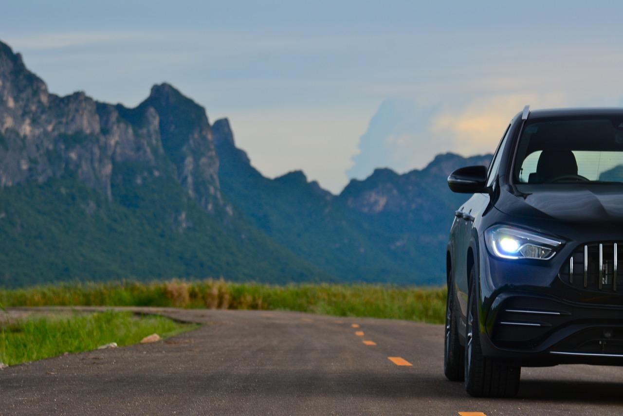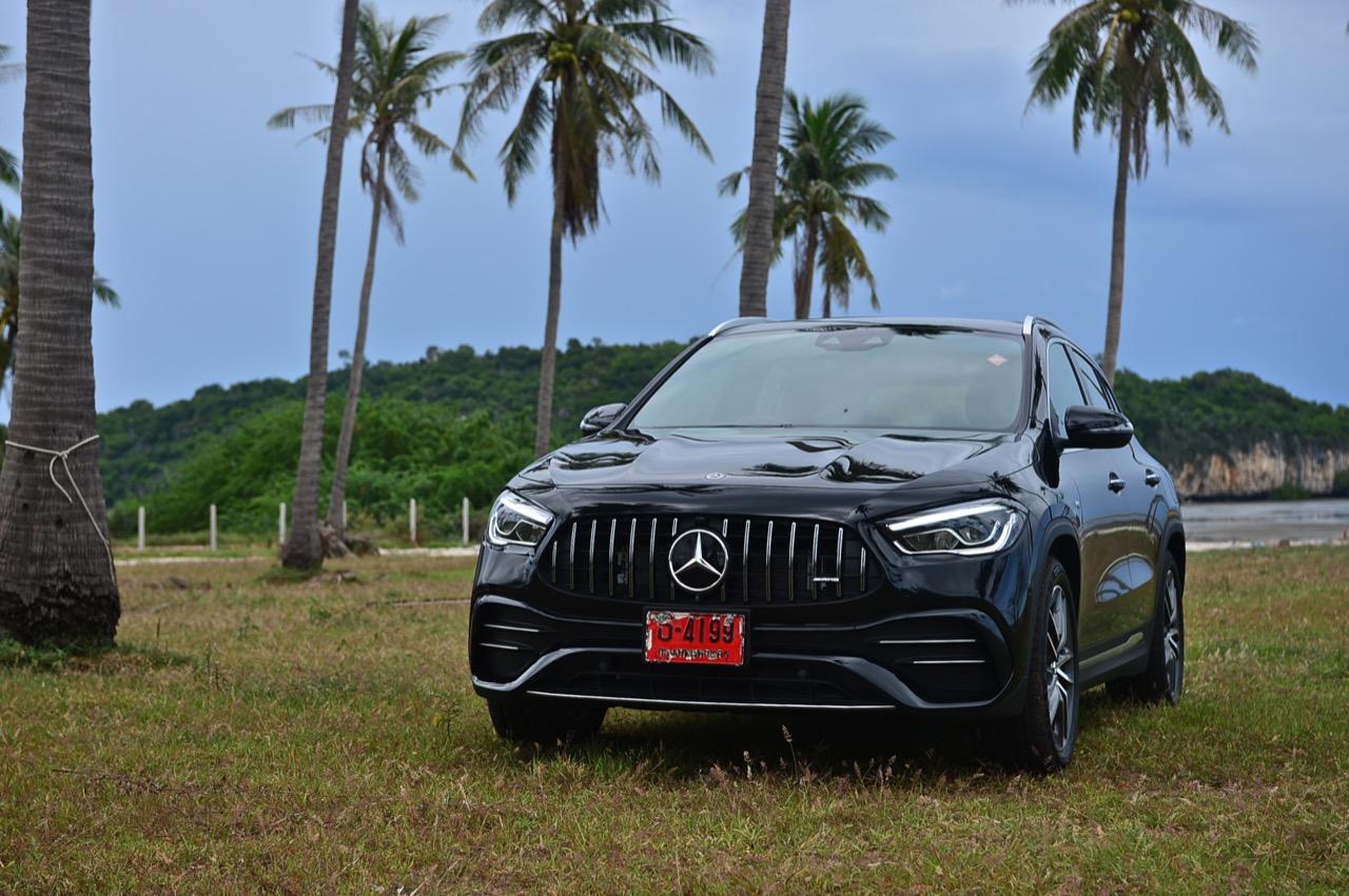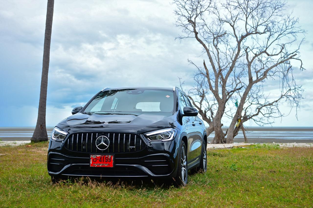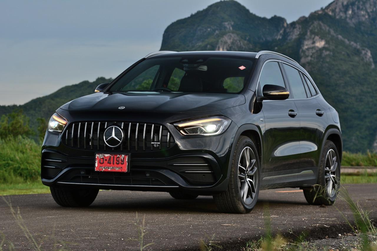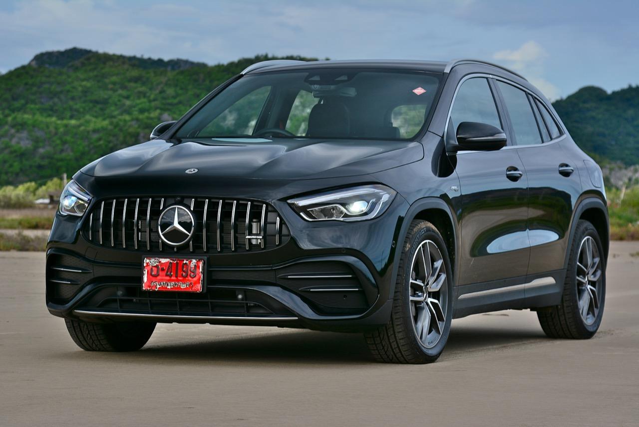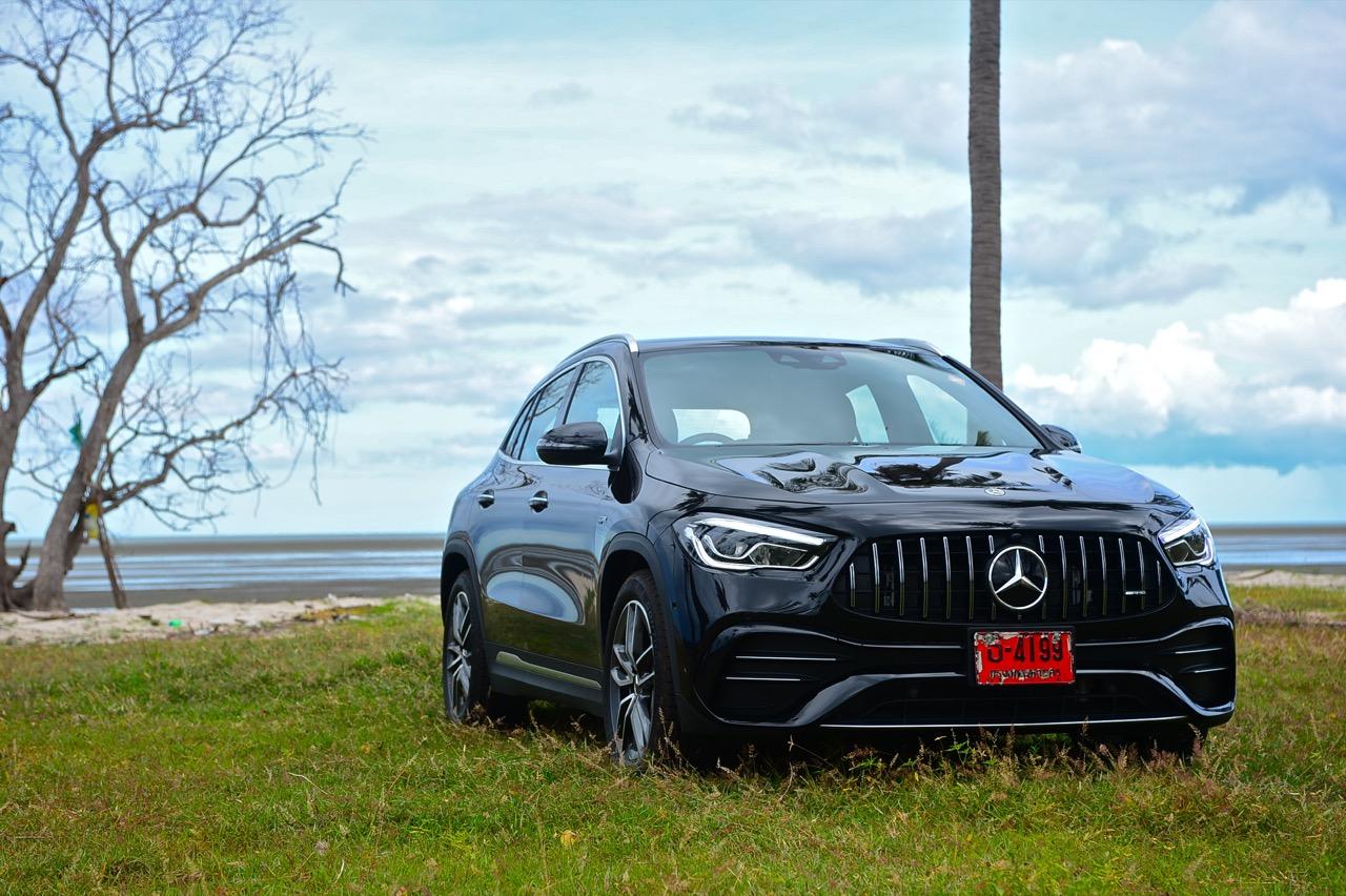 ดูเหมือนกับว่าผู้คนส่วนใหญ่ที่เป็นลูกค้าของ Mercedes คาดหวังให้ GLA เจเนอเรชันที่สองต้องดีกว่าเดิม ใช่ครับ มันคือครอสโอเวอร์ที่สูงขึ้นเล็กน้อยเมื่อเทียบกับ CLA หรือ A Class กว้างขึ้นเล็กน้อย โดยมีระยะห่างจากพื้นเพิ่มขึ้นสำหรับการลุยนิดๆ หน่อยๆ ขอบพลาสติกสีดำบางส่วนรอบธรณีประตูและซุ้มล้อ เพื่อแสดงให้เห็นถึงความสามารถในการขับเคลื่อนบนทางวิบาก Mercedes-AMG GLA 35 4Matic รถทดสอบในอาทิตย์แรกของเดือนมิถุนายน ไม่ใช่รถอเนกประสงค์แบบสปอร์ตครอสโอเวอร์ที่ดูแย่ และอย่างน้อย Mercedes ก็ได้แก้ไขสัดส่วนจนลงตัว รถใหม่มีความสูงมากขึ้นถึง 10 เซนติเมตรและสั้นกว่ารถรุ่นเก่าที่มีรูปทรงแปลกๆ เพียงเศษเสี้ยวระดับมิลลิเมตร ทำให้ใกล้เคียงกับคู่แข่งสายหล่ออย่าง Audi RSQ3, BMW X2 M35i และ Volvo XC40 ตอนนี้ เจ้าดาวตัวเล็กดูคล้ายกับ SUV ที่โดนย่อส่วน มากกว่าที่จะเป็นแฮตช์แบ็กยกสูงแบบรถเจนฯ แรก สิ่งที่สำคัญก็คือ นอกจากพลังงานในสไตล์ของ AMG แล้ว GLA 35 ยังมีพื้นที่มากขึ้นสำหรับผู้โดยสารและสัมภาระ แม้จะมีงานชุบโครเมียมและโลหะผสมในรถ AMG แท้ๆ อย่าง GLA 35 แต่ภาพรวมแล้วมันเป็นรถเล็กที่มีพัฒนาการดีอย่างต่อเนื่องเมื่อเทียบกับ AMG GLA45 4Matic โฉมที่แล้ว
