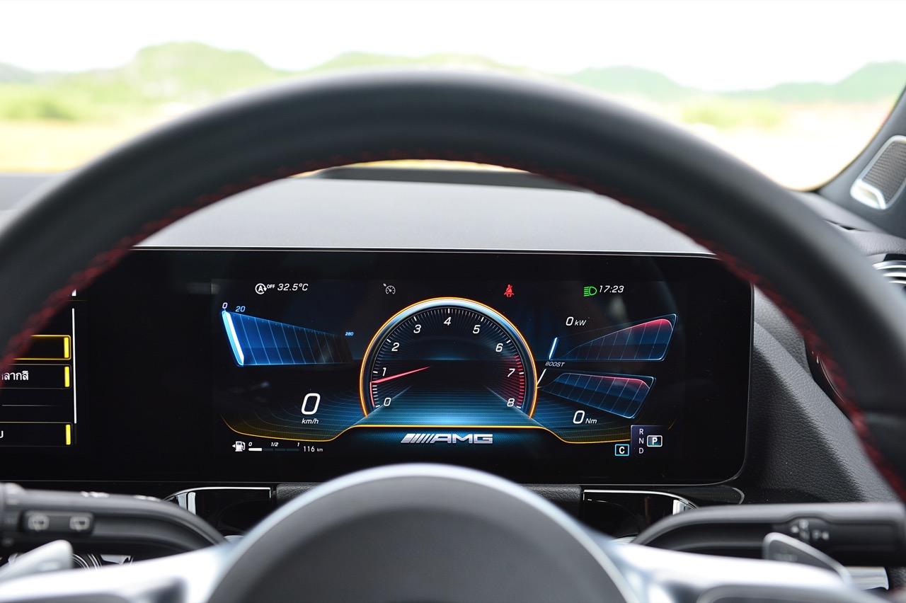 ระบบปฏิบัติการมัลติมีเดียแบบ MBUX ความชาญฉลาดของระบบปฏิบัติการมัลติมีเดีย MBUX แสดงข้อมูลได้หลากหลาย แผงหน้าปัดแสดงผลข้อมูลการขับขี่ AMG-specific display ระบบสัมผัส และสั่งงานด้วยเสียง ประมวลผลประโยค ที่ใกล้เคียงกับคำสั่งทั่วไป มาพร้อมฟังก์ชันการปรับตั้งค่าต่างๆ ที่แสดงผลด้วยกราฟิกชัดเจนและง่ายต่อการปรับตั้ง แป้นควบคุมระบบสัมผัสของ MBUX ใช้นิ้วรูด แตะ หรือกดลงไปตรงๆ เพื่อสั่งงานระบบต่างๆ จอภาพมอนิเตอร์กลางเชื่อมต่อกับระบบนำทางด้วยดาวเทียมที่ละเอียดและคมชัด สำหรับเจ้าของรถรุ่นเก่าที่คุ้นเคยกับแป้นควบคุม Mercedes Benz Comand Control แบบเก่าต้องใช้เวลาเรียนรู้ทำความคุ้นเคยกับระบบ MBUX สักพัก เนื่องจากฟังก์ชันการใช้งานถูกปรับเพิ่ม และเปลี่ยนแปลงแผงควบคุมบริเวณคอนโซลกลางโดยใช้ระบบสัมผัสทั้งหมด