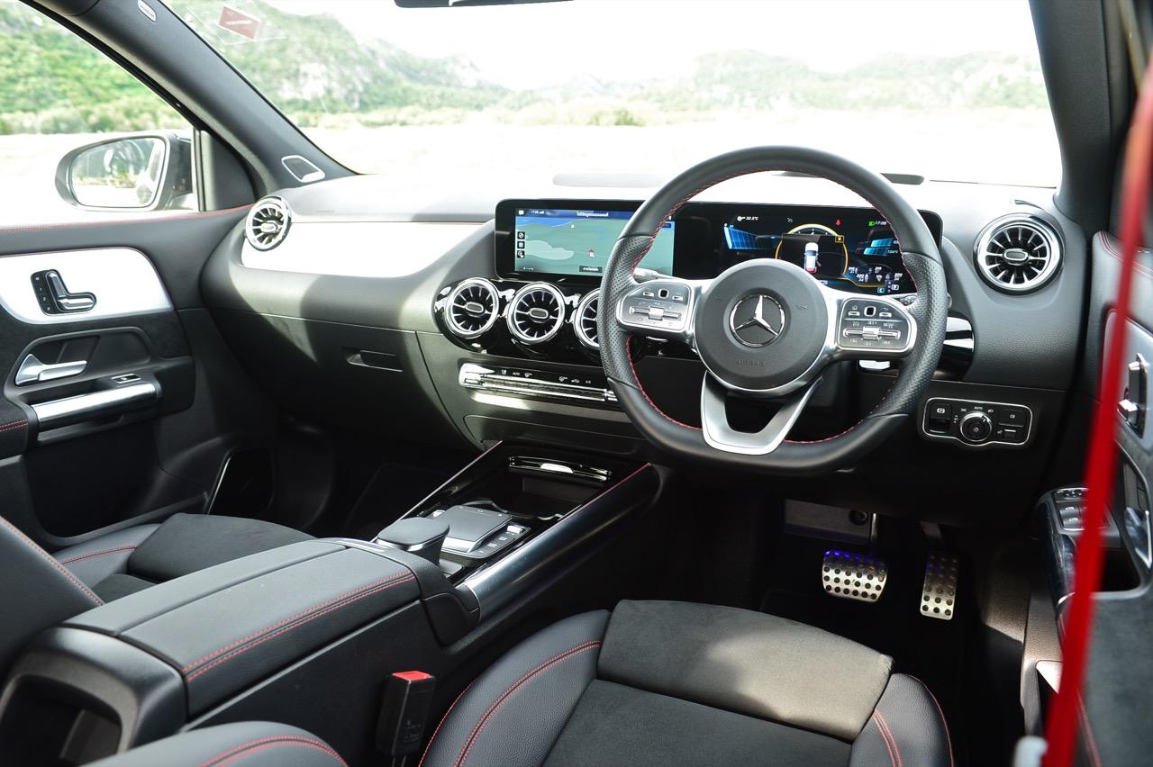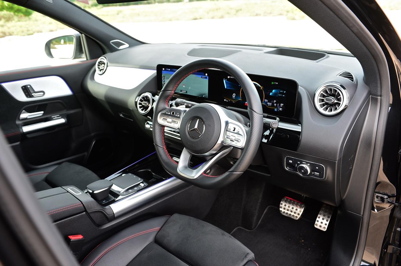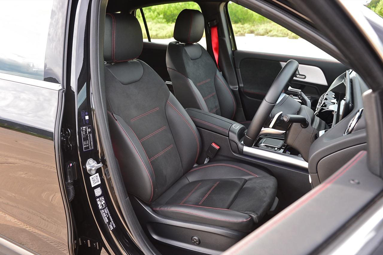 ภายในแบบใหม่ที่น่าใช้งานของ GLA 35 เกิดจากงานดีไซน์ของแดชบอร์ดคอนโซลแบบใหม่ที่โดนใจวัยแรง ด้วยการออกแบบที่ทันสมัย ใช้วัสดุดีมีราคามาตกแต่ง การแสดงผลของระบบขับเคลื่อนและระบบให้ความบันเทิงเริงรมย์ รวมถึงการปรับตั้งต่างๆ ที่ทำออกมาได้ดีก็คือ แดชบอร์ดคอนโซลแบบใหม่ ขึ้นรูปด้วยยางสังเคราะห์ หุ้มด้วยไวนิลคุณภาพสูง มีส่วนช่วยในด้านการเก็บเสียงและลดเสียงเสียดสีของรอยต่อต่างๆ GLA 35 ติดตั้งจอภาพมาตรวัดและจอมอนิเตอร์แสดงผลกลางที่เชื่อมต่อเป็นชิ้นเดียวกัน ระบบสาระบันเทิง MBUX ใหม่ล่าสุดถูกนำมาใช้ในรถรุ่นนี้เป็นครั้งแรก ผ่านจอแสดงผลสองจอที่ติดตั้งภายใต้ฝาครอบแก้วที่ใช้งานร่วมกัน นอกจากนี้ ยังมีพวงมาลัยสปอร์ตสามก้านทรงฐานตัดของ AMG ติดตั้งแป้นเปลี่ยนเกียร์ Paddle Shift พวงมาลัยเย็บตะเข็บด้ายสีแดง เบาะแบบสปอร์ตปรับไฟฟ้า หุ้มหนัง ARTICO สลับ DINAMICA microfibre สีดำ ตกแต่งด้วยด้ายสีแดง เข็มขัดนิรภัยสีแดงสไตล์ AMG กับท่านั่งควบคุมที่ดีในกลุ่มสปอร์ต ครอสโอเวอร์-เอสยูวี ขนาดกะทัดรัด!